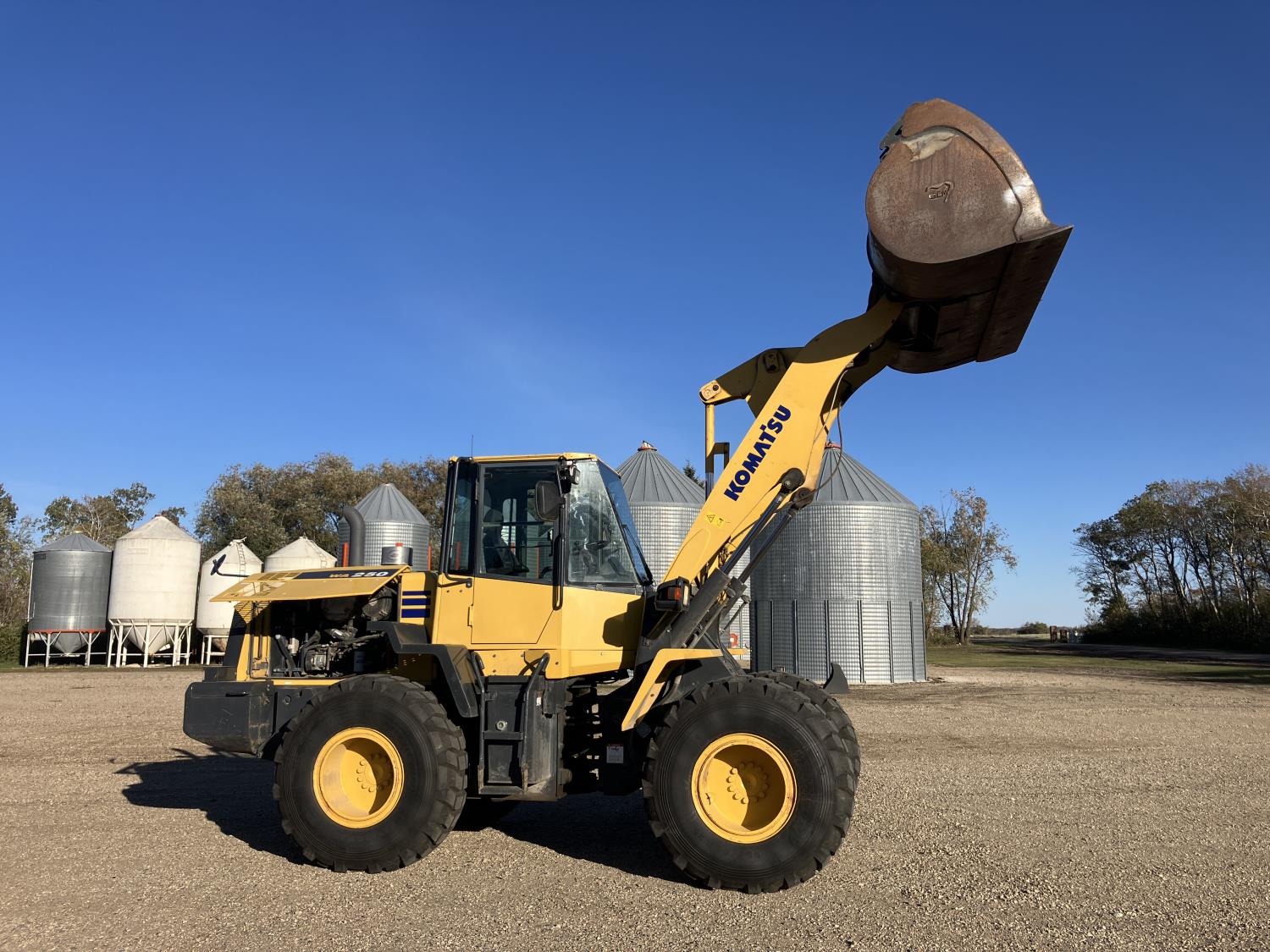 Enclosed cab, A/C, hydro transmission, Komatsu diesel engine, block heater, 117 inch smooth bucket, hydraulic Q/C coupler, high lift loader, ride control, 525/80R25 tires