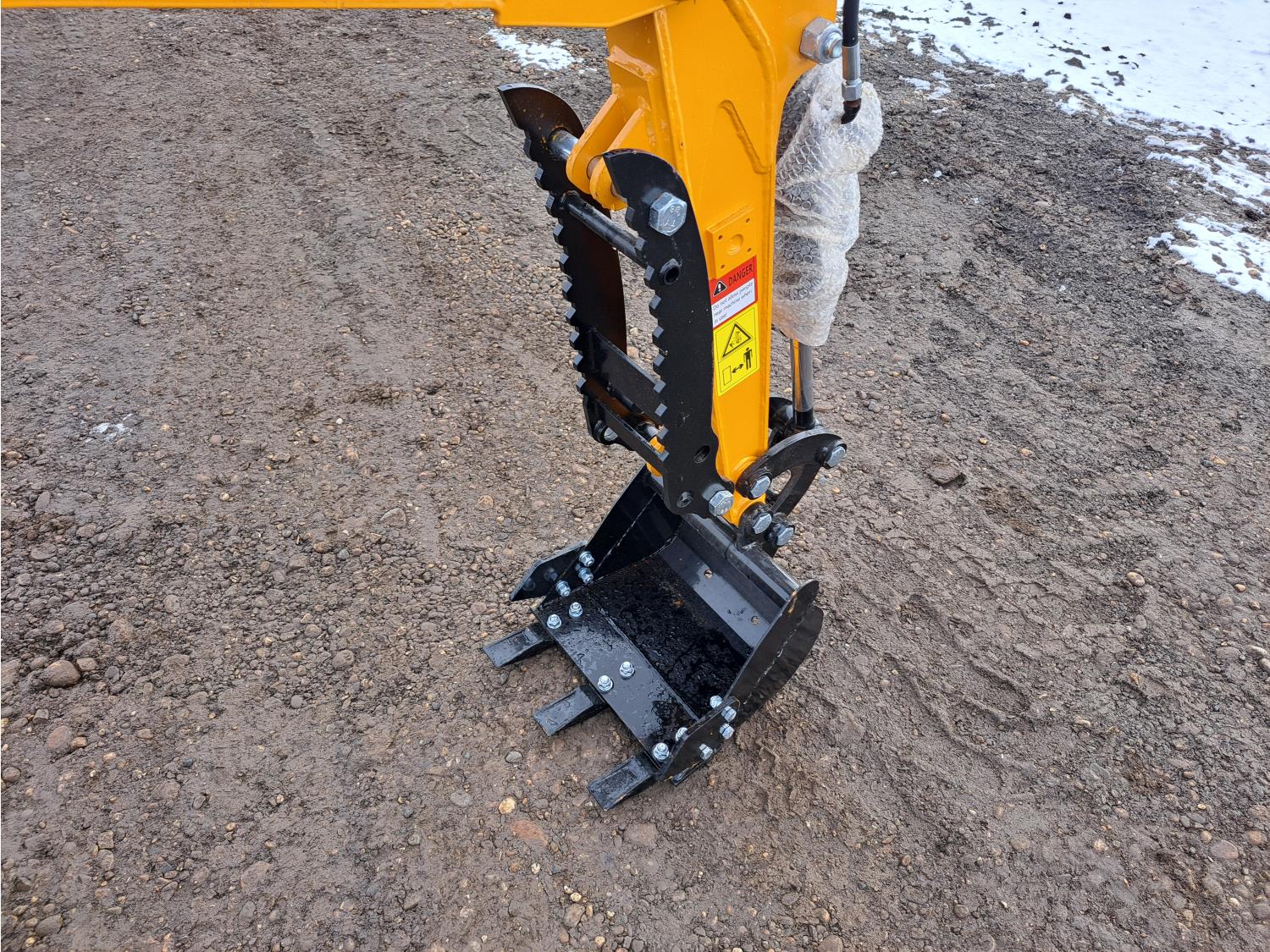 Open station, gas engine, 14 inch dig bucket, manual thumb, backfill blade, 7 inch rubber tracks