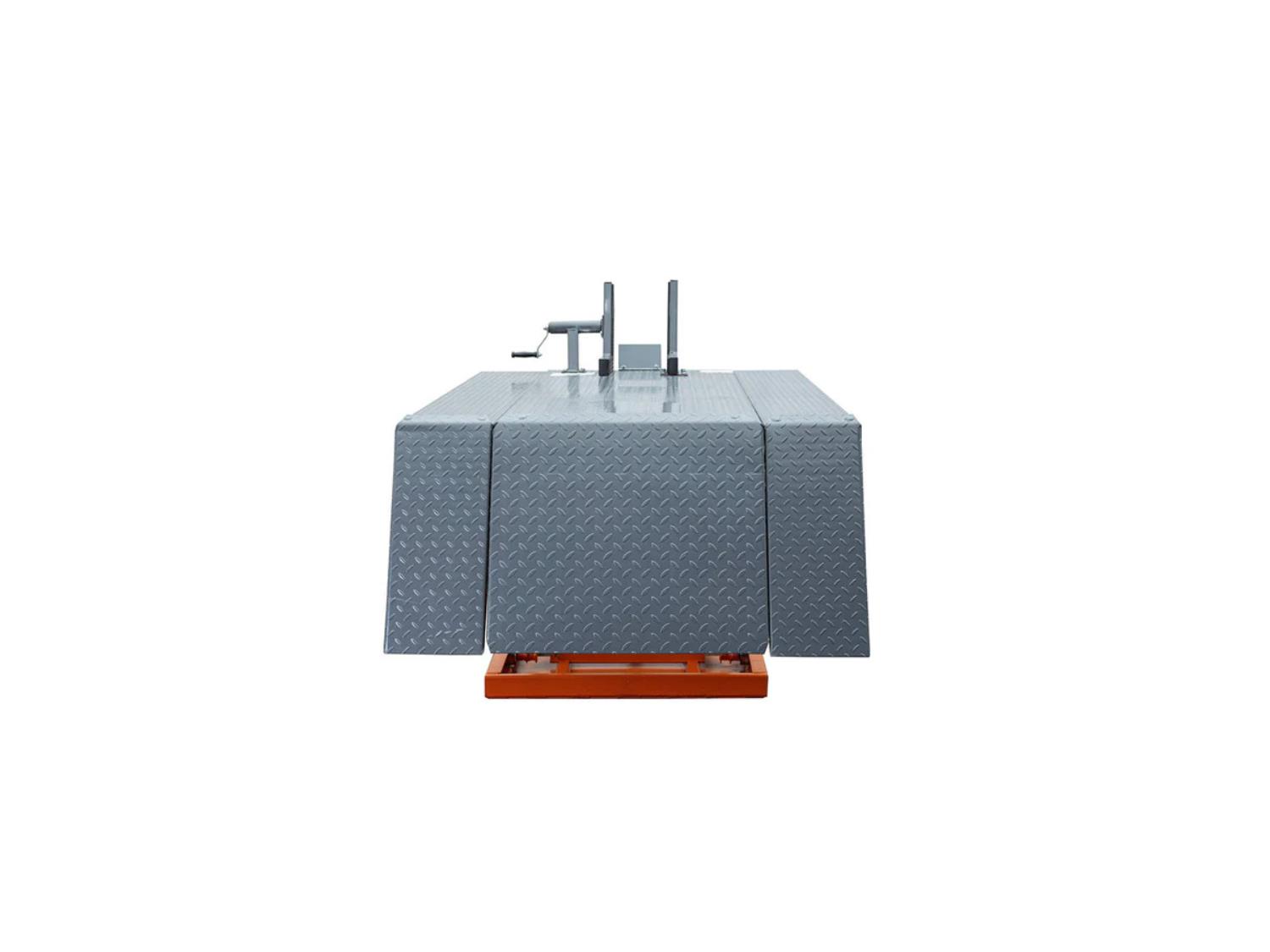 1500 lb maximum capacity, air assisted hydraulic lift, 32-1/2 inch maximum height, 28 inch main platform width, (2) 10 inch side extensions, 48 inch total work platform width, 77 inch platform length