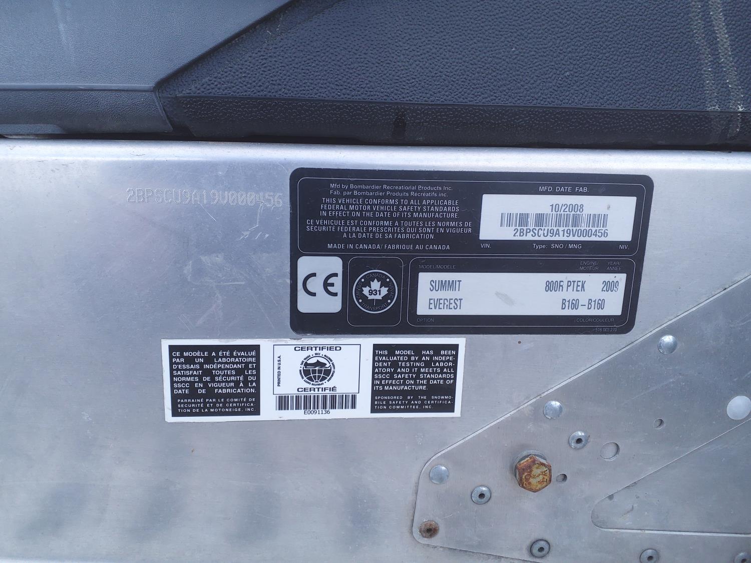 245 2009 Ski-doo Summit 800 Snowmobile