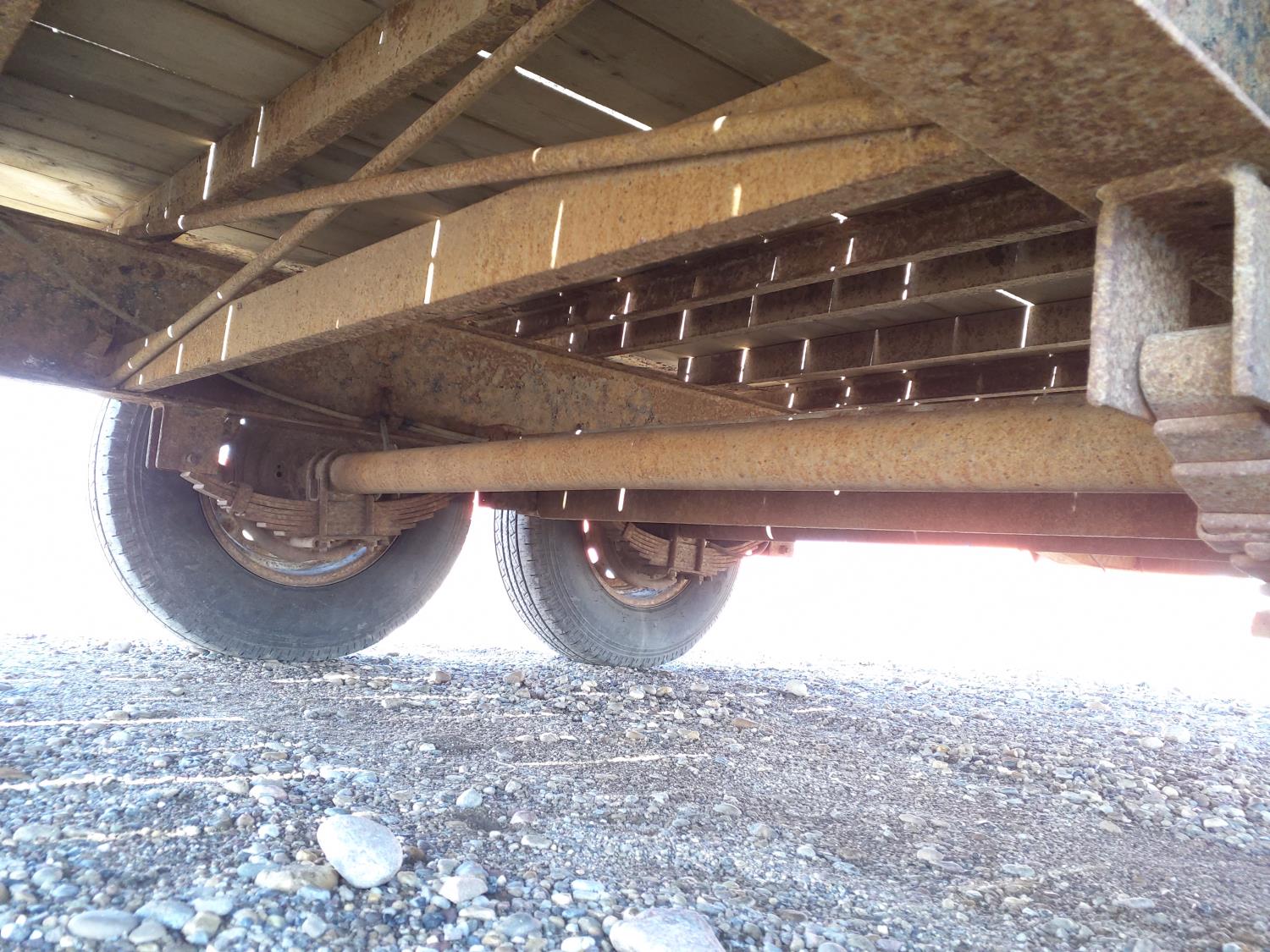 97 inch wide deck, 35 inch beaver tails, wood deck, flip over ramps, electric brakes, spring suspension, winch, 7000 lb axles, 235/80R16 tires
