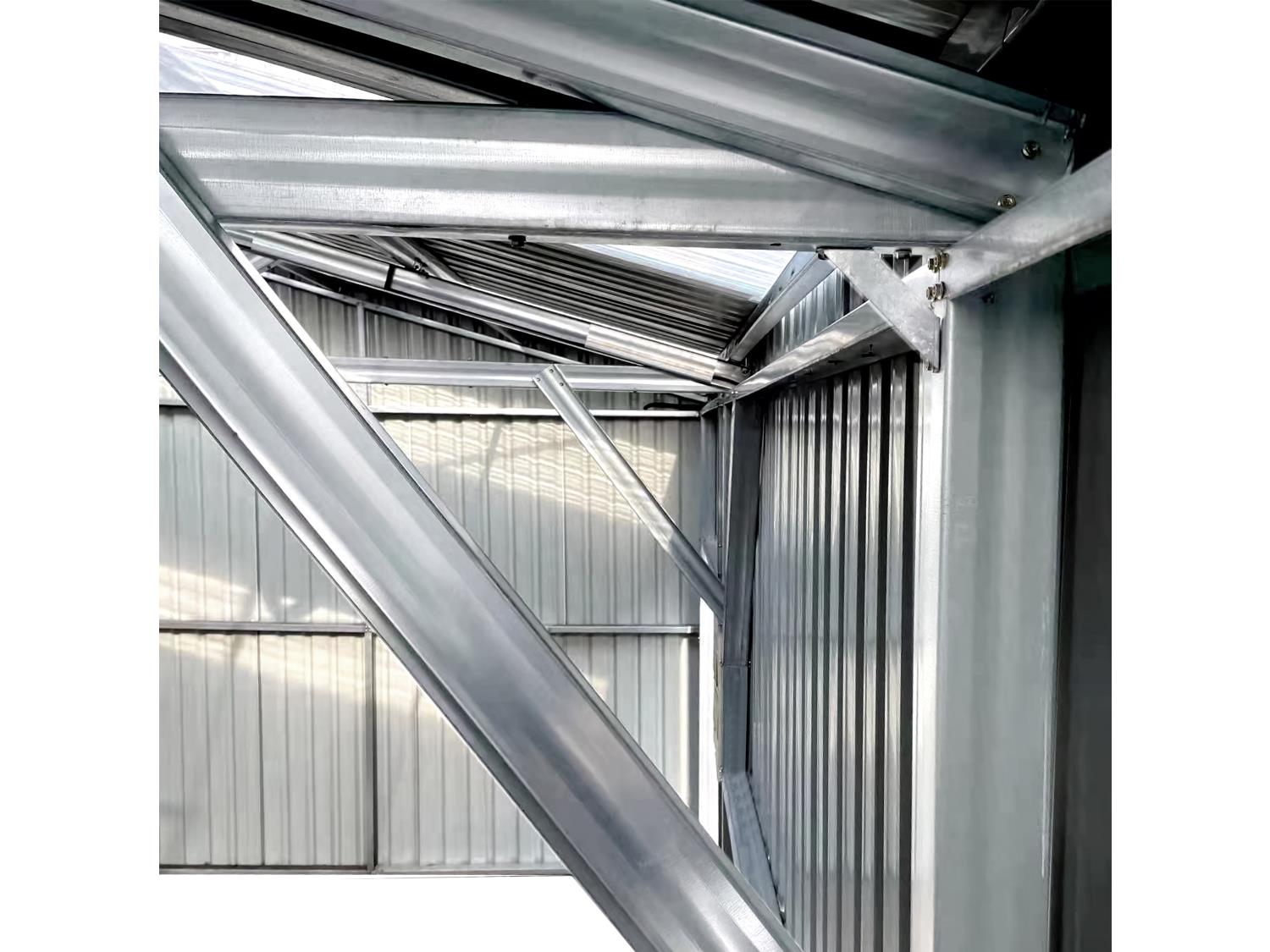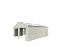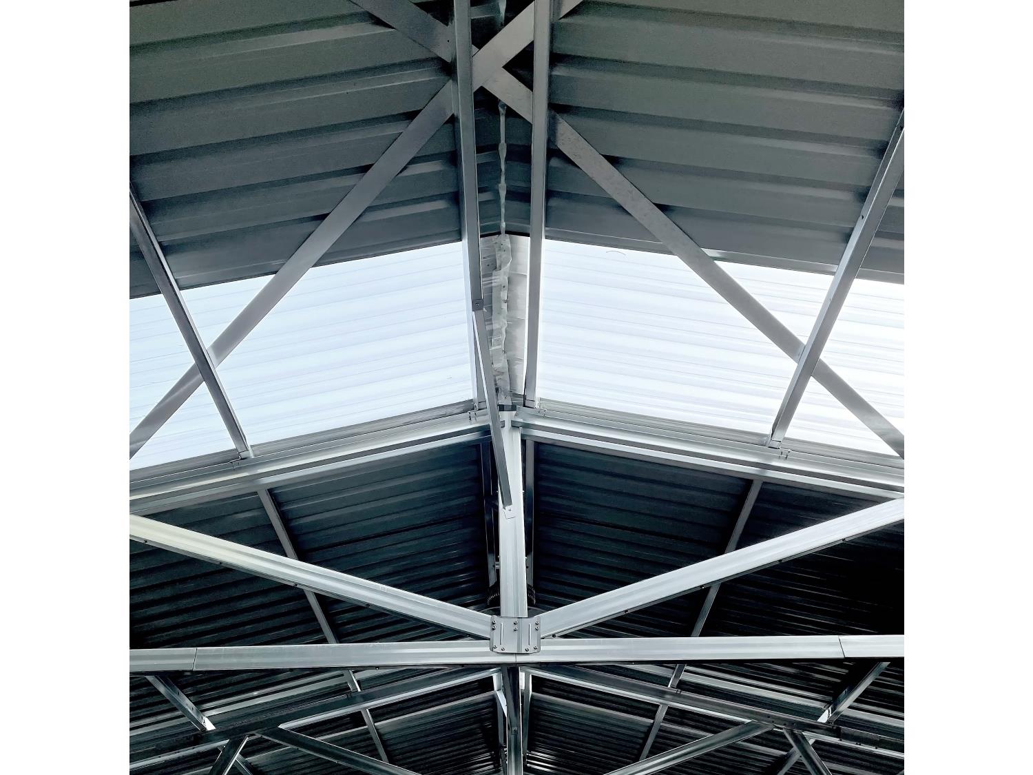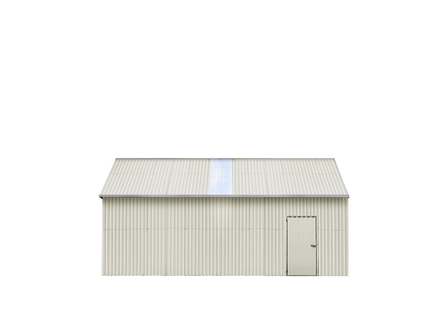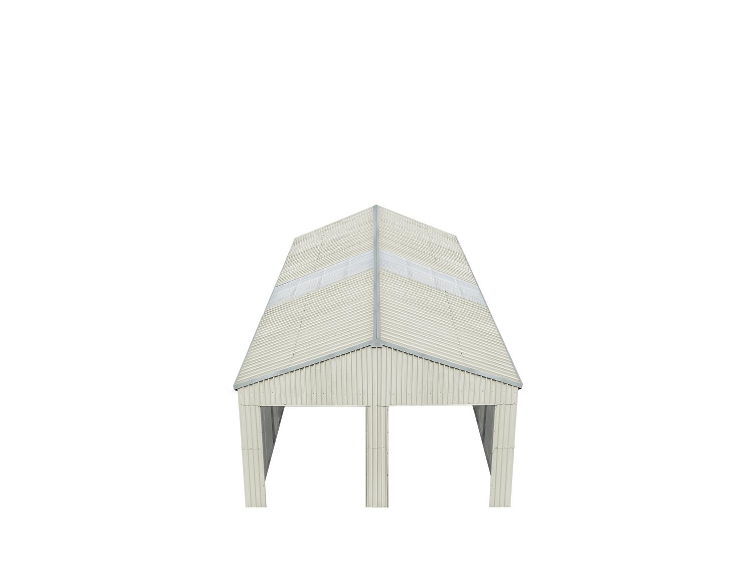825 sq-ft floor space, 9 ft 8 inch eave height, 27 GA metal, skylights, 4/12 roof pitch