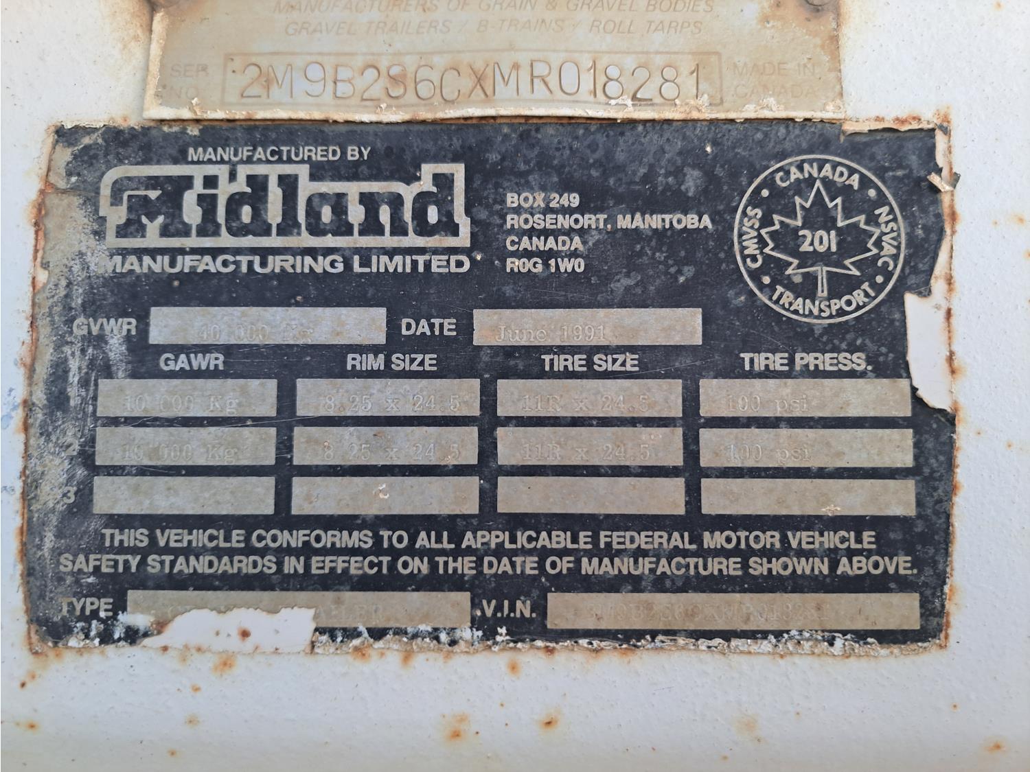 291 1992 Midland 28 Ft T/A Clam Bottom Dump Trailer