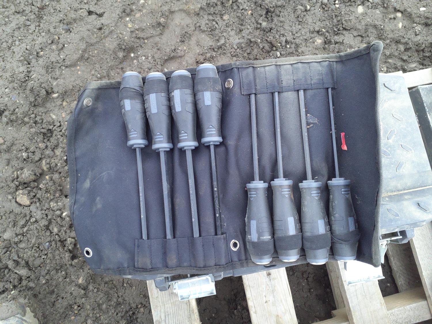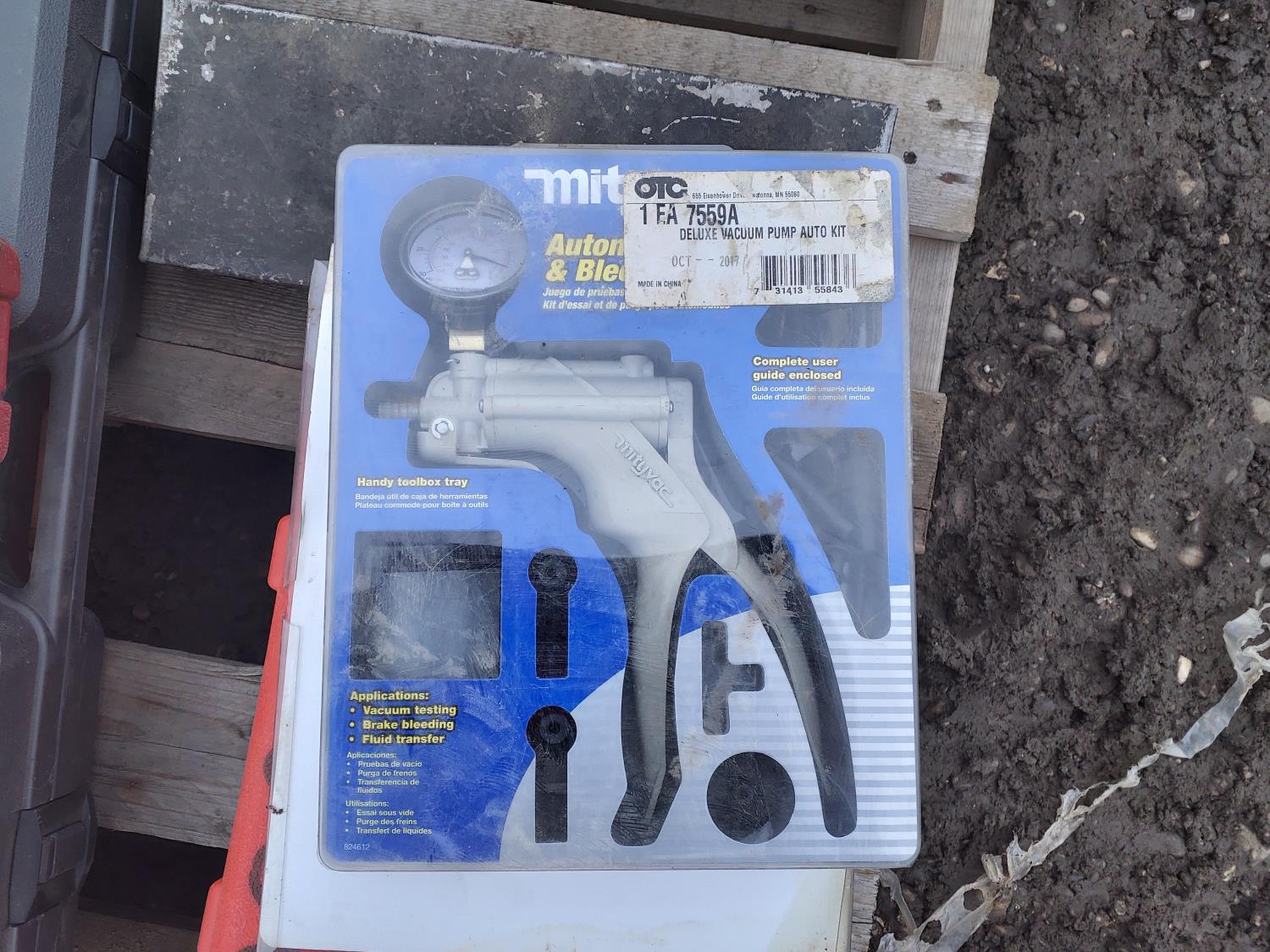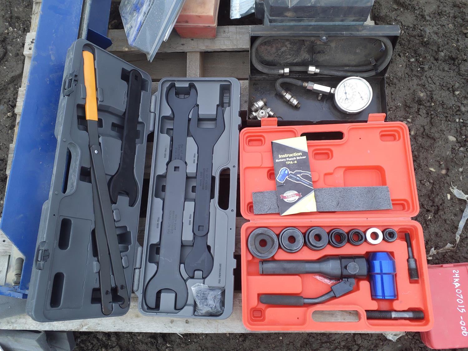 wrenches, booster cables, socket set, screw drivers, vacuum pump auto kit, rotary punch kit