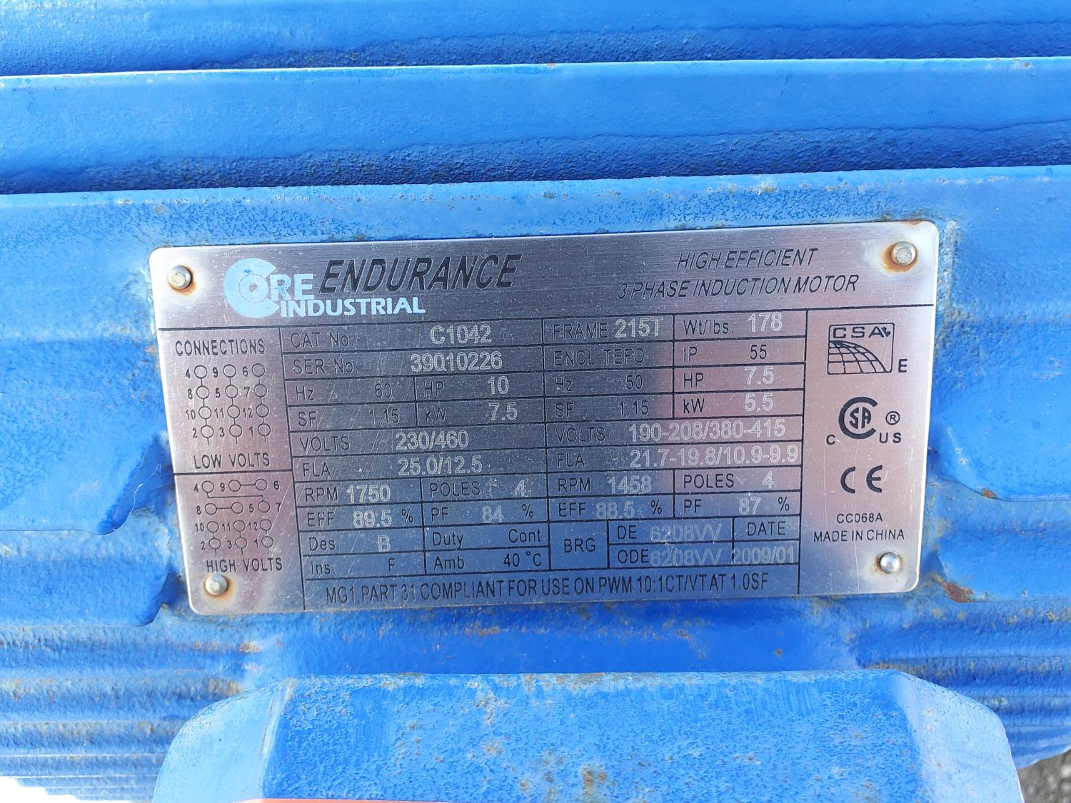 10 HP, 3 phase, 25 amp, 208 volt