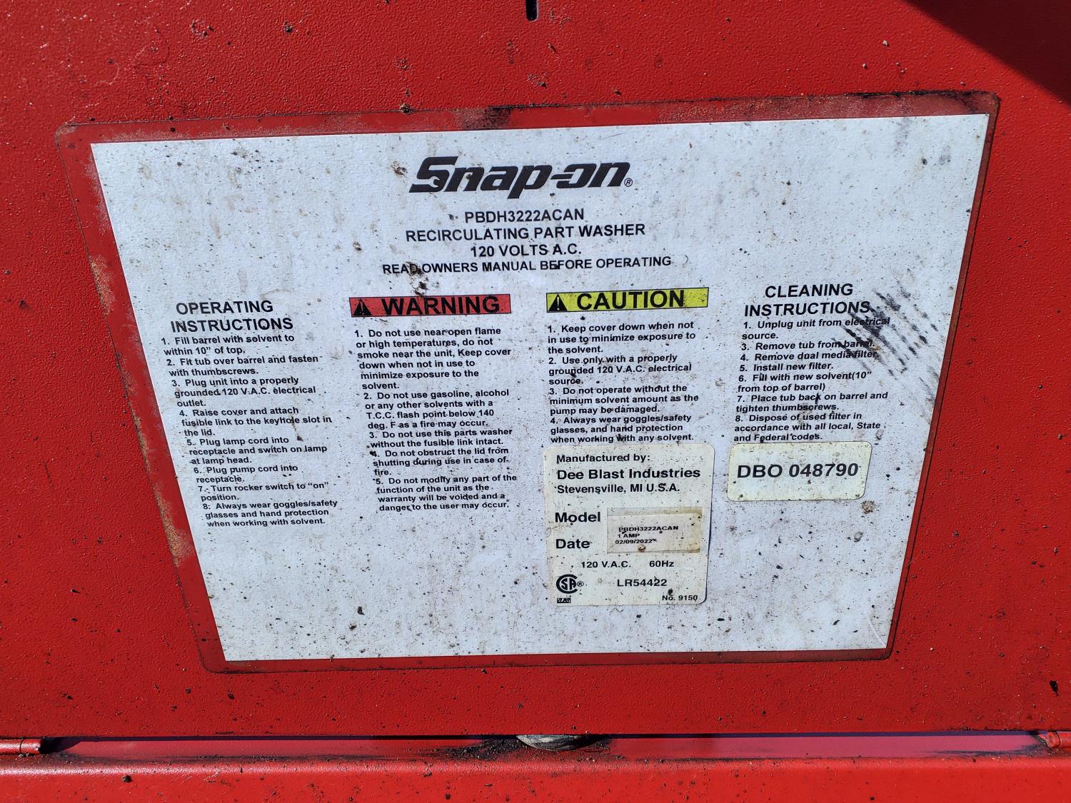 92 Snap On Recirculating Part Washer