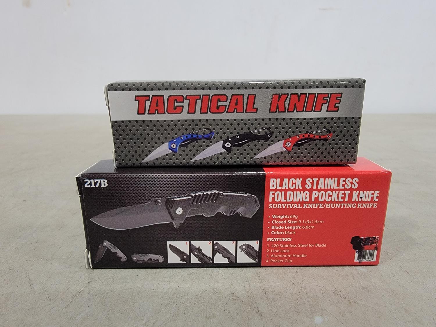 1549 (1) Mini Tactical Knife and (1) Black Stainless Steel Folding Pocket Knife (Unused)
