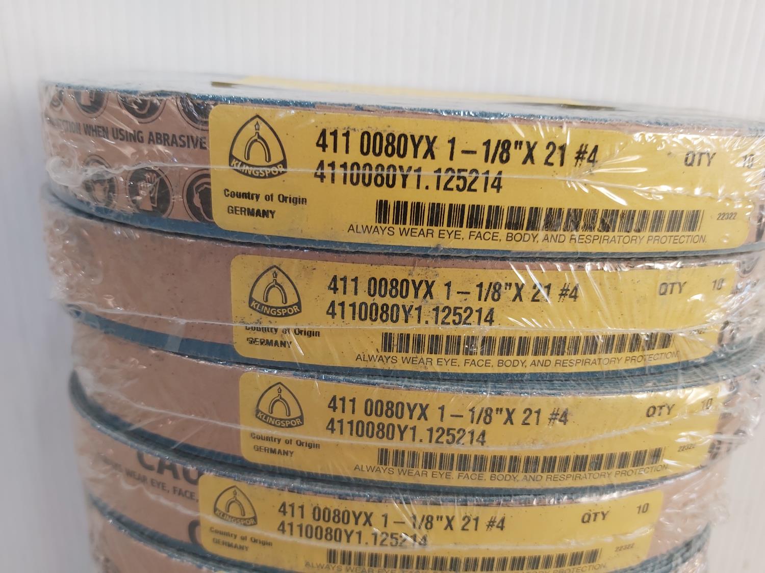 1605 (100) 1/8 Inch X 21 #4 Grade 80 Sanding Belts (Unused)