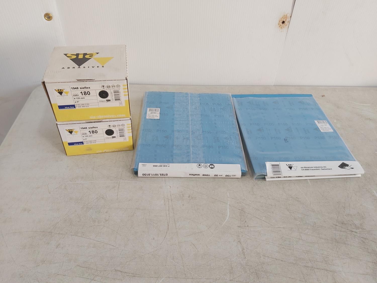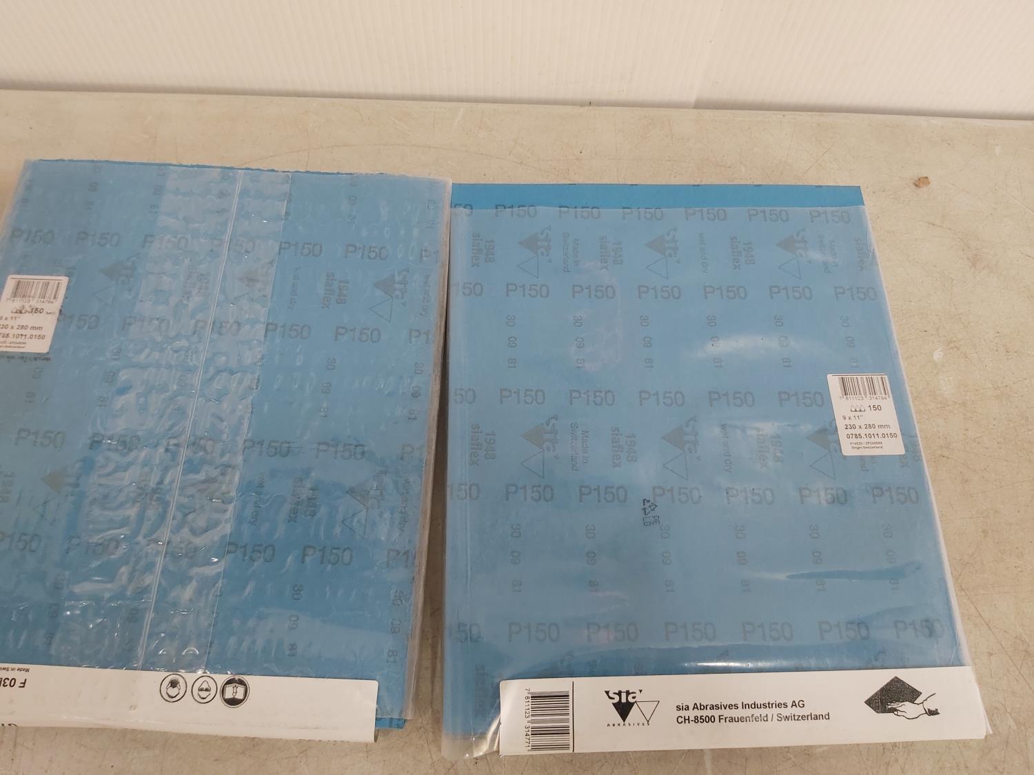 1608 (100) 9 Inch X 11 Inch P150 Sand Paper Sheets and (200) 5 Inch X P180 Sanding Discs (Unused)