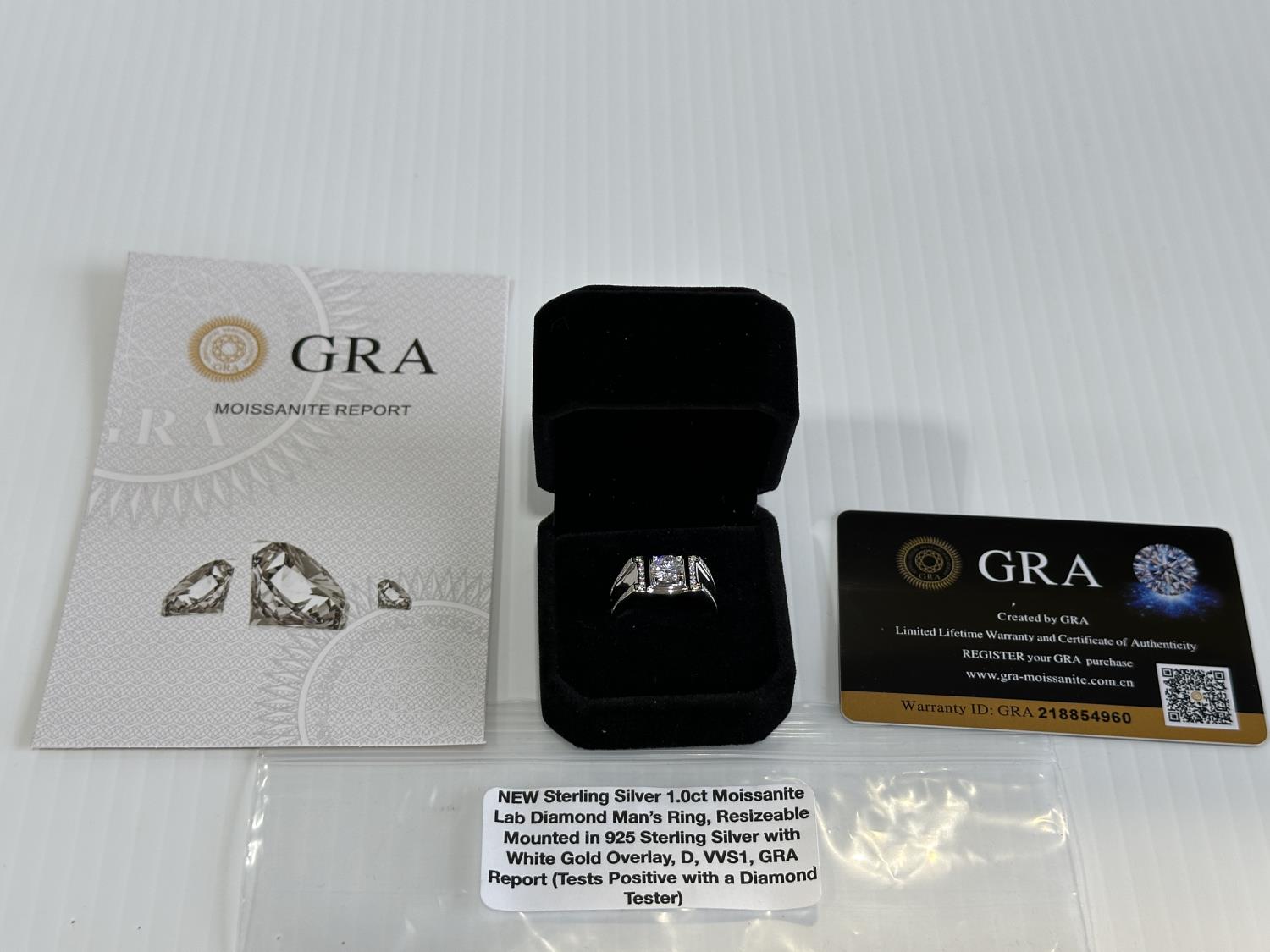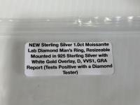 2095 1.0Ct. Moissanite Lab Diamond Men's Resizable Ring (Unused)