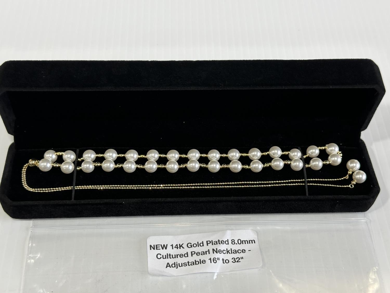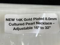 2115 14K Gold Plated 8.0 mm Cultured Pearl Necklace (Unused)