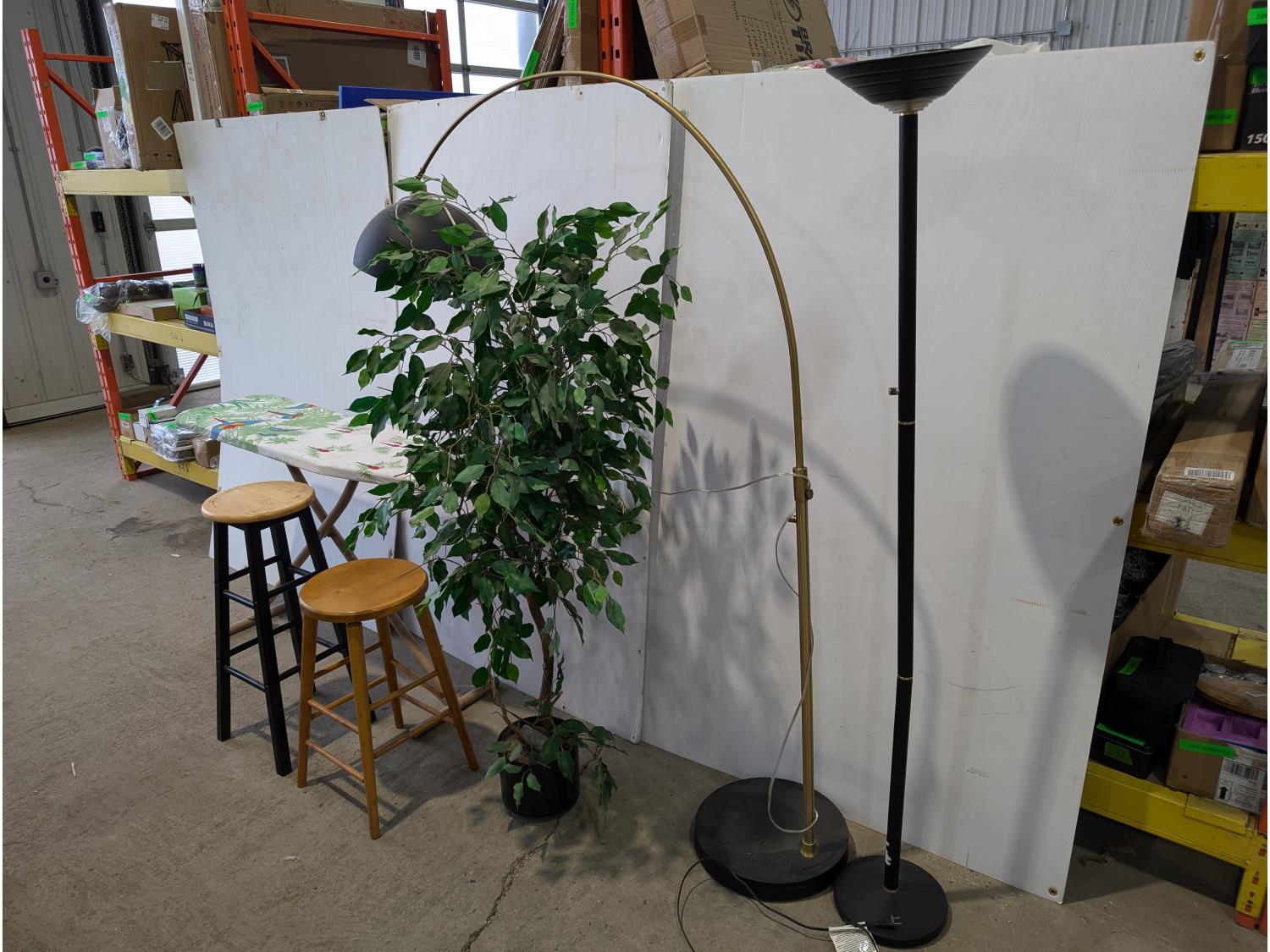 1675 (2) Lamps, (2) Stools, Ironing Board and Artificial Lamp