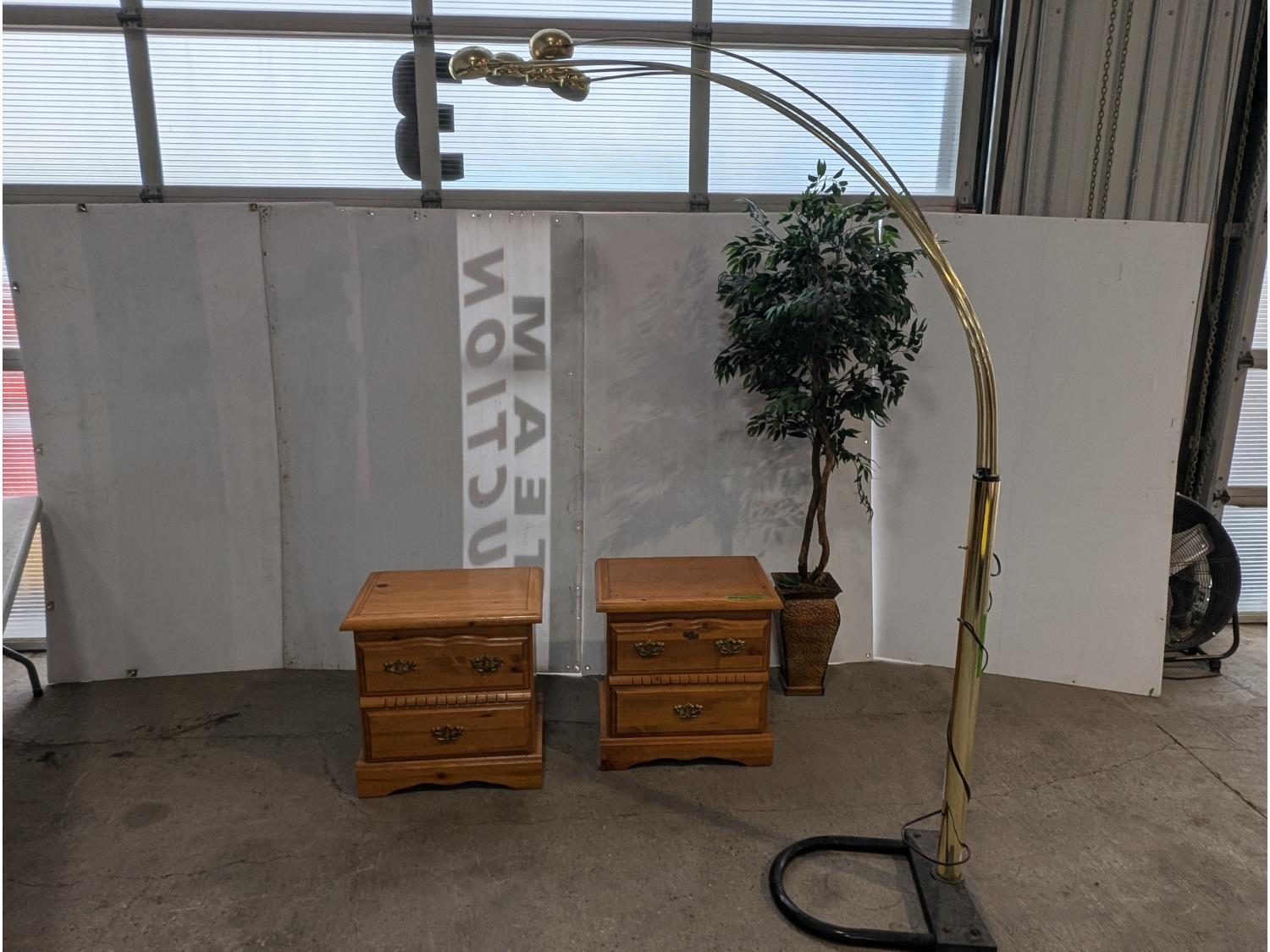 1714 (2) Night Tables, 5-Head Floor Lamp and Artificial Plant