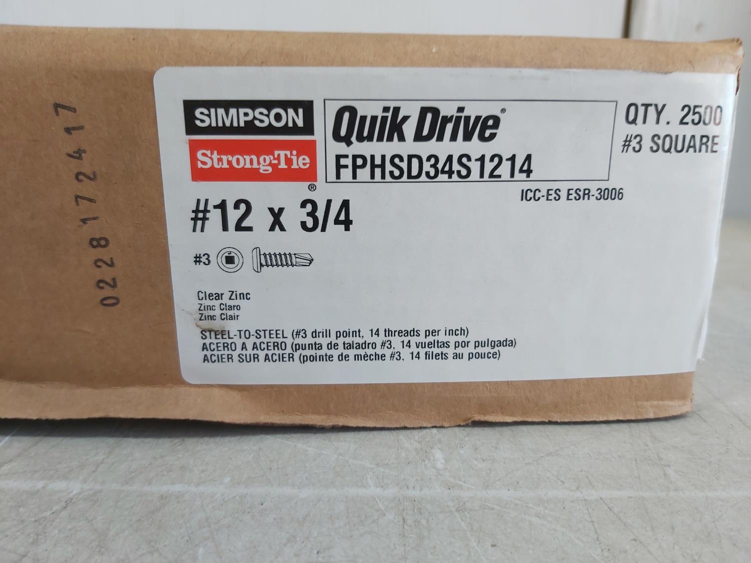1305 (5000) #12-3/4 Inch Simpson Quick Drive Zinc Screws (Unused)