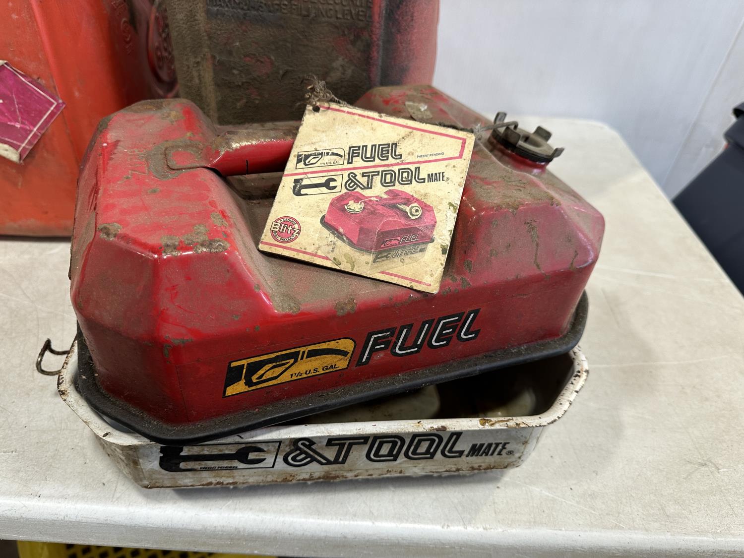 1131 (6) Jerry Cans and Fuel & Tool 1-1/2 Gallon Fuel Tank/Undermount Toolbox
