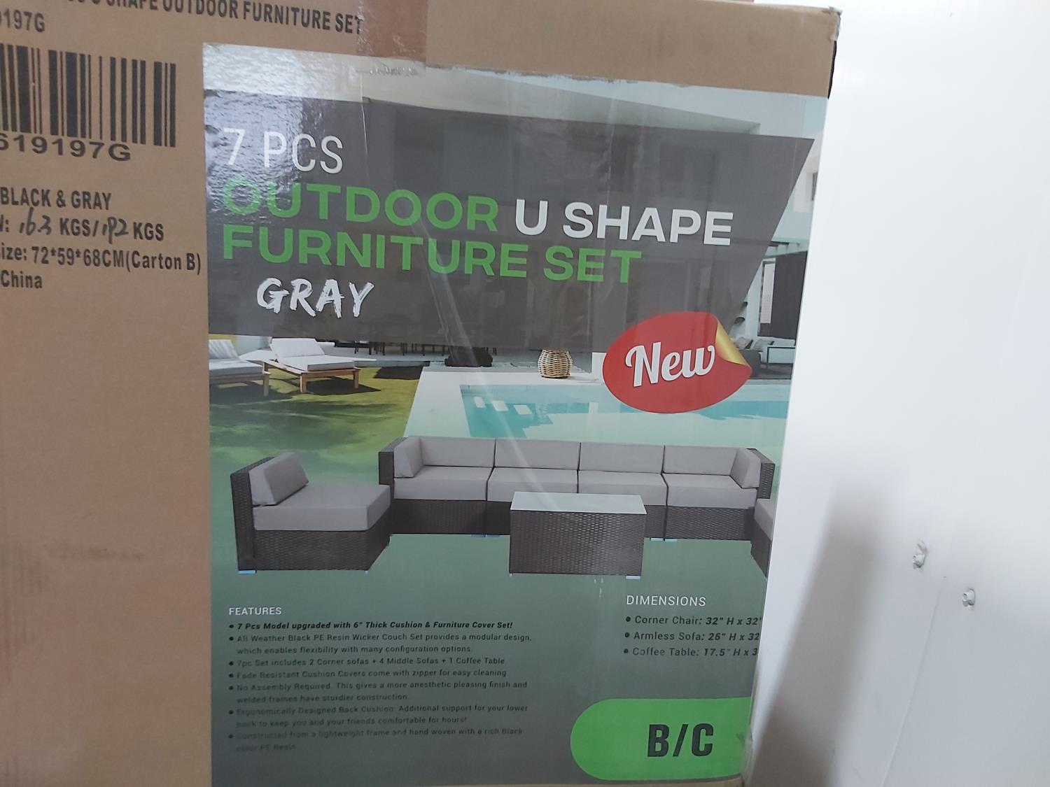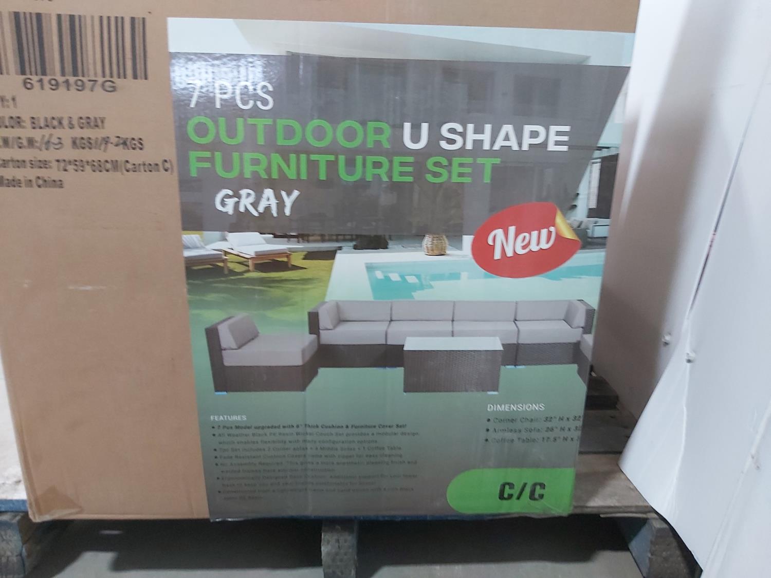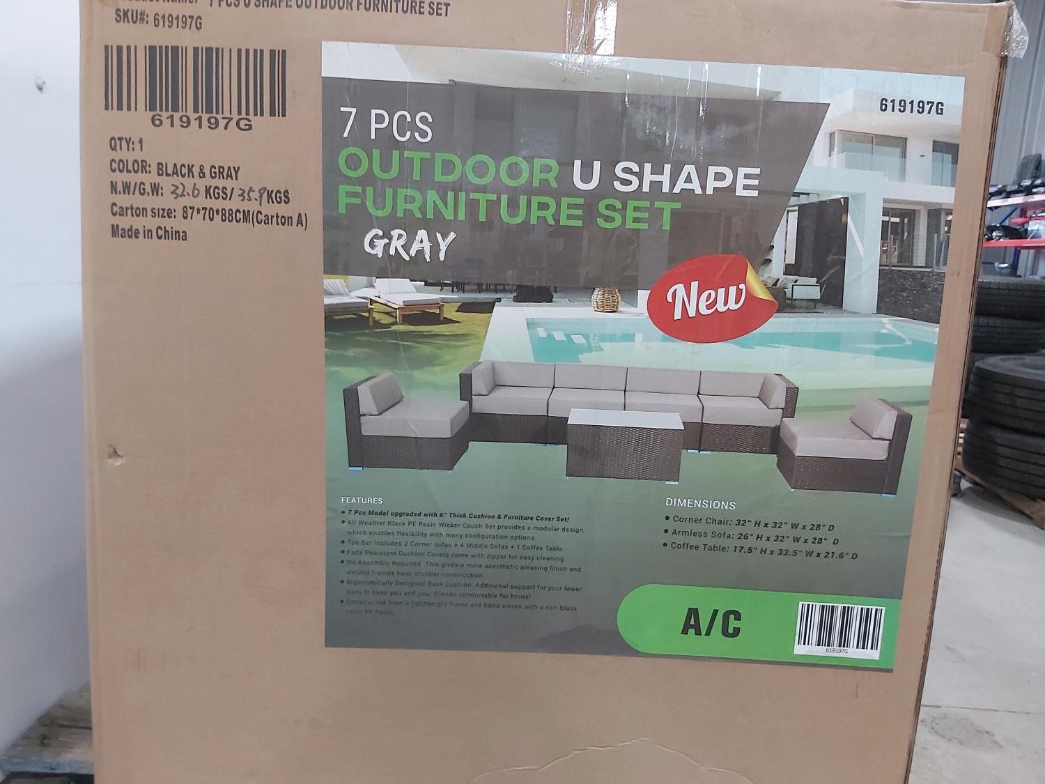 1207 7 Piece Outdoor U-Shape Patio Furniture Set - Gray (Unused)
