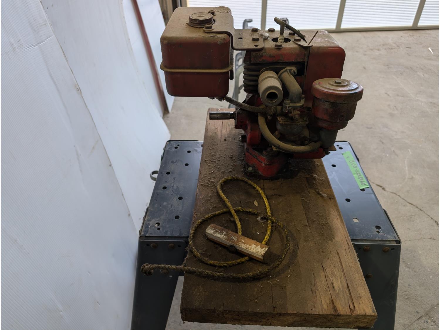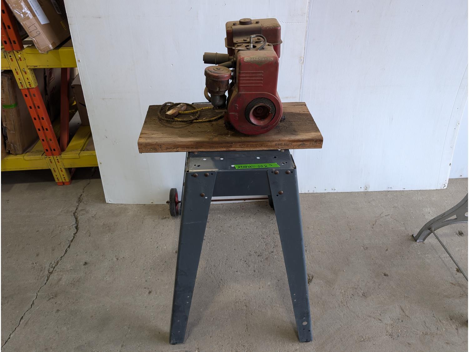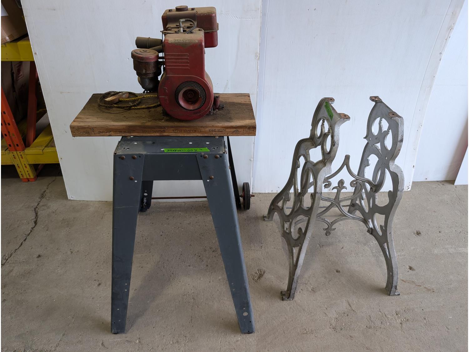 1274 Antique Cast Iron Stand, Brigg's & Stratton Motor (Inoperable) and Saw Stand