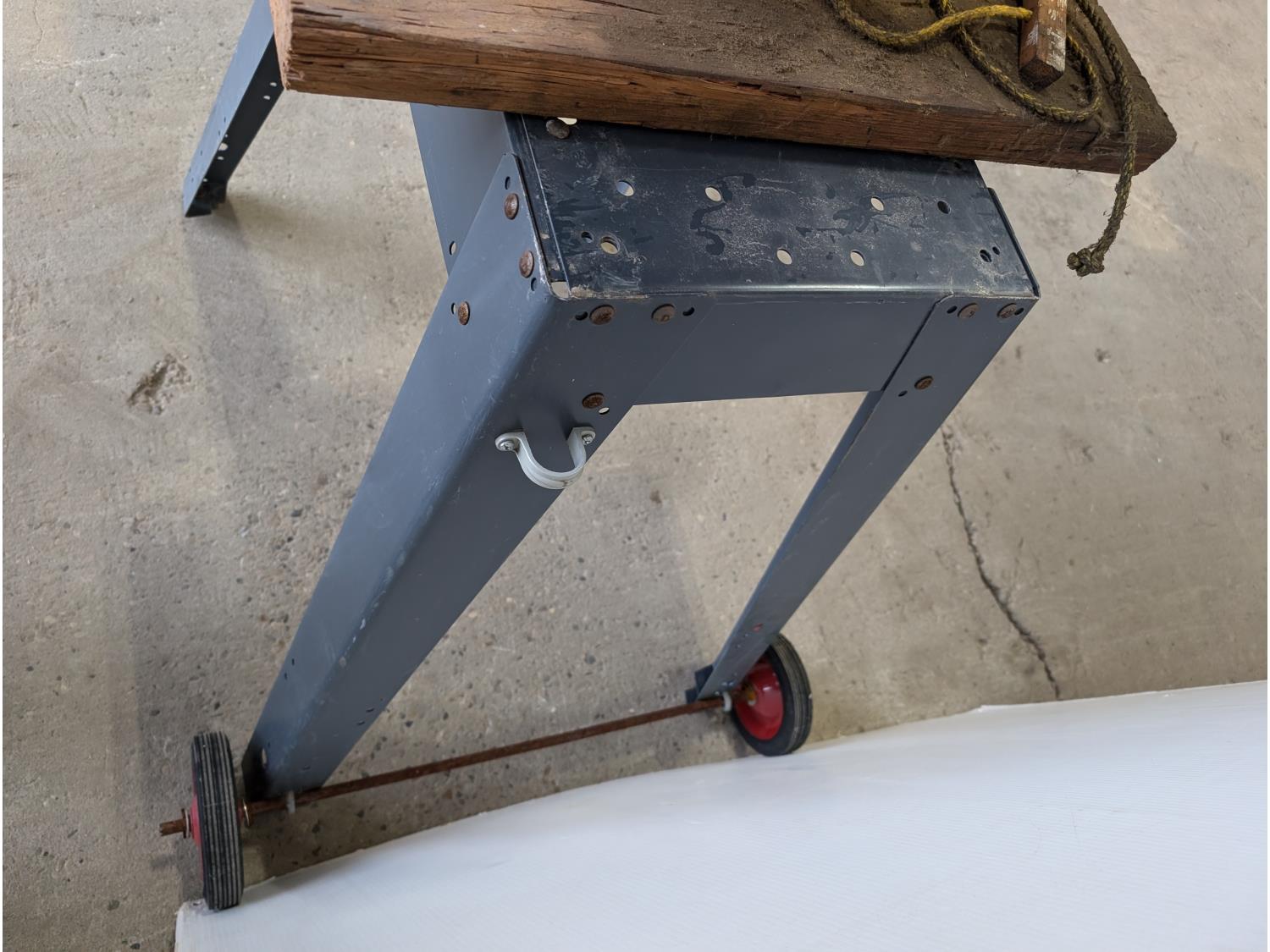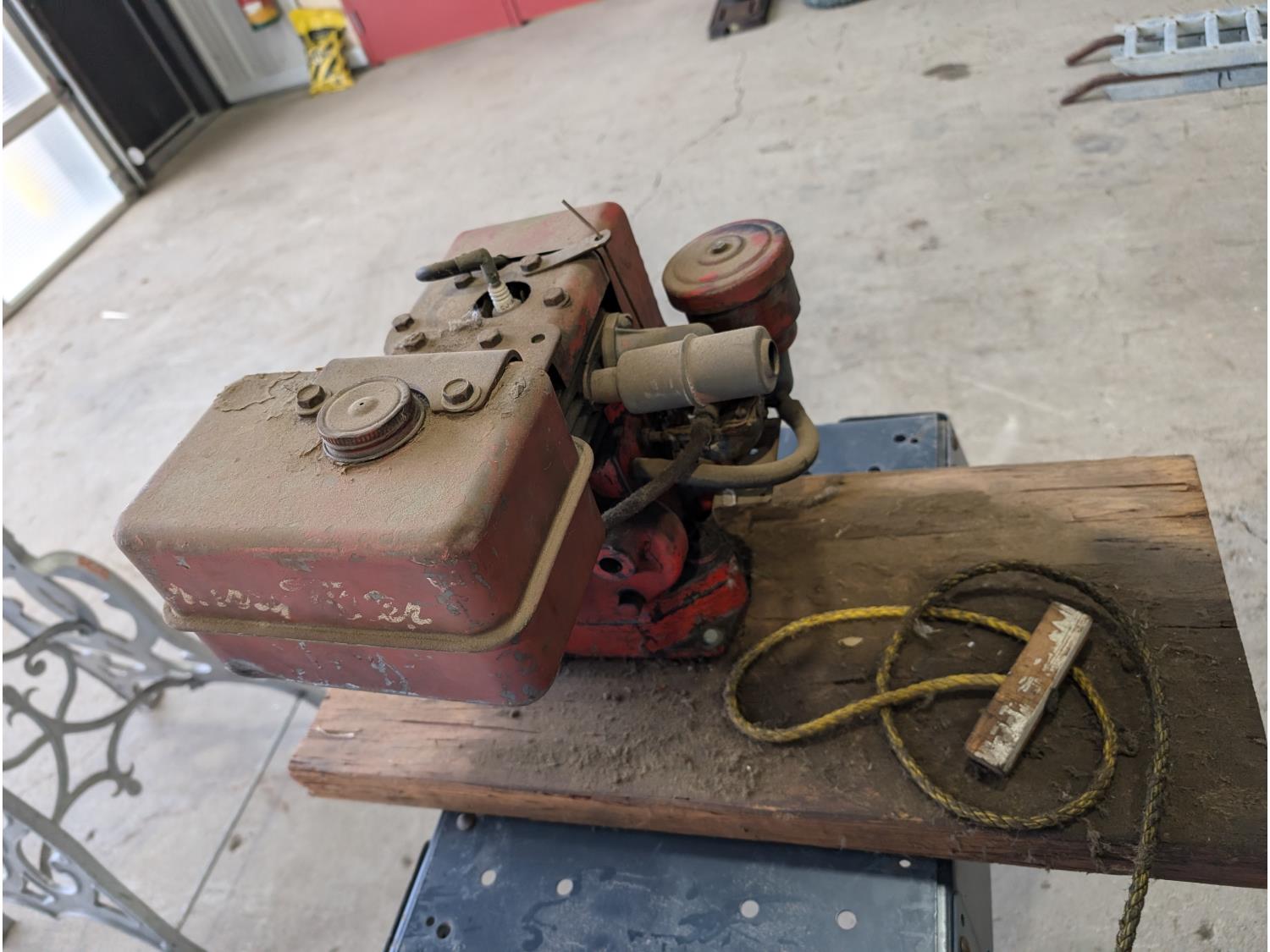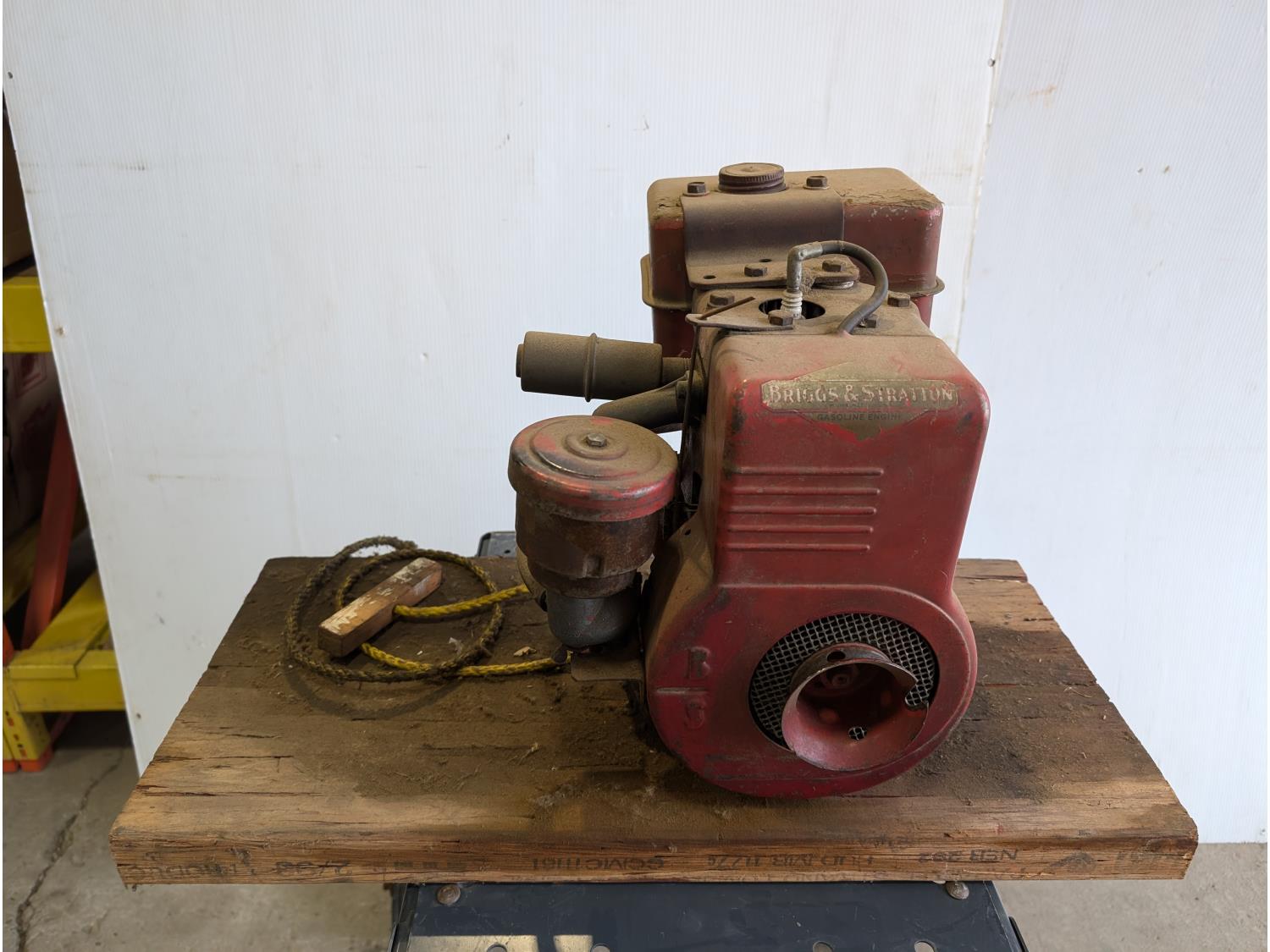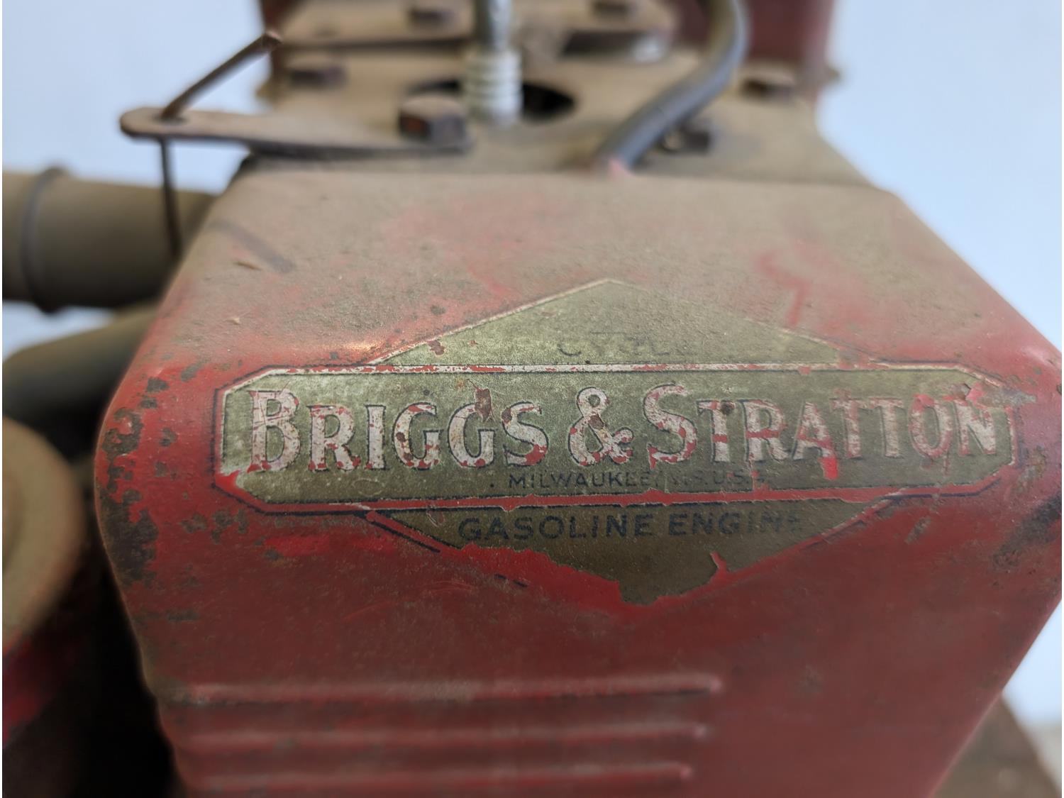 1274 Antique Cast Iron Stand, Brigg's & Stratton Motor (Inoperable) and Saw Stand