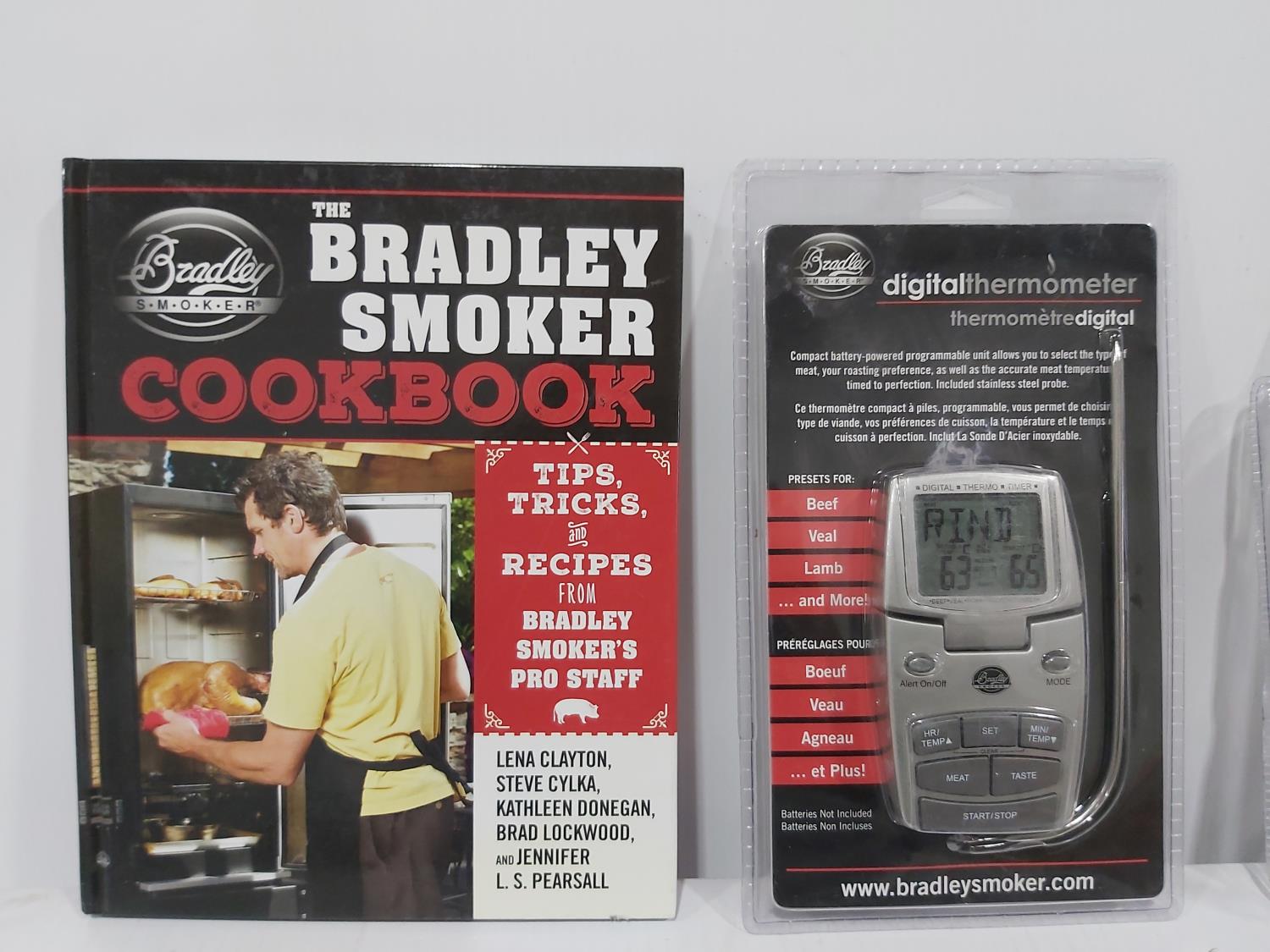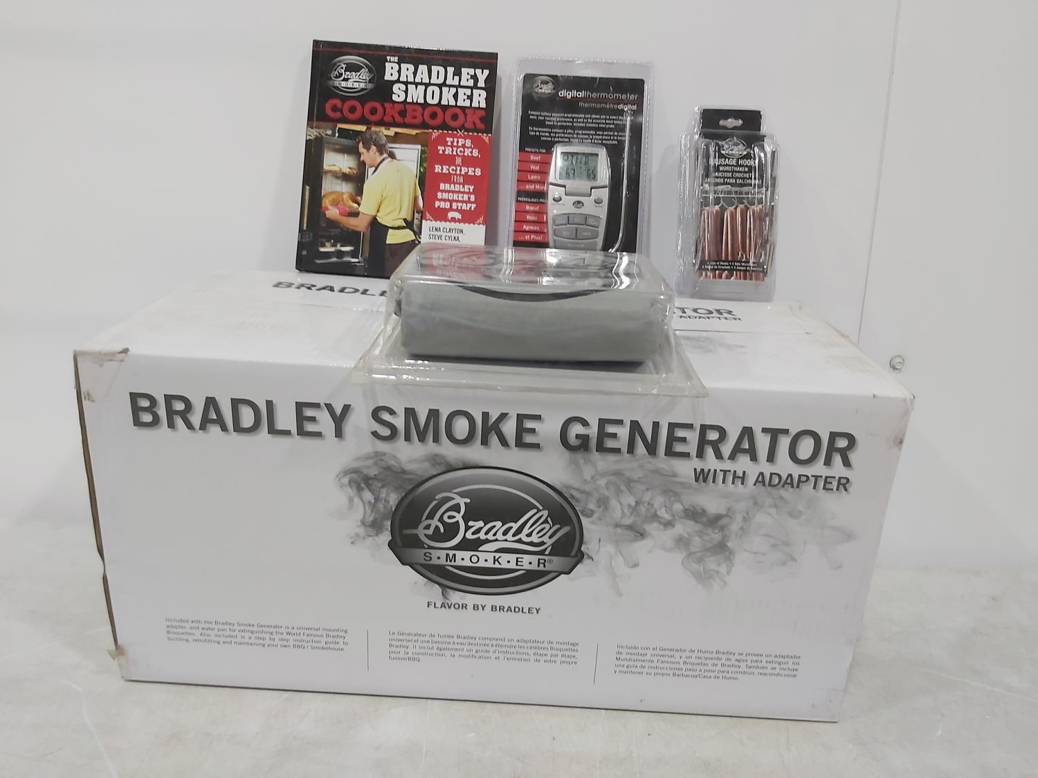 1454 Bradley Smoke Generator, Cook Book, Digital Thermometer, Cover, Sausage Hooks (Unused)