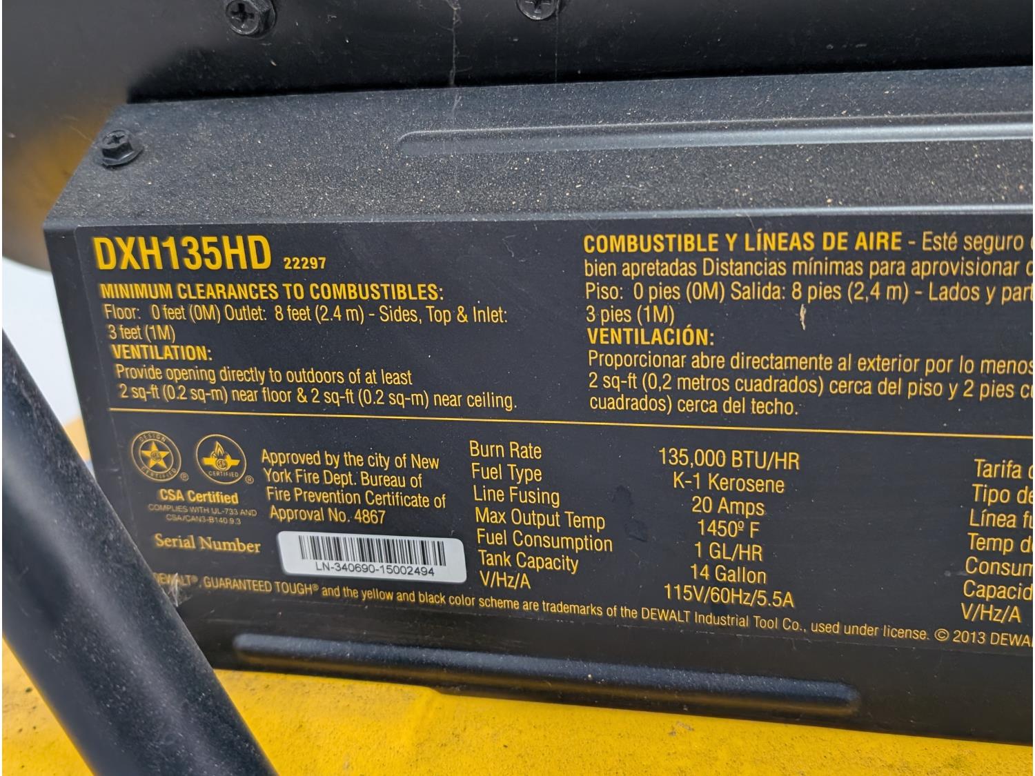 1000 DeWalt 135,000 BTU Kerosene Construction Heater