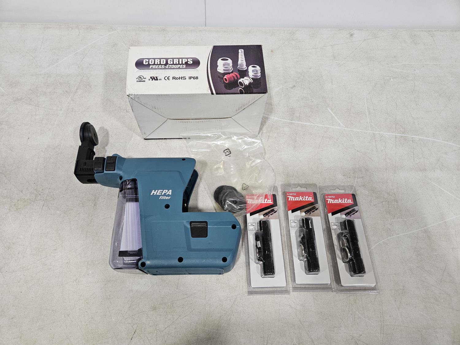 1464 Makita 18V Dust Extractor, Flashlights, Cord Grips (Unused)