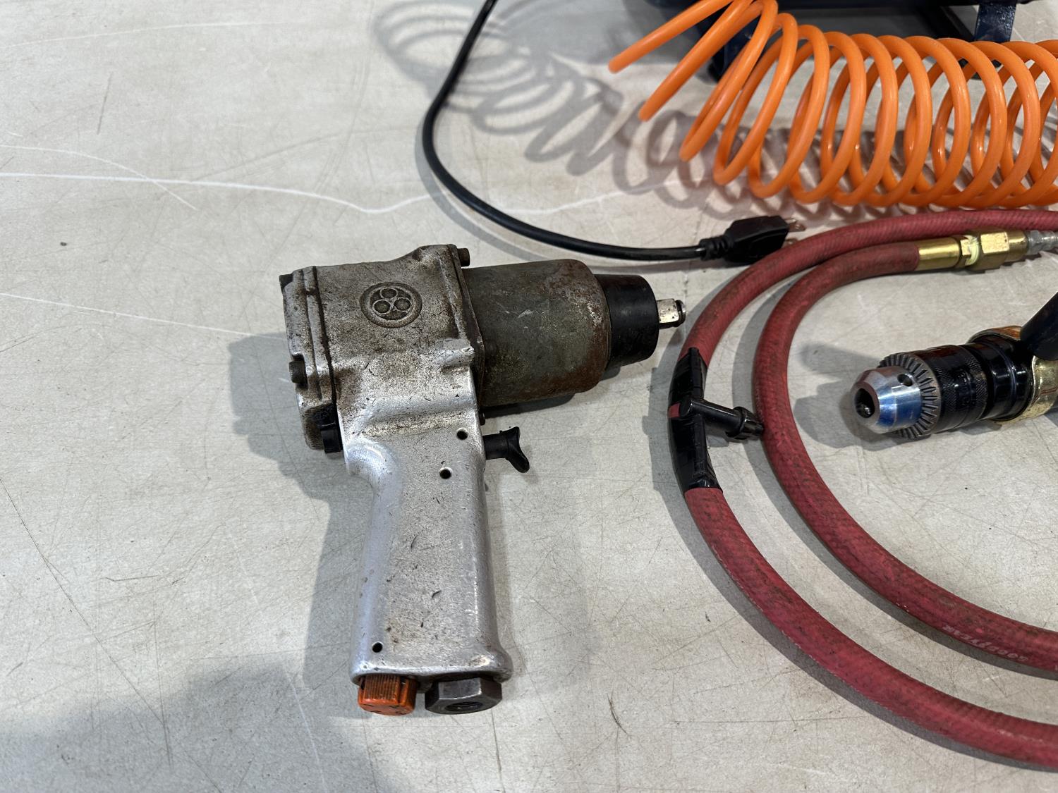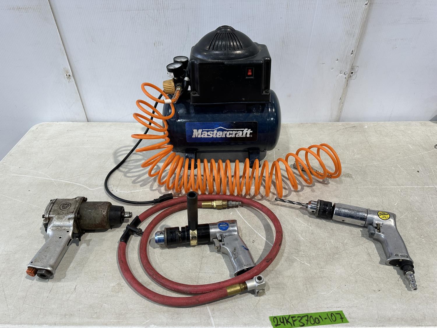 1372 Mastercraft 2 Gallon Air Compressor, (2) Air Drills and 1/2 Inch Impact