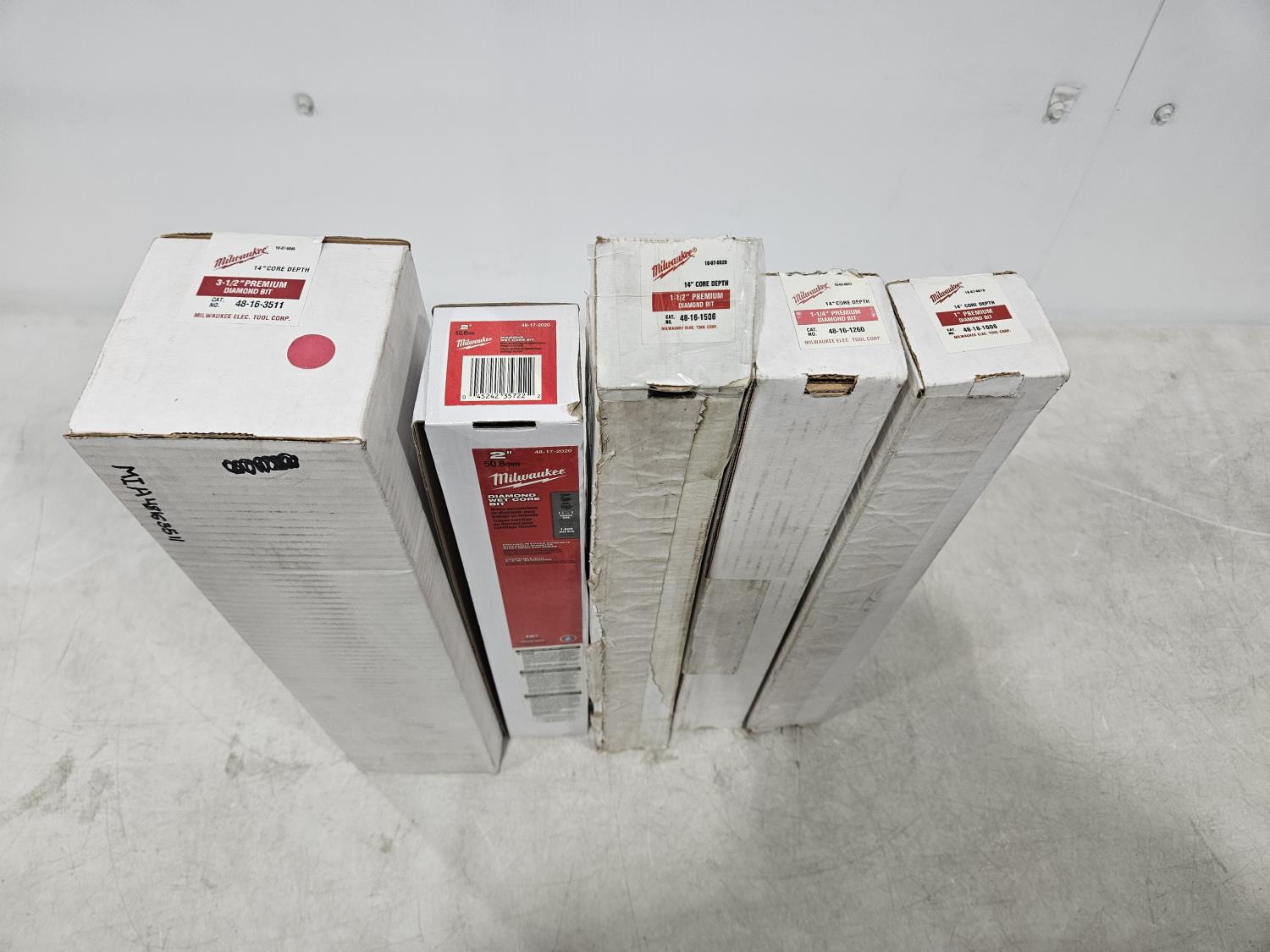 1576 Milwaukee 3.5 Inch, 2 Inch, 1.5 Inch, 1-1/4 Inch, 1 Inch Premium Diamond Bit (Unused)
