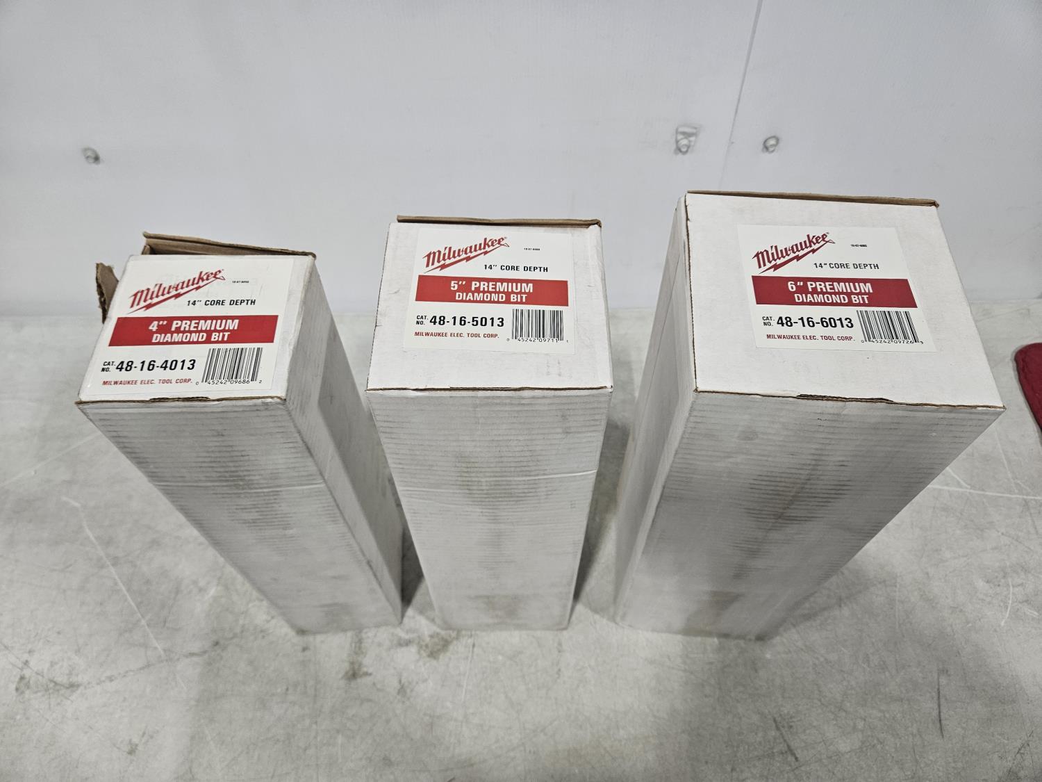 1594 Milwaukee 4 Inch, 5 Inch, and 6 Inch Premium Diamond Bits (Unused)