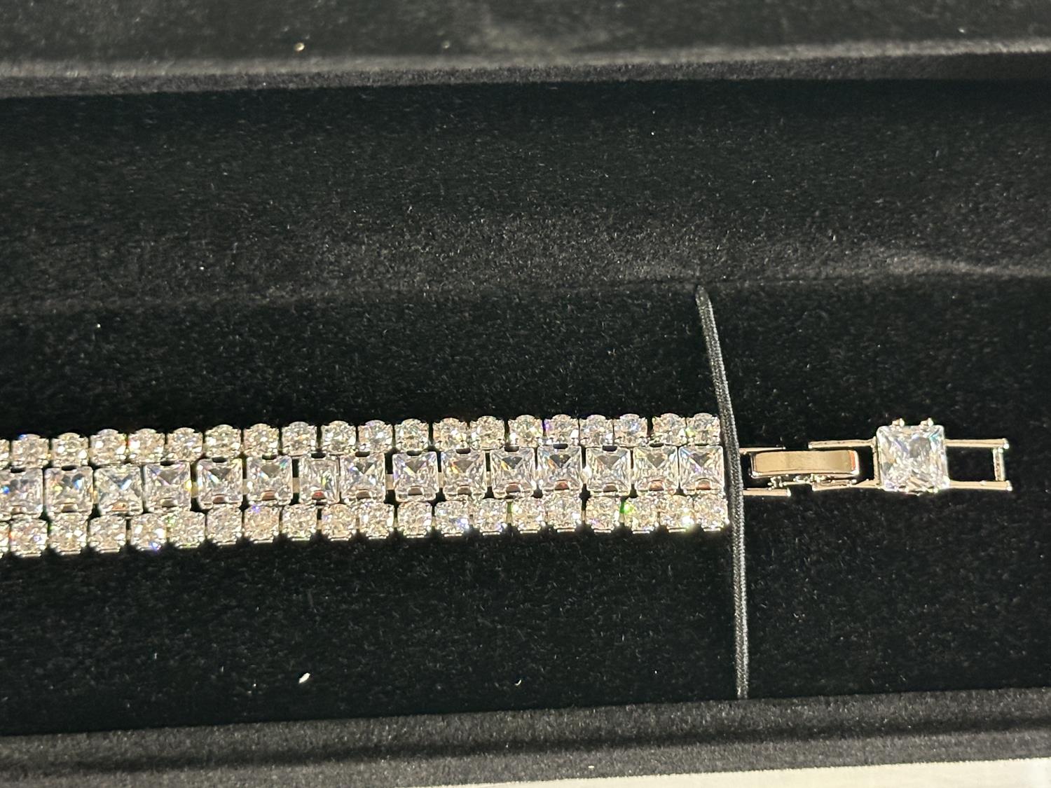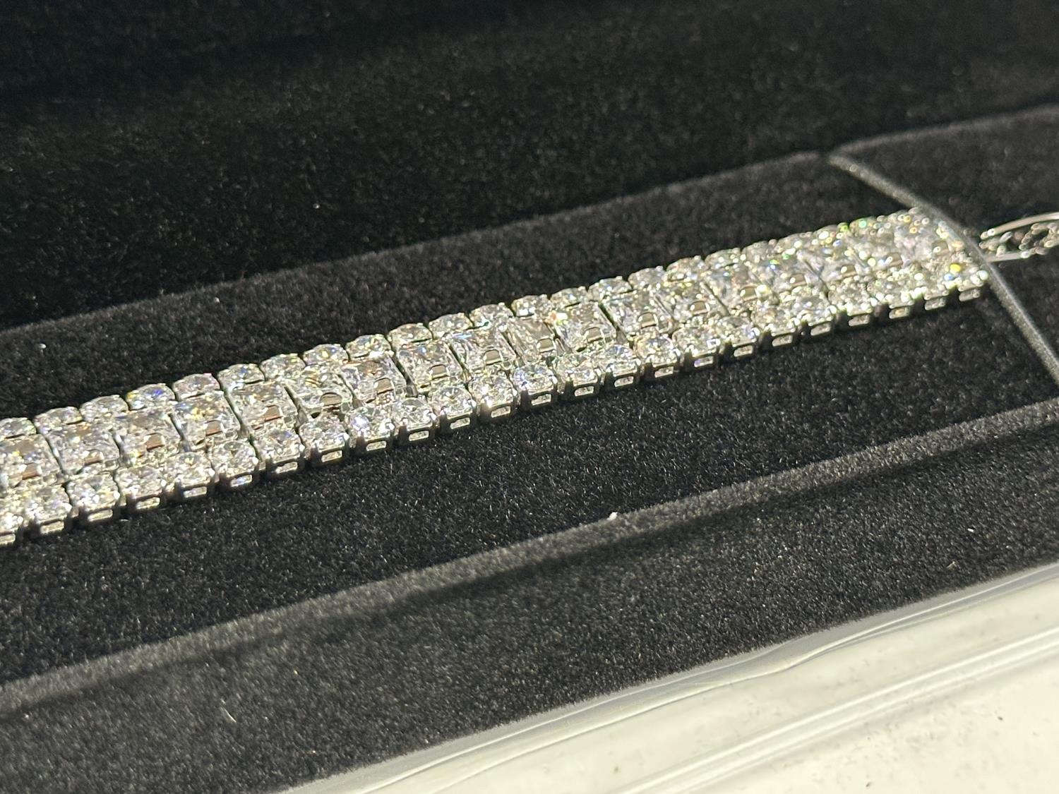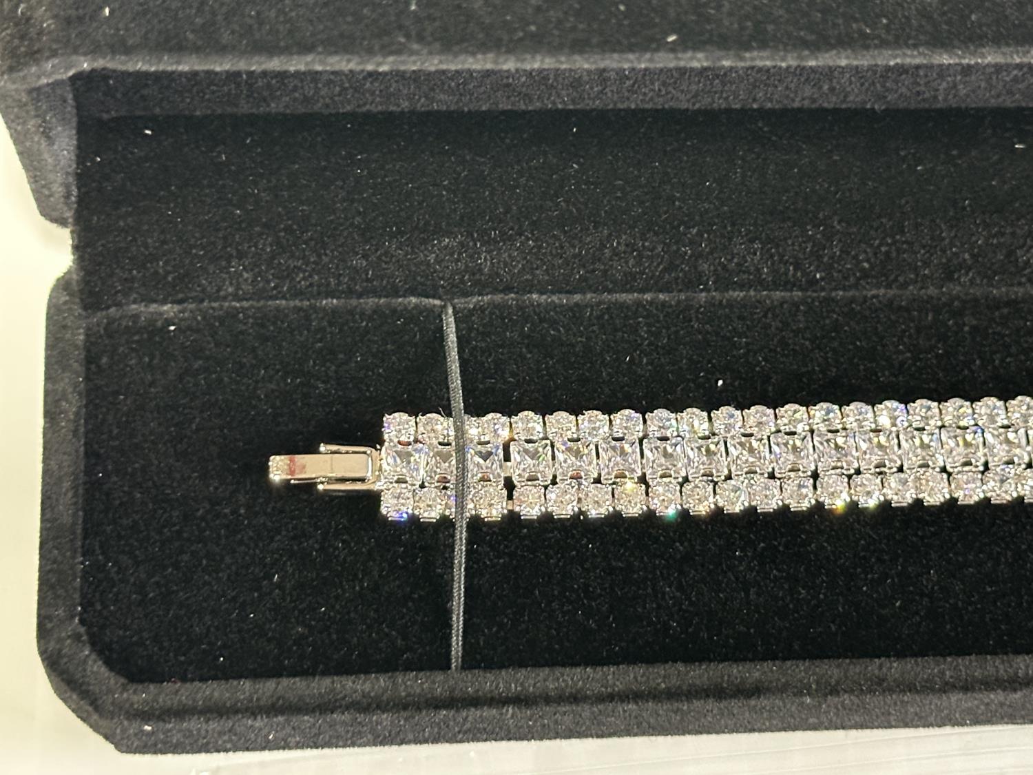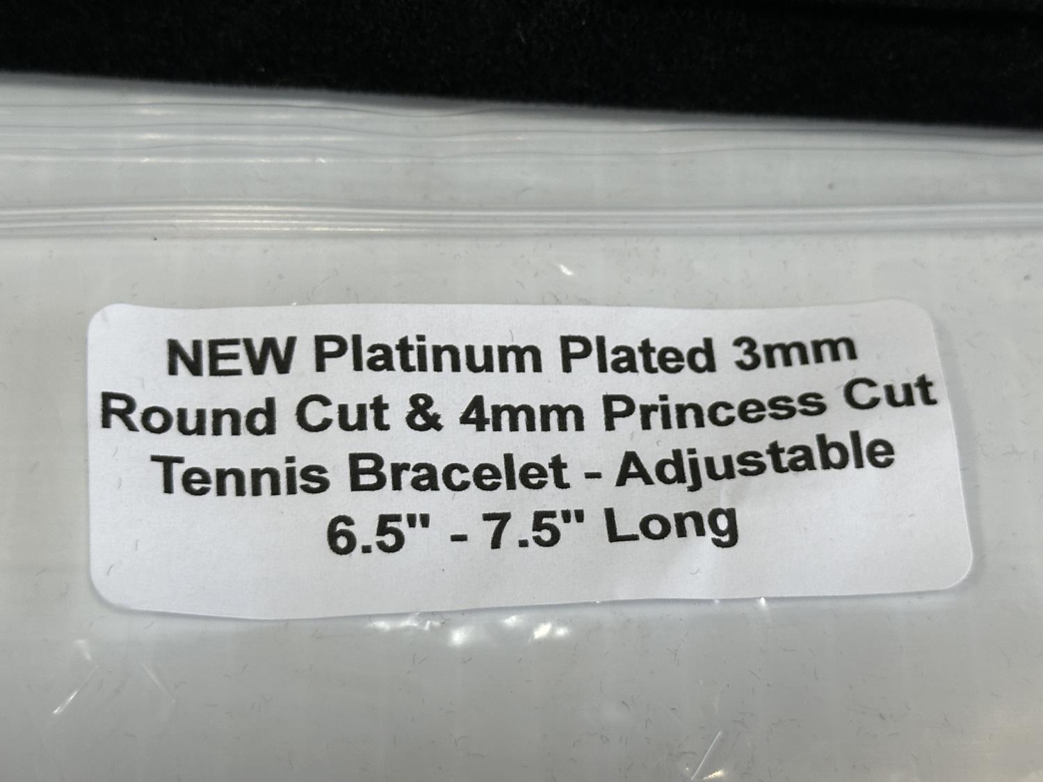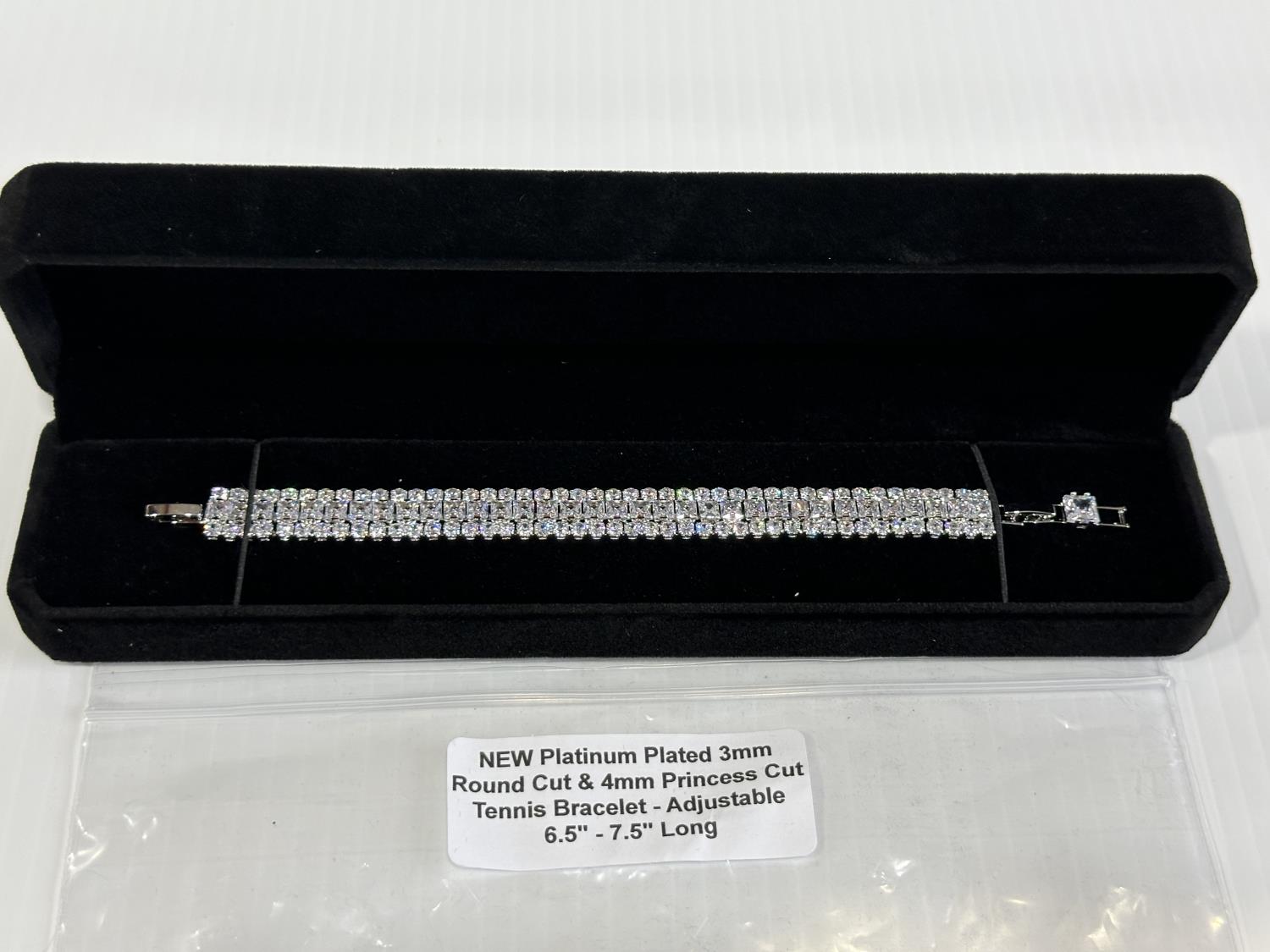 2112 Platinum Plated 3 mm Round Cut & 4 mm Princess Cut Tennis Bracelet (Unused)