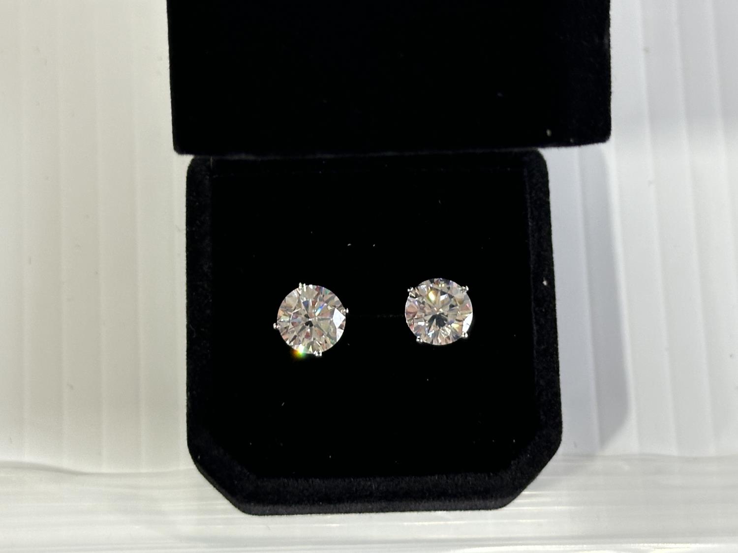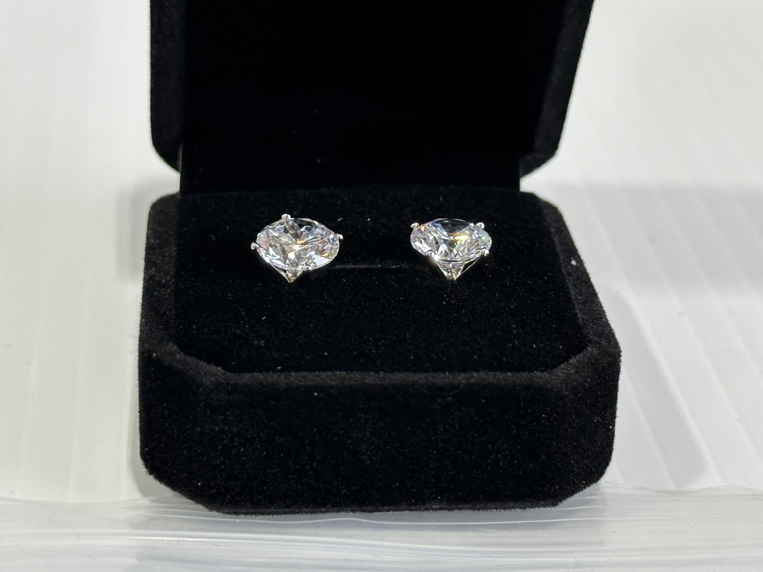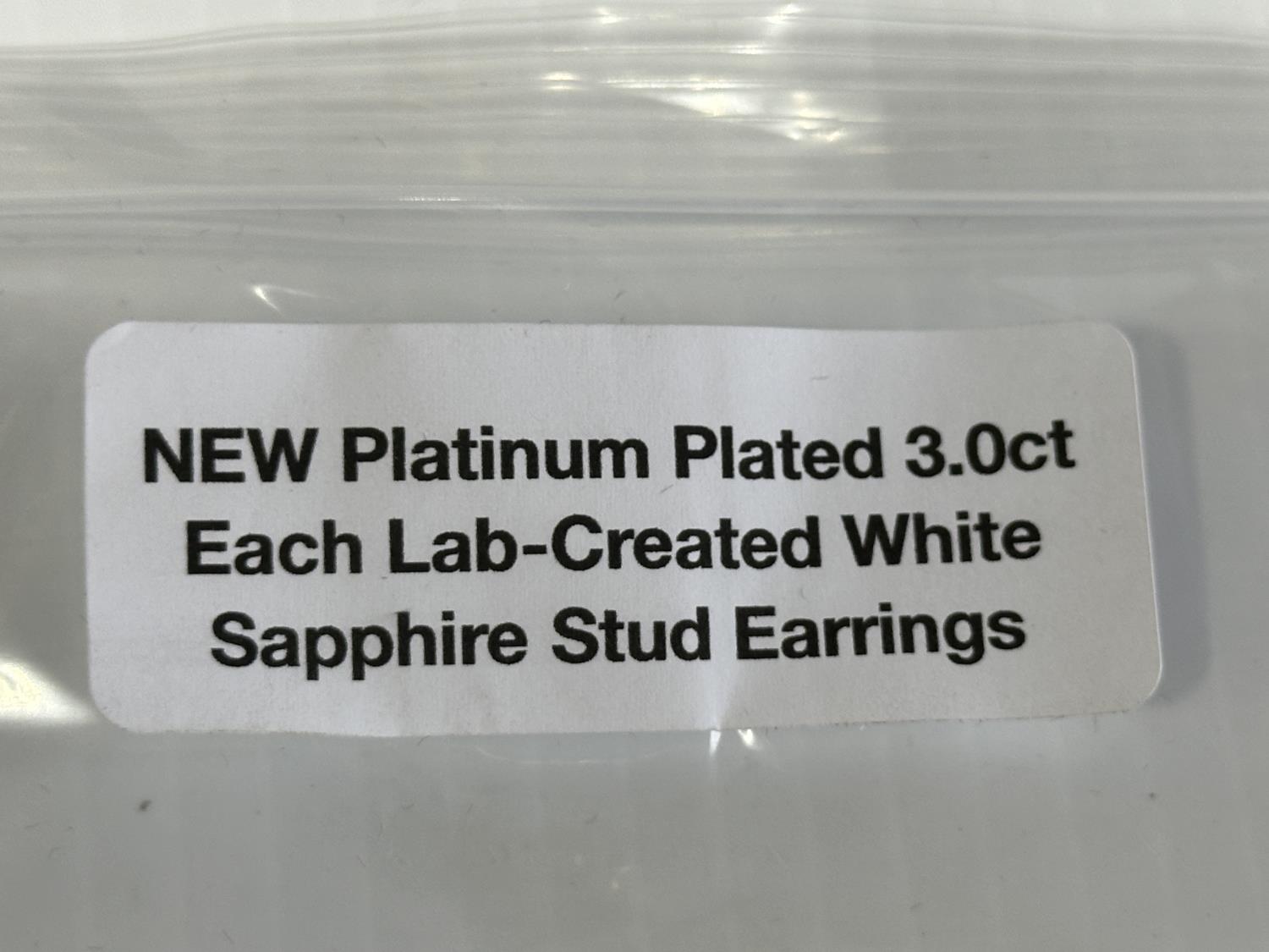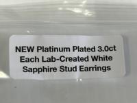 2103 Platinum Plated 3.0Ct. Each Lab-Created White Sapphire Stud Earrings (Unused)