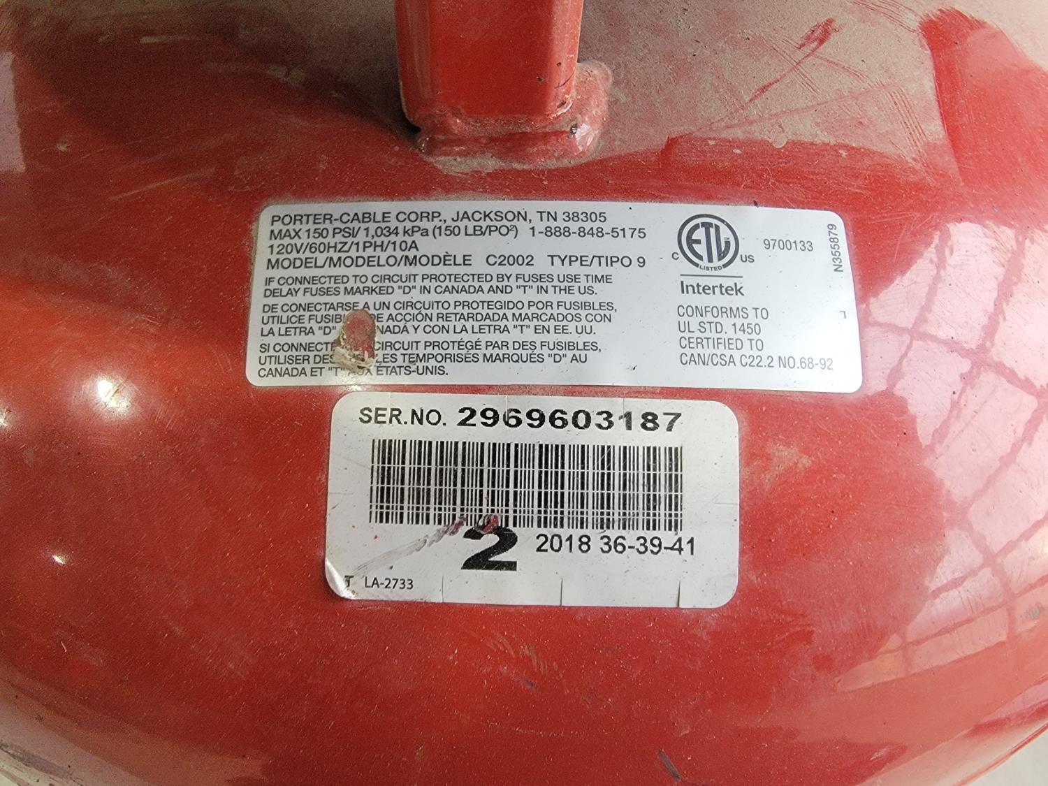 1033 Porter Cable 6 Gallon Air Compressor