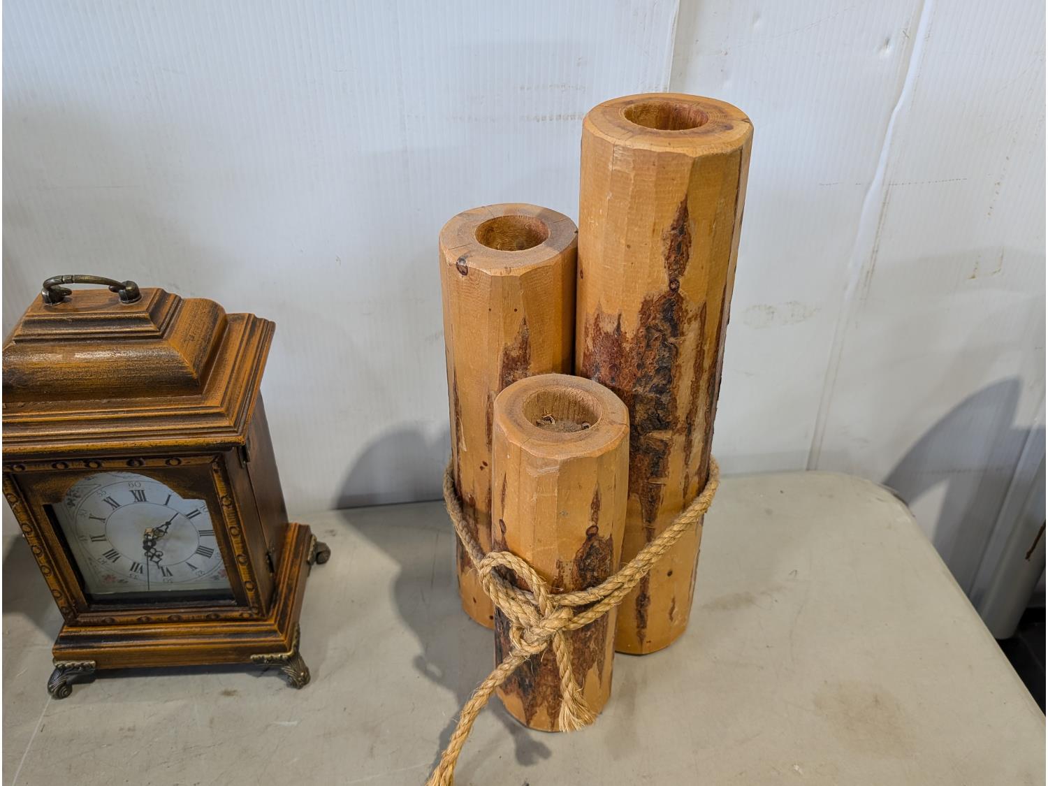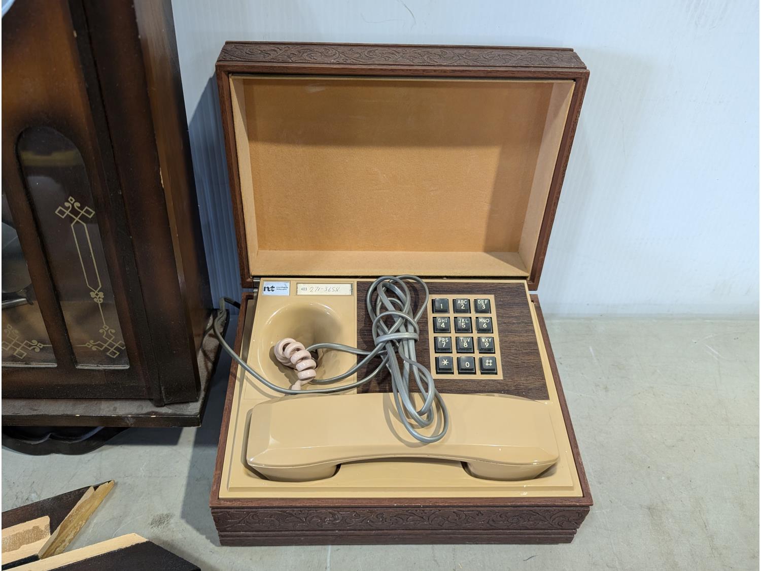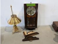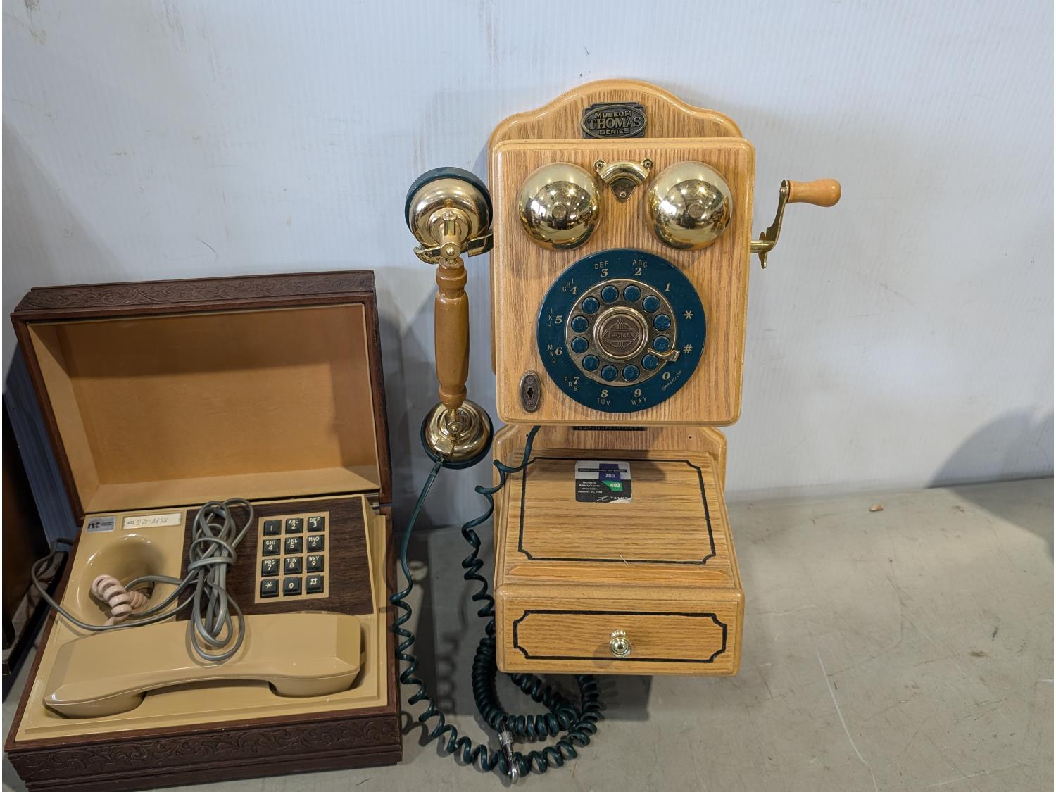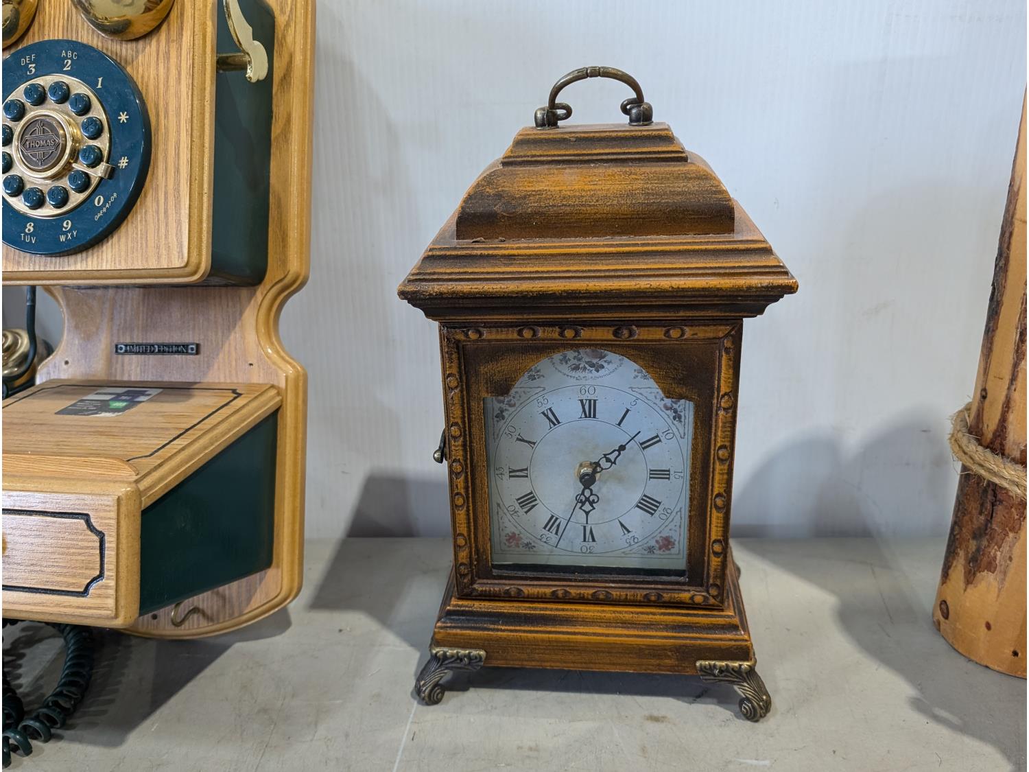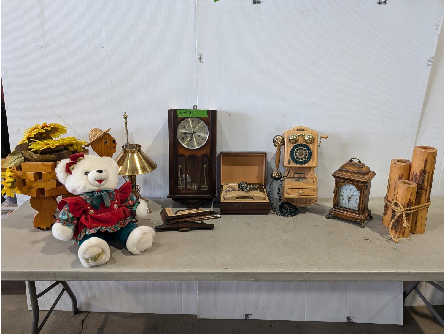 (2) vintage telephones, clocks, lamp, candle holders, planter