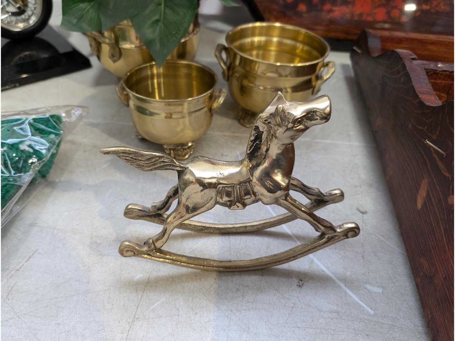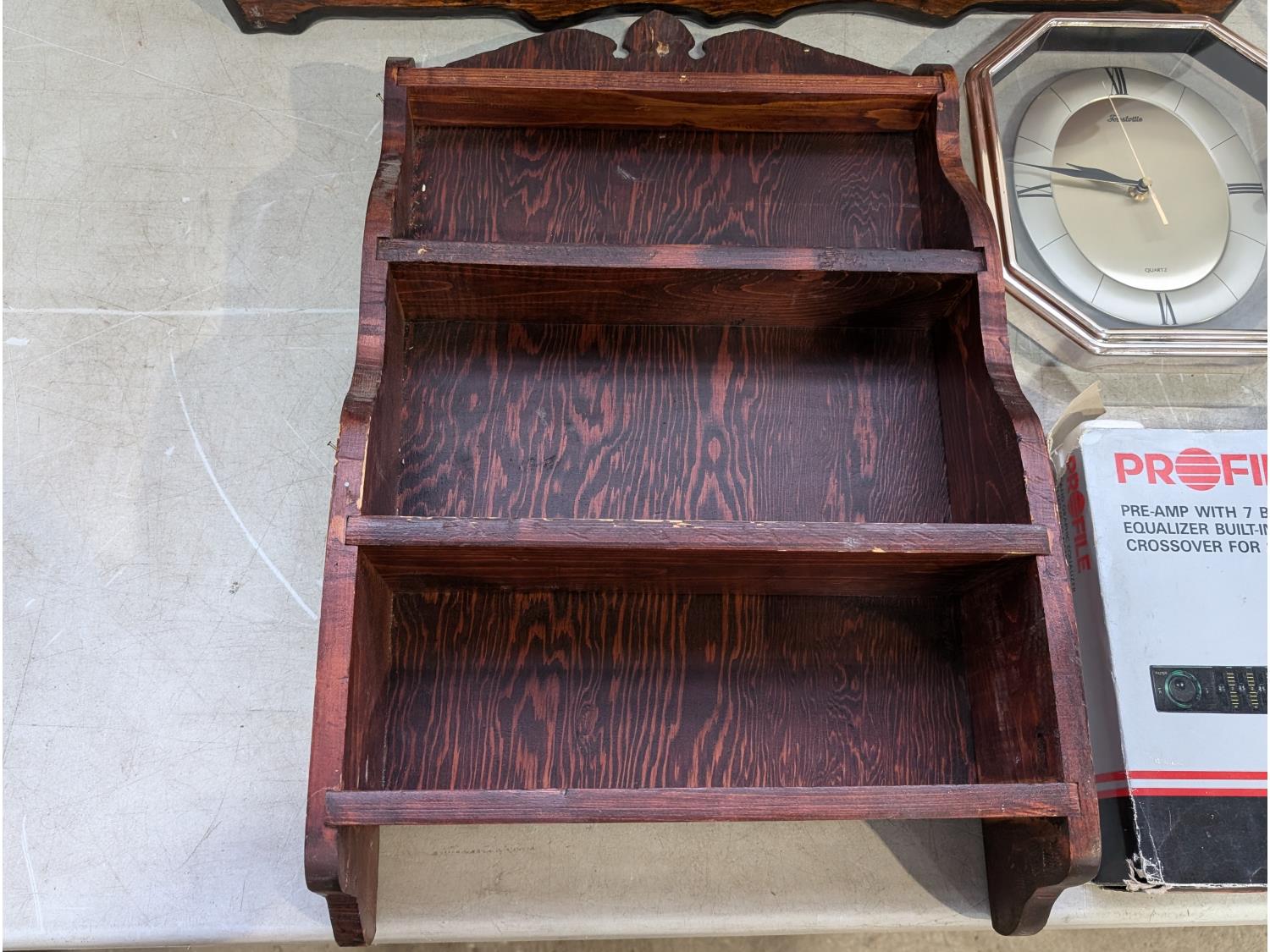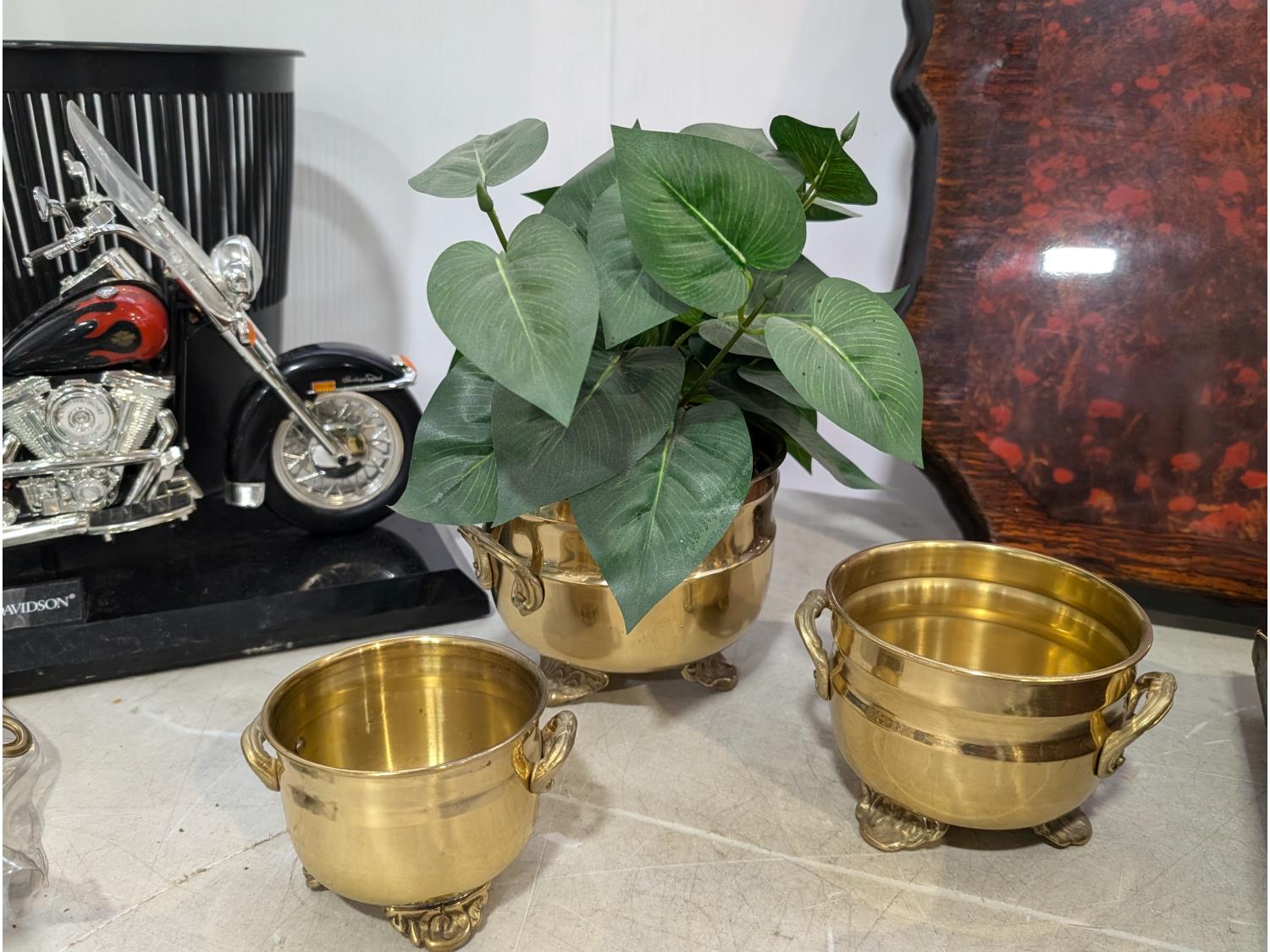 Clocks, shelves, brass ornaments, Harley-Davidson phone