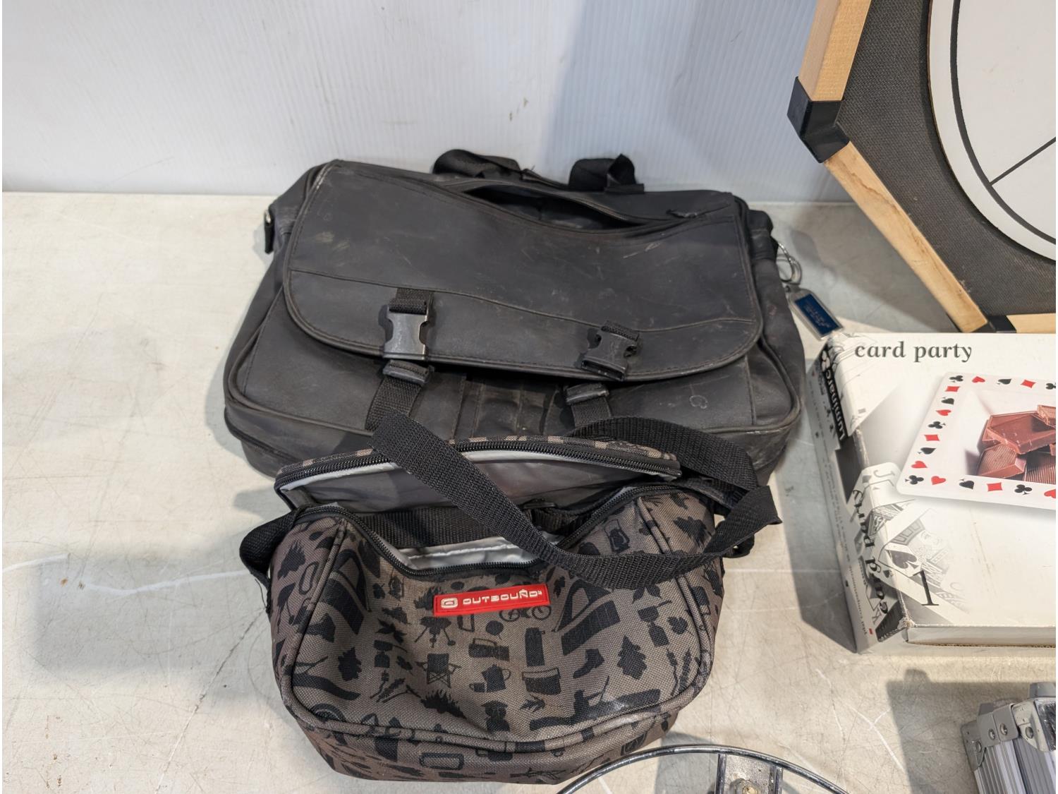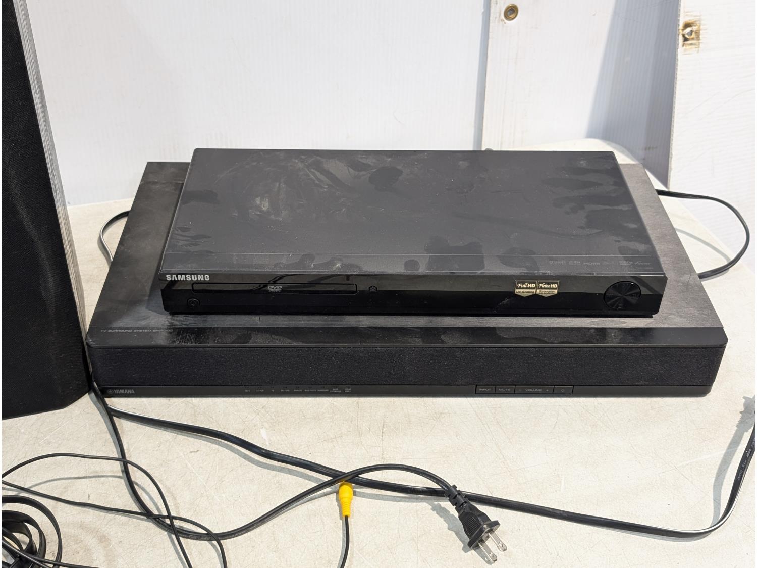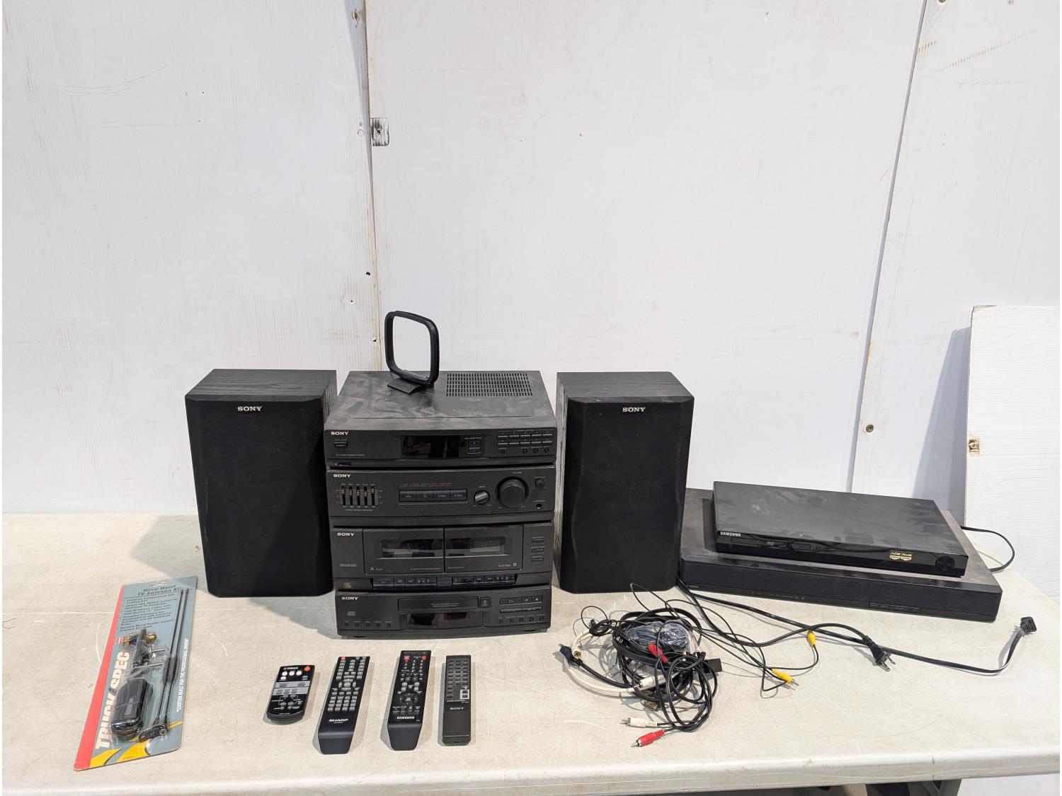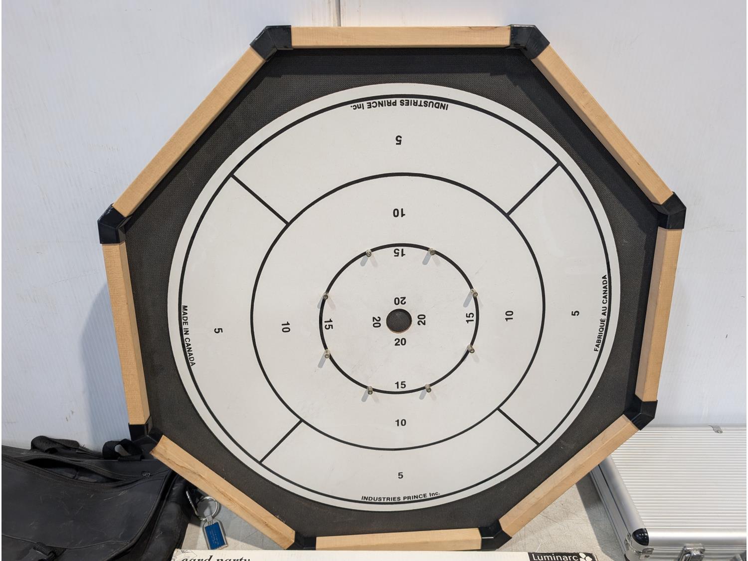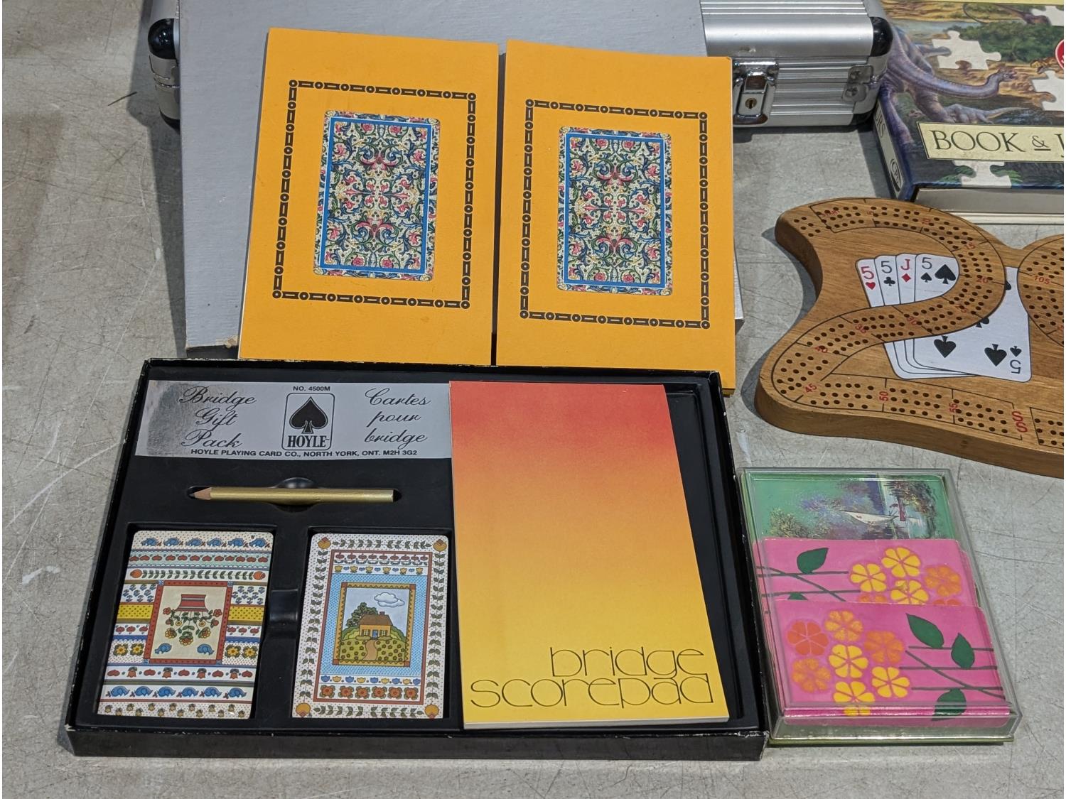 Sony CD player, Samsung DVD player, crokinole board, cribbage boards, poker chips, cards