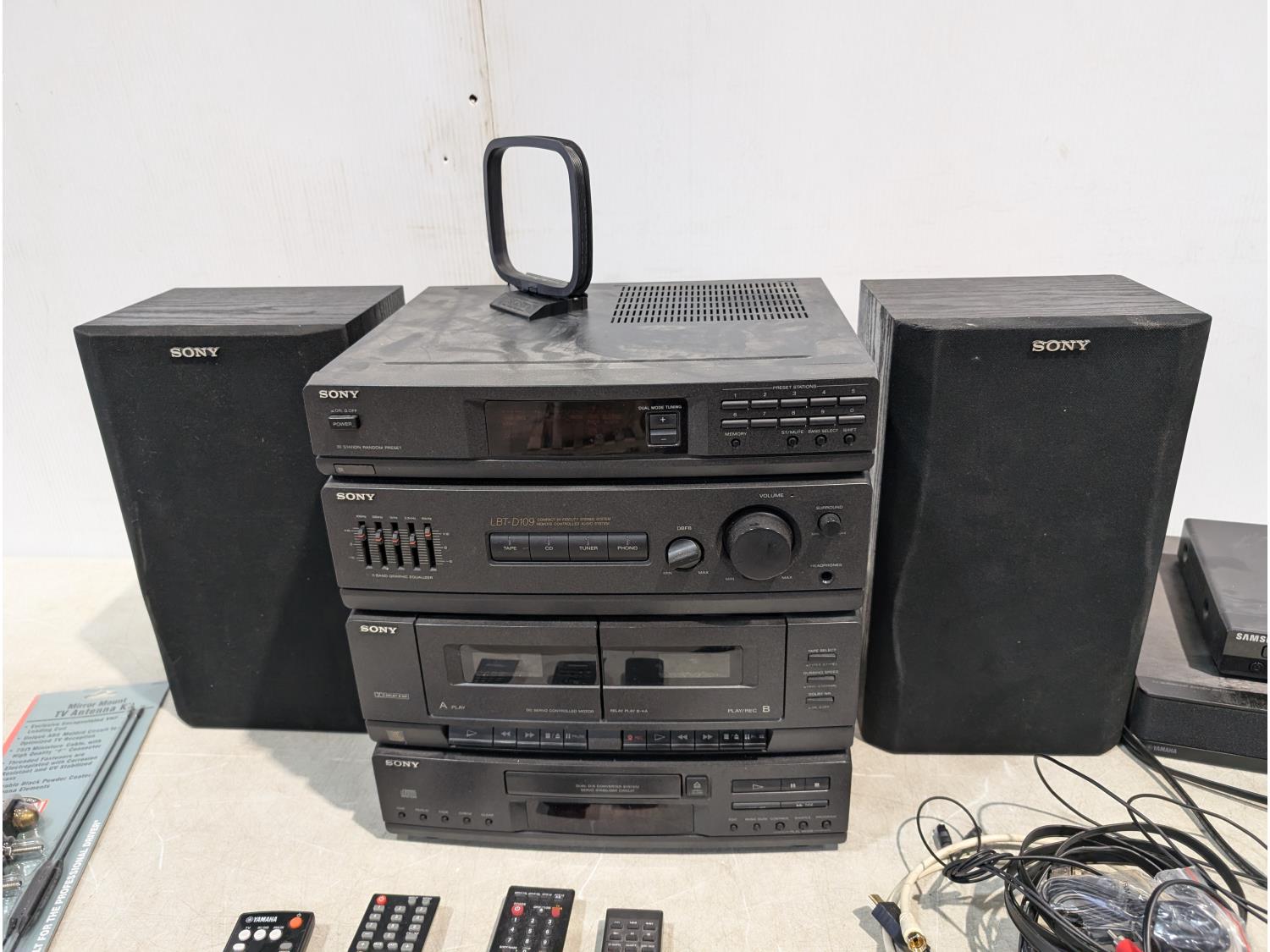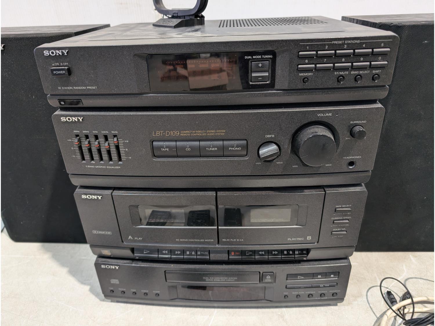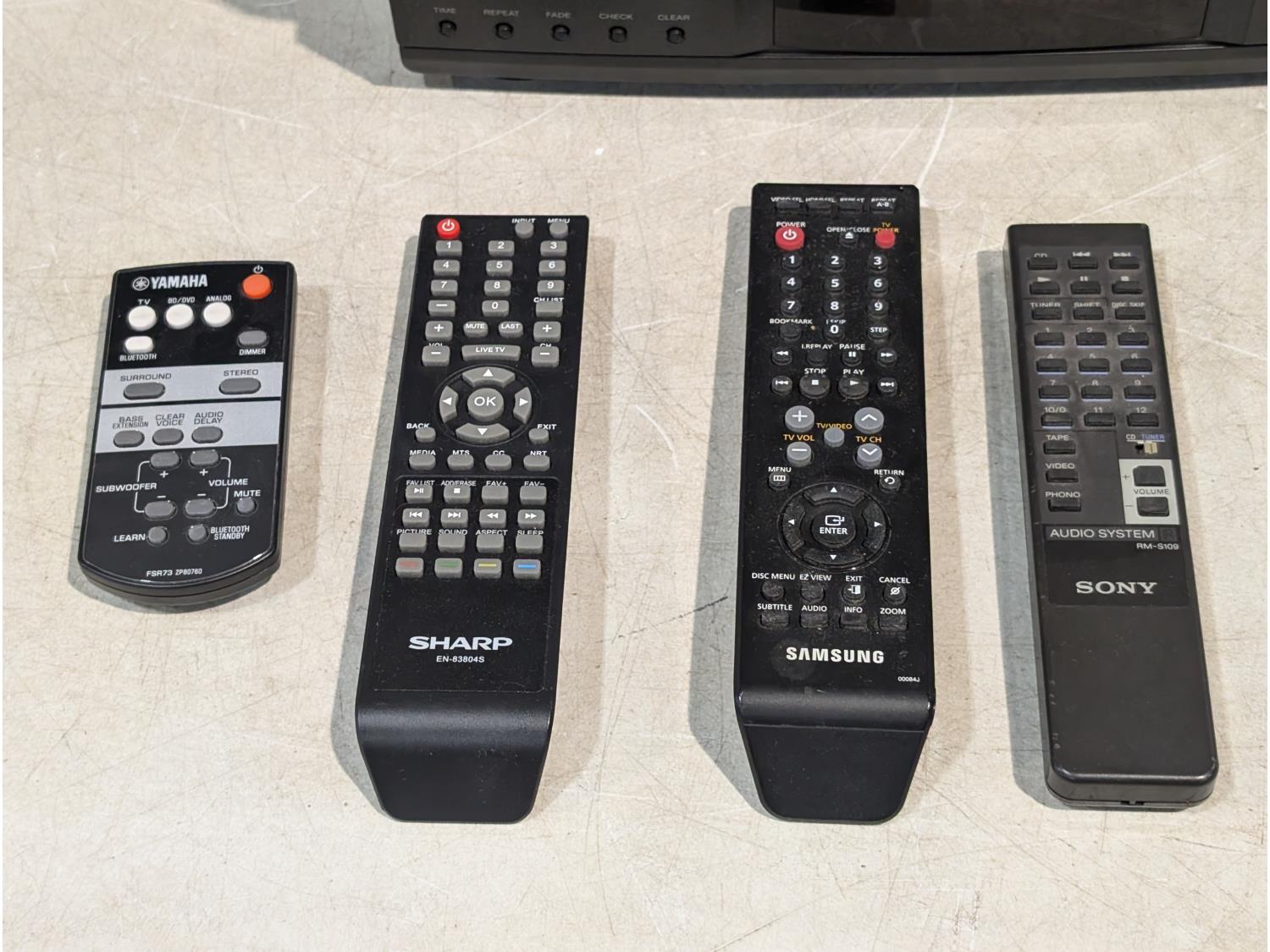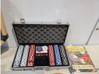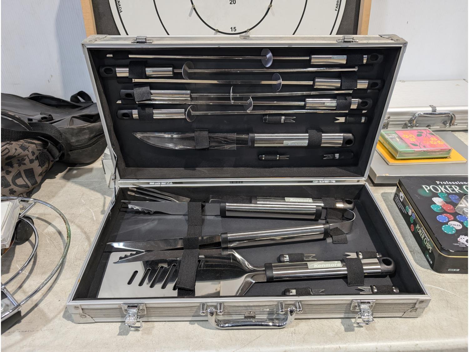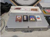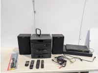 Sony CD player, Samsung DVD player, crokinole board, cribbage boards, poker chips, cards