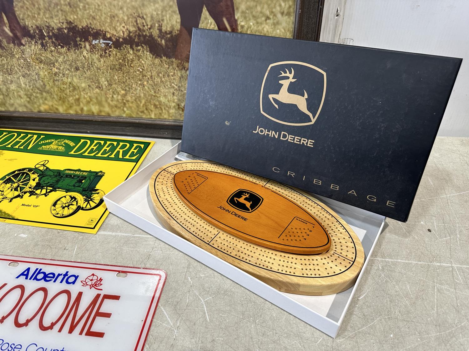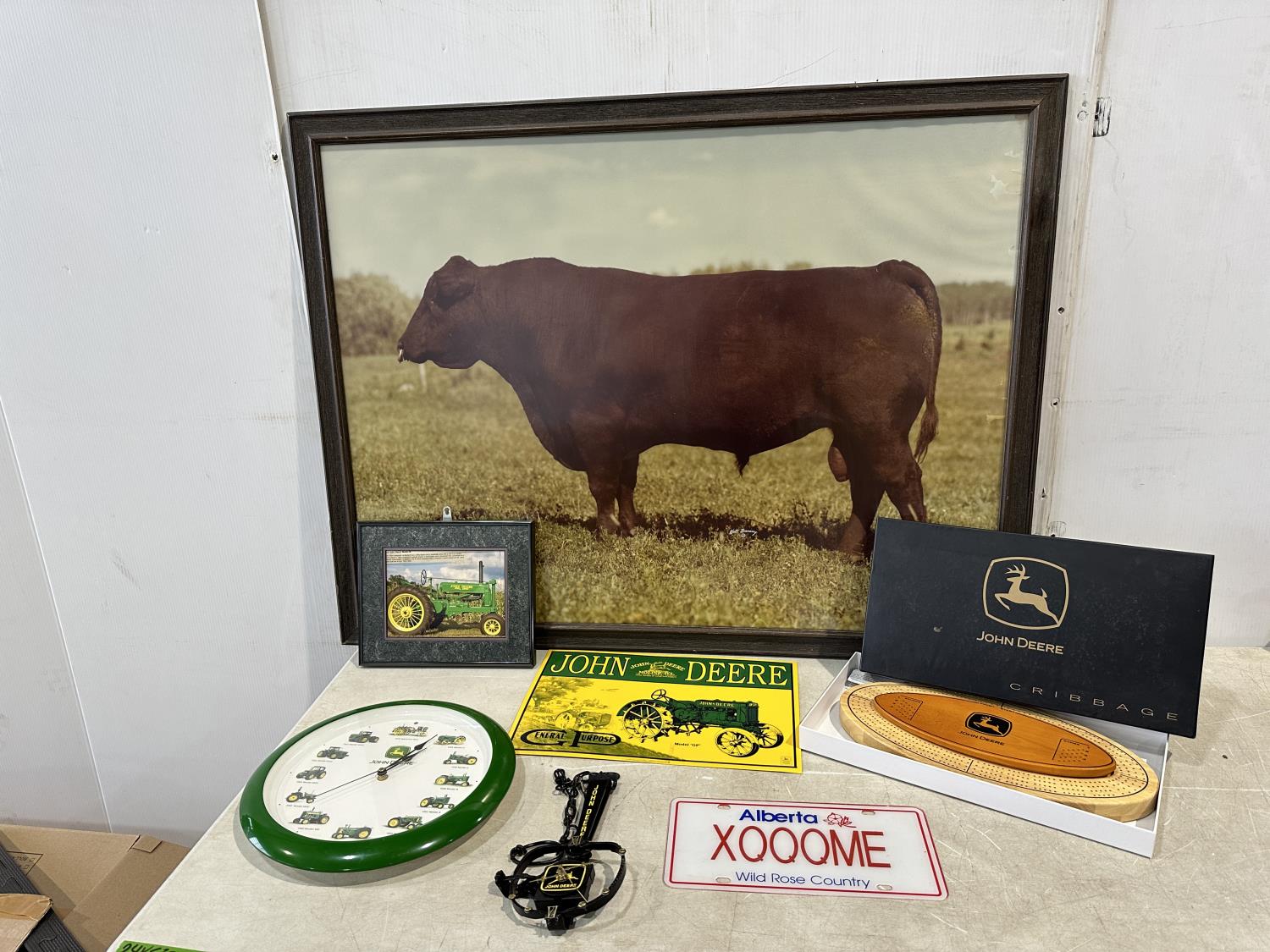 1369 Qty of John Deere Items and Large Bull Print