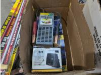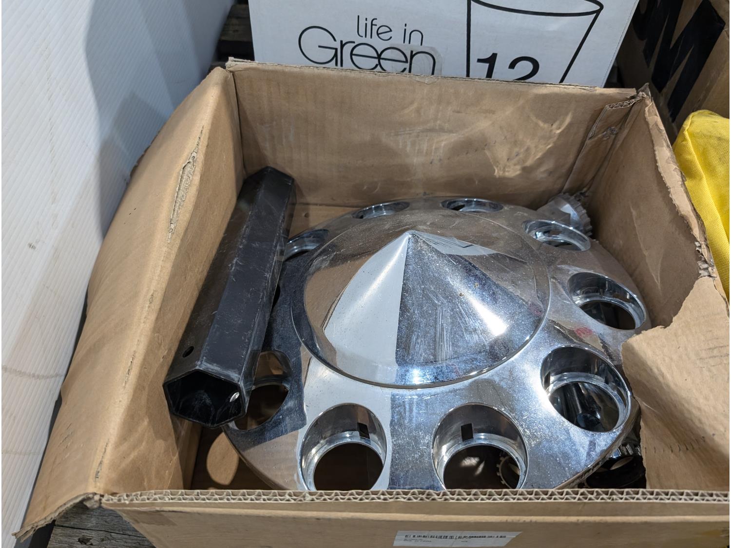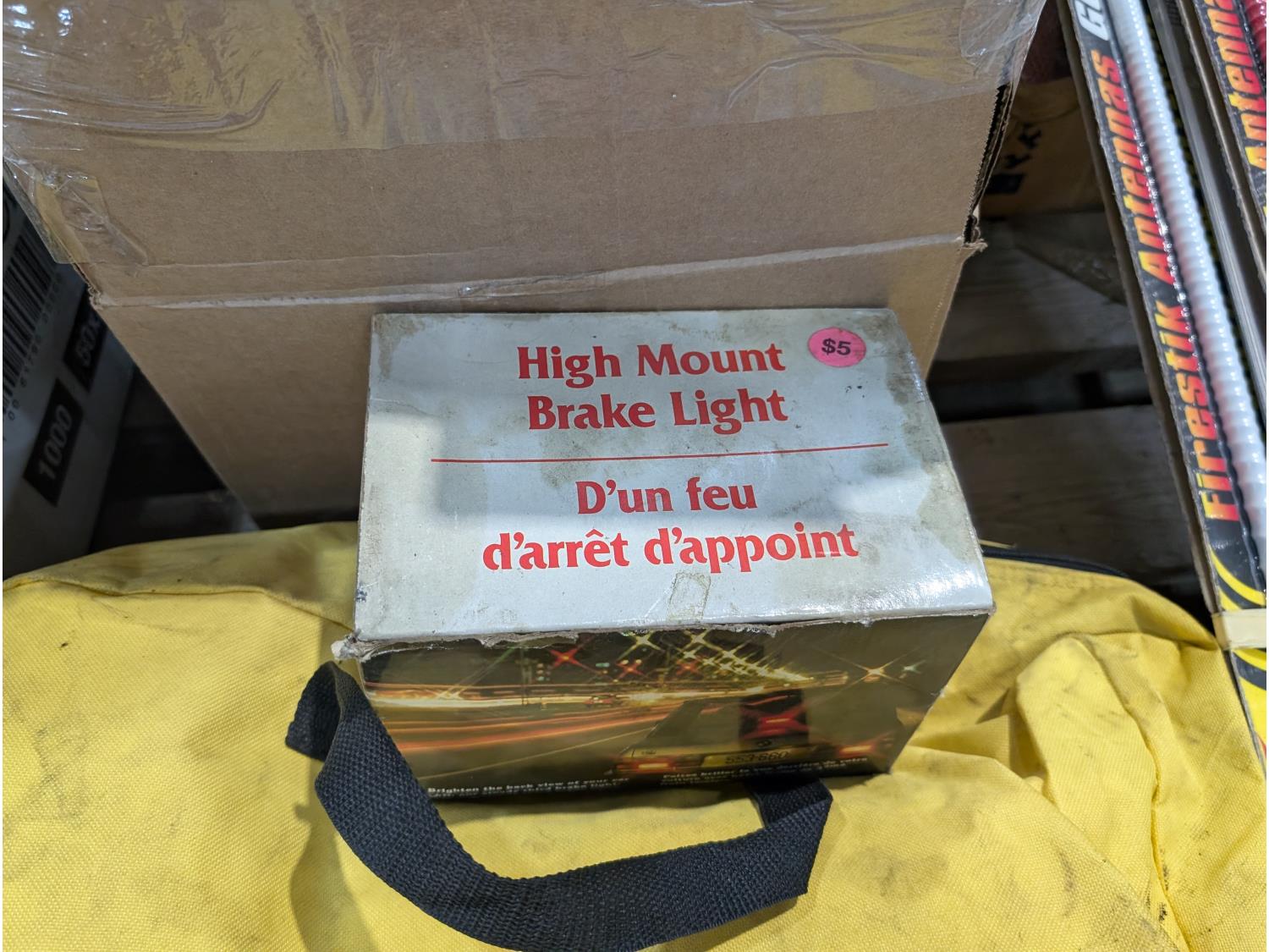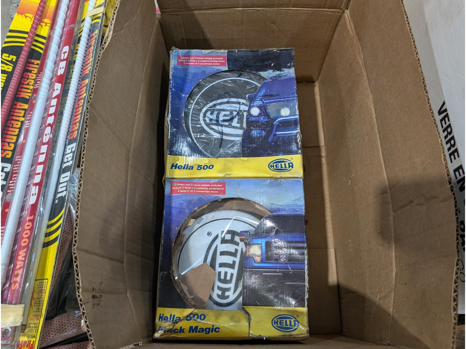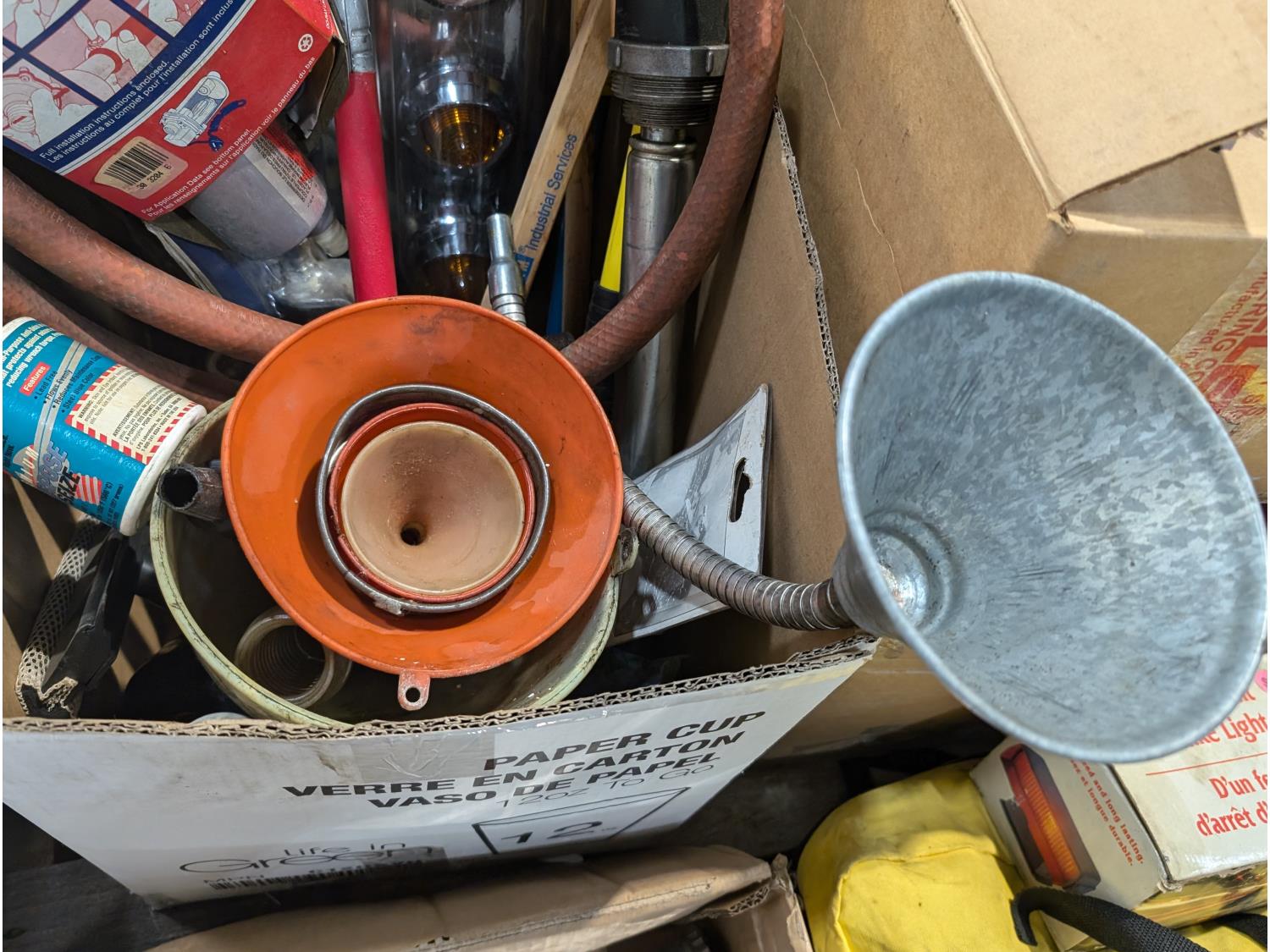 Spill kit, high mount brake light, CB antennae, squeegees, warning triangle, battery tester, headlamps, funnels, air cleaner light assembly