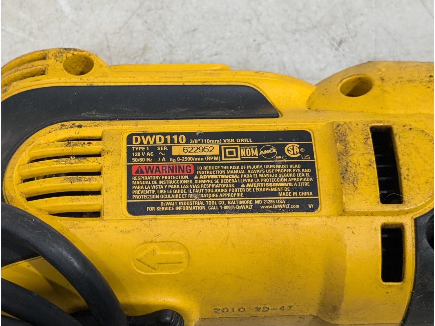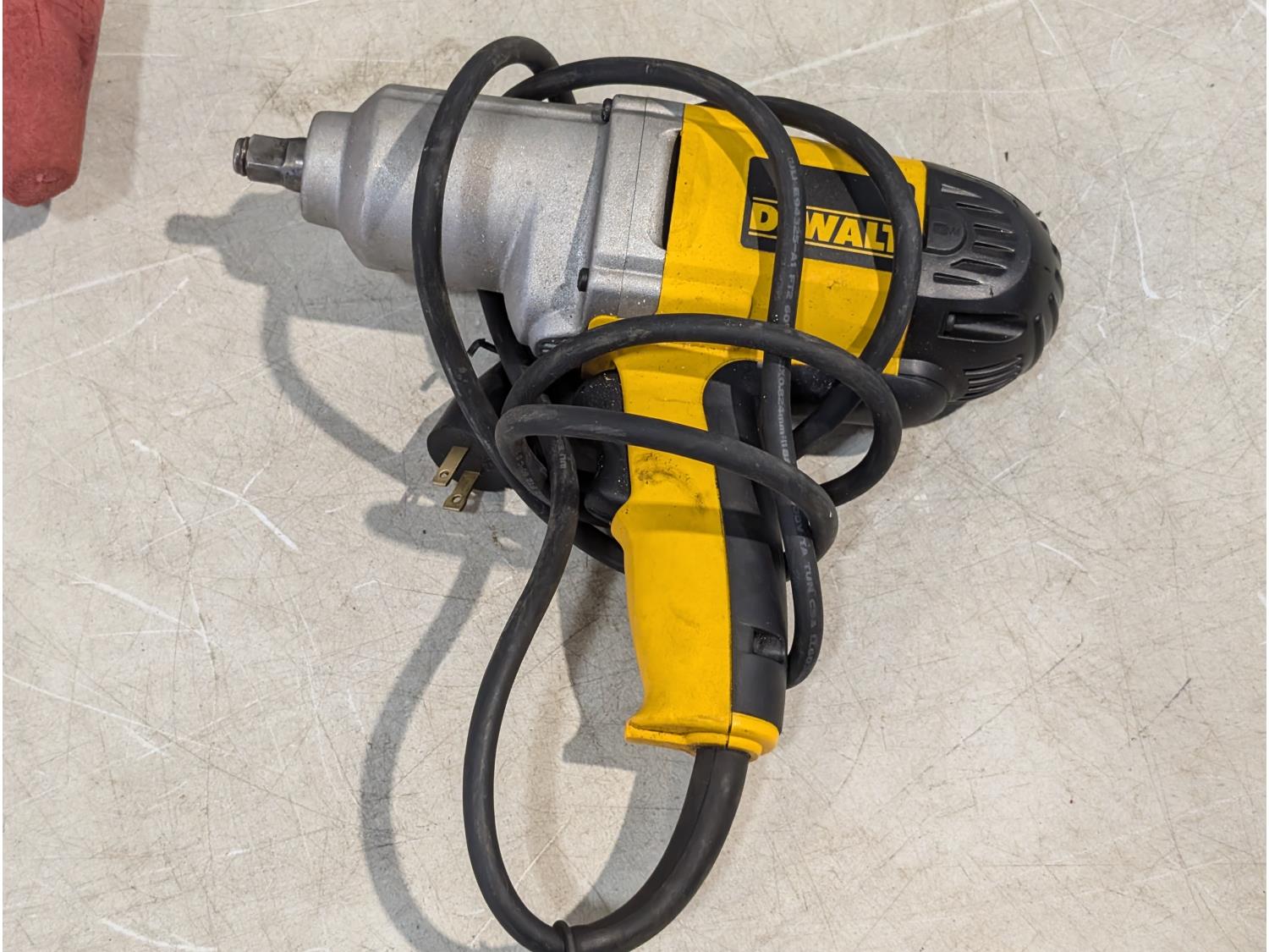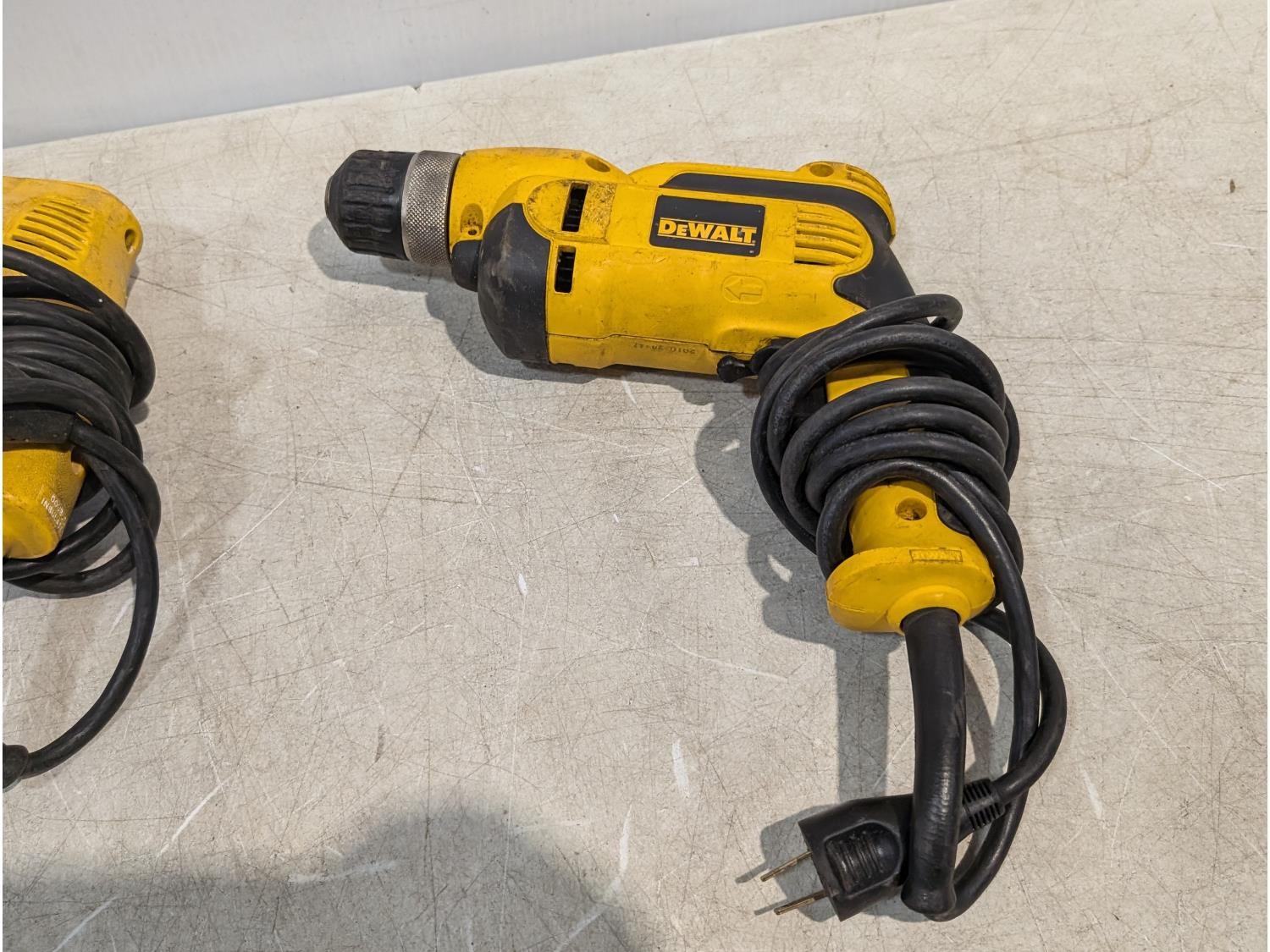DeWalt 3/8 inch drill, 1/2 inch drill, 1/2 inch impact wrench, 14 gauge swivel head shear, Makita 10 mm angle drill