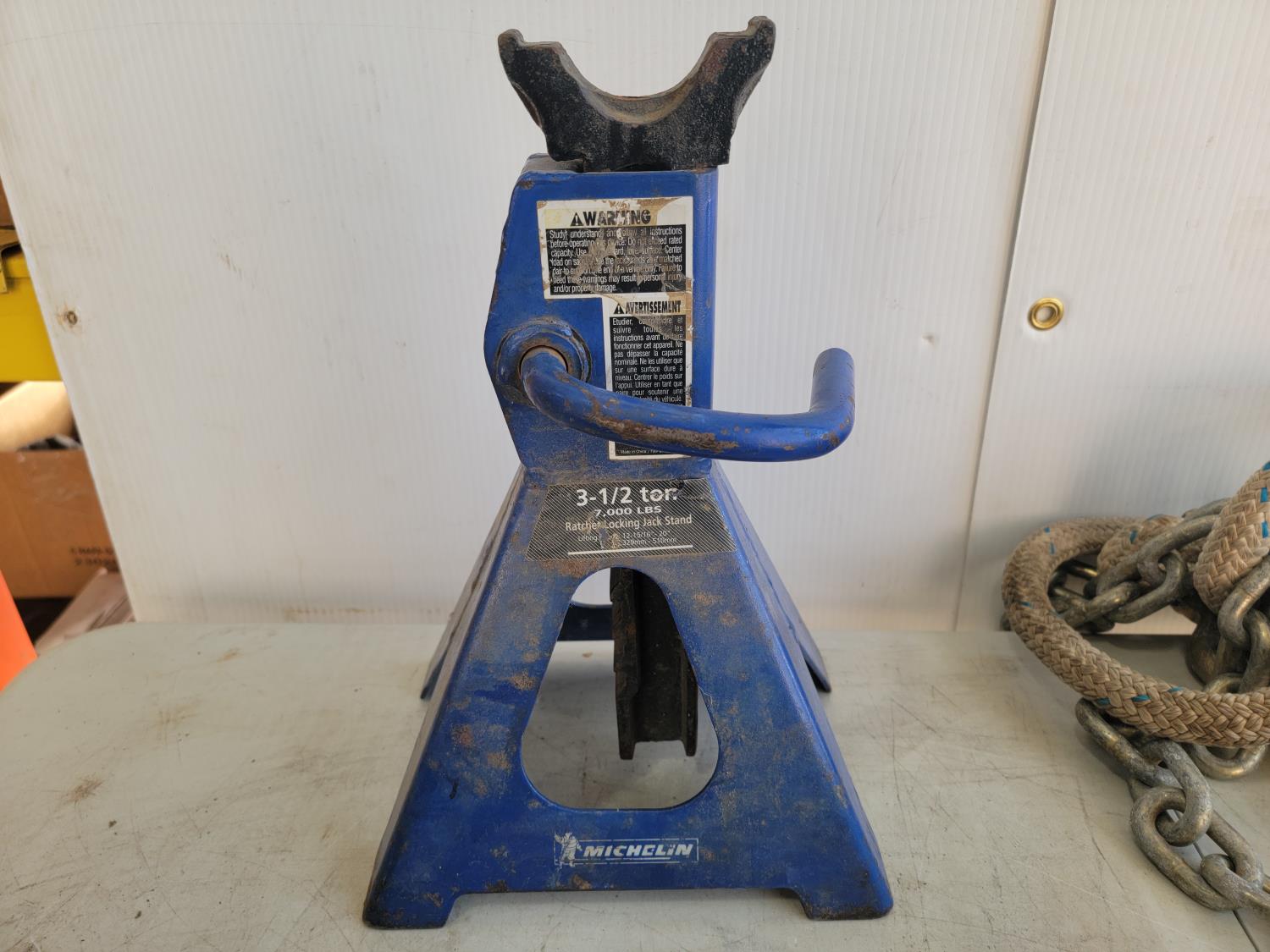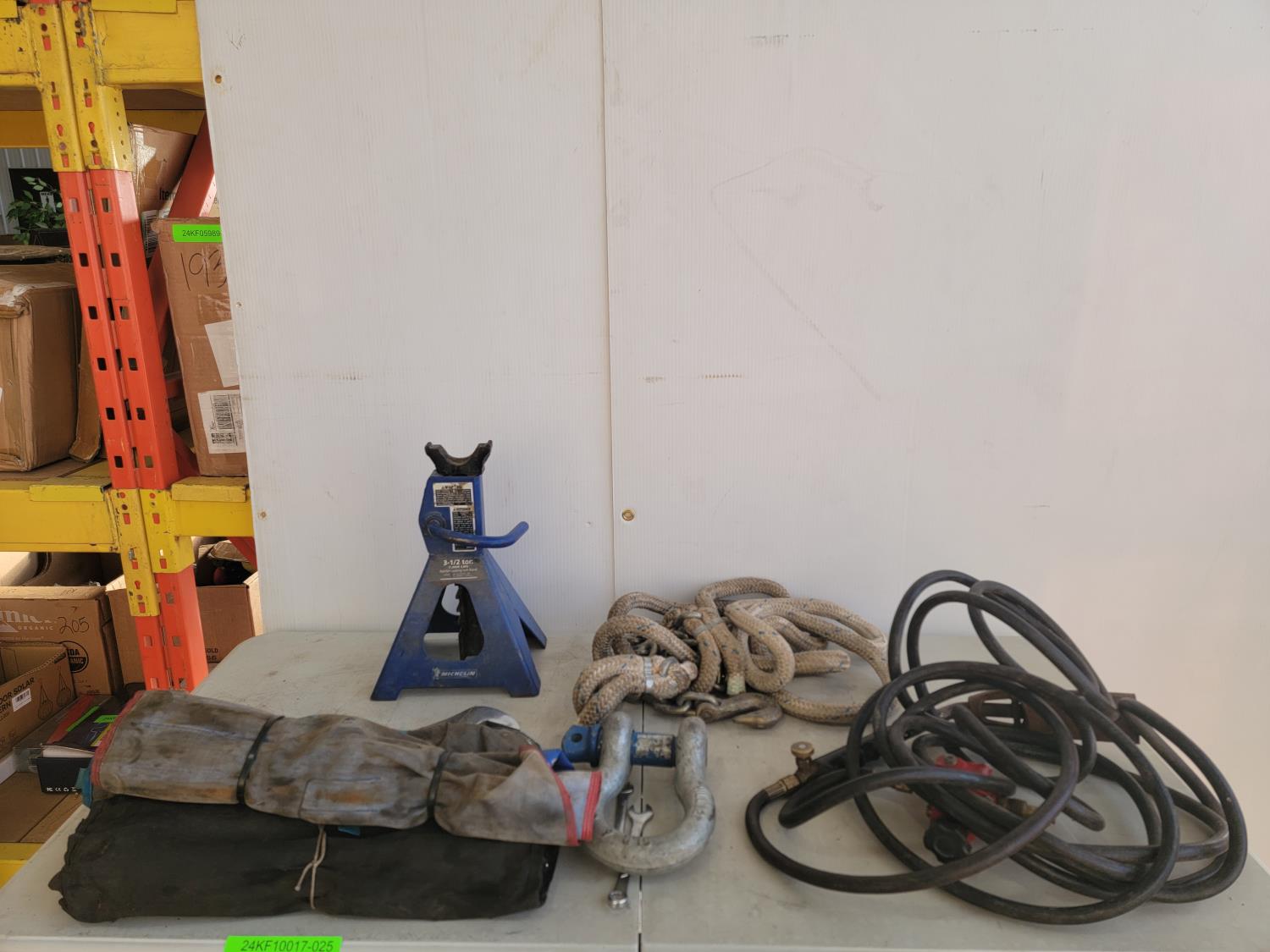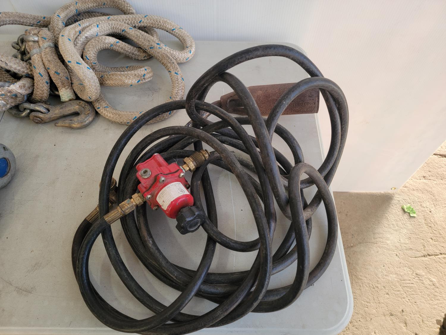 3-1/2 ton jack stand, propane regulator with hose, tow rope, 18 inch adjustable wrench, wrenches