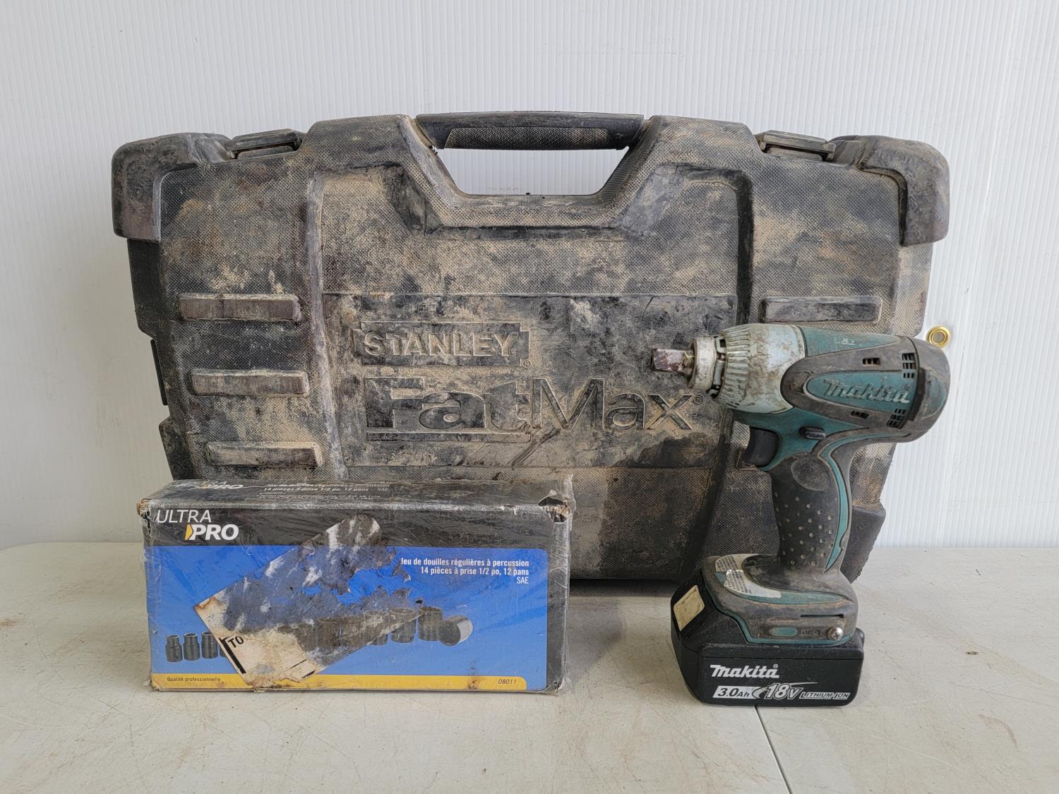 1062 Stanley FatMax Socket Set, Makita 18V Impact Wrench and 1/2 Inch Impact Socket Set