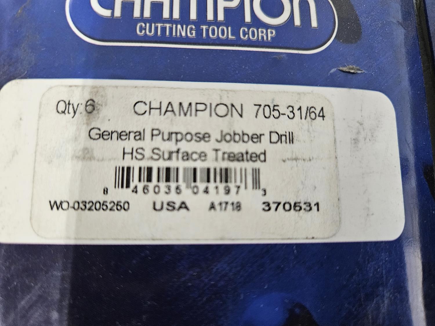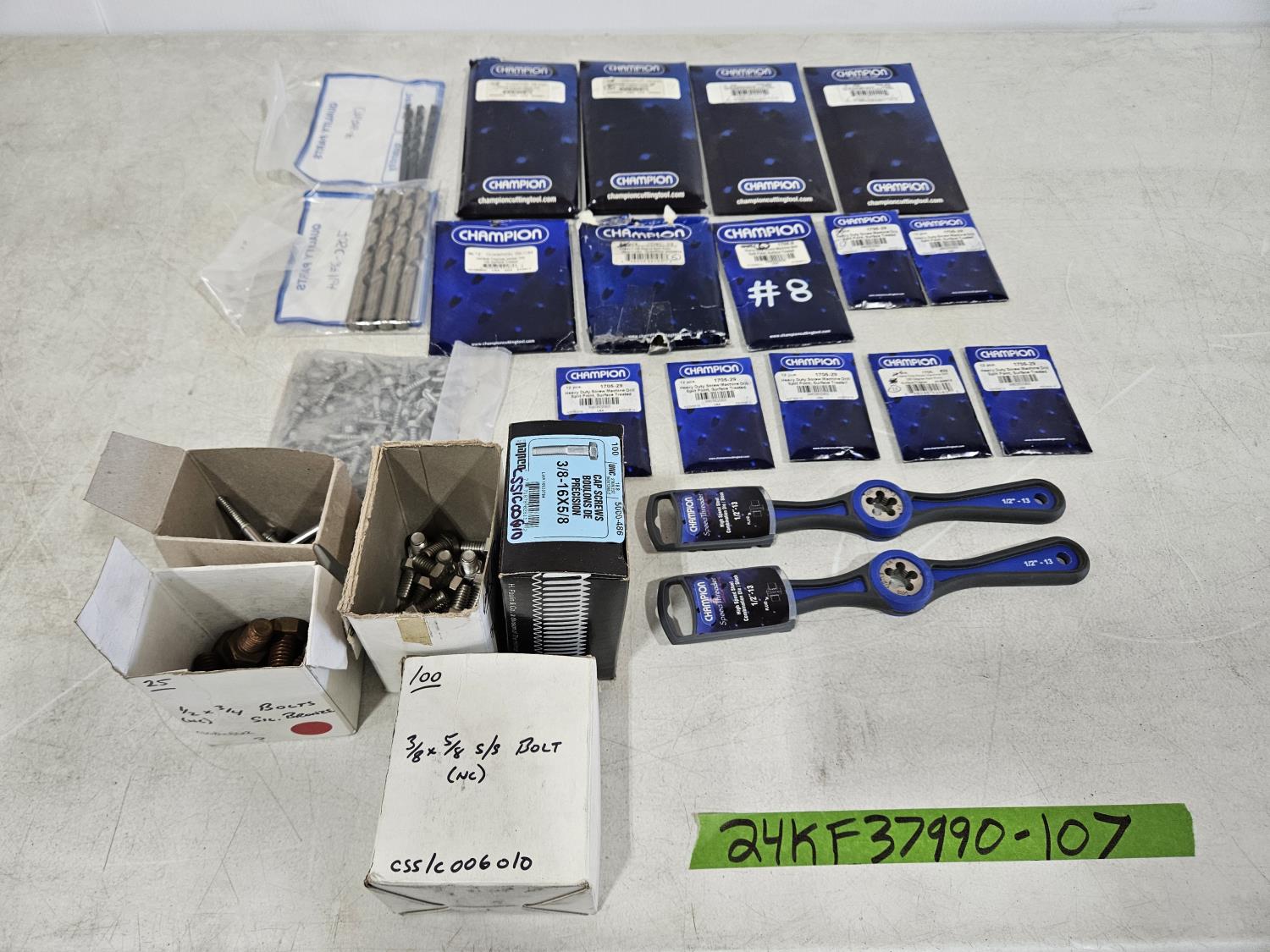 1505 Various Sizes of Champion Drill Bits, 1/2 Inch Die Assorted Bolts