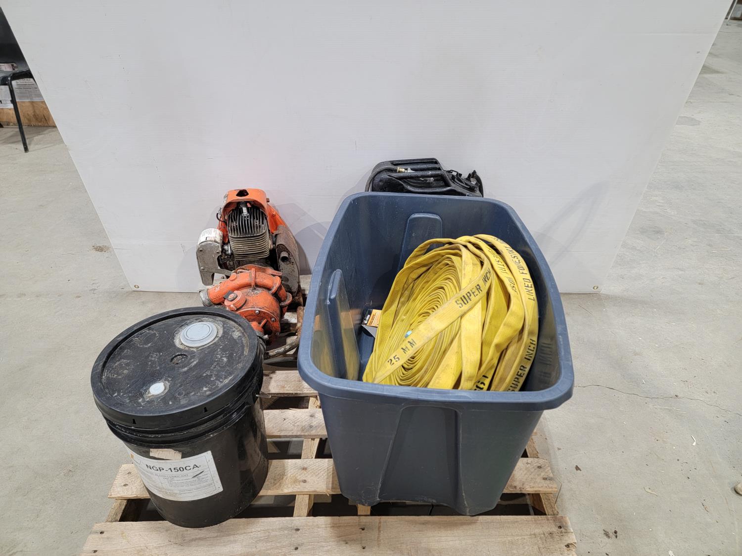 1358 Wajax High Presure Fire Pump, (3) Forestry Hoses, Jerry Can and 5 Gallon Pail of Oil