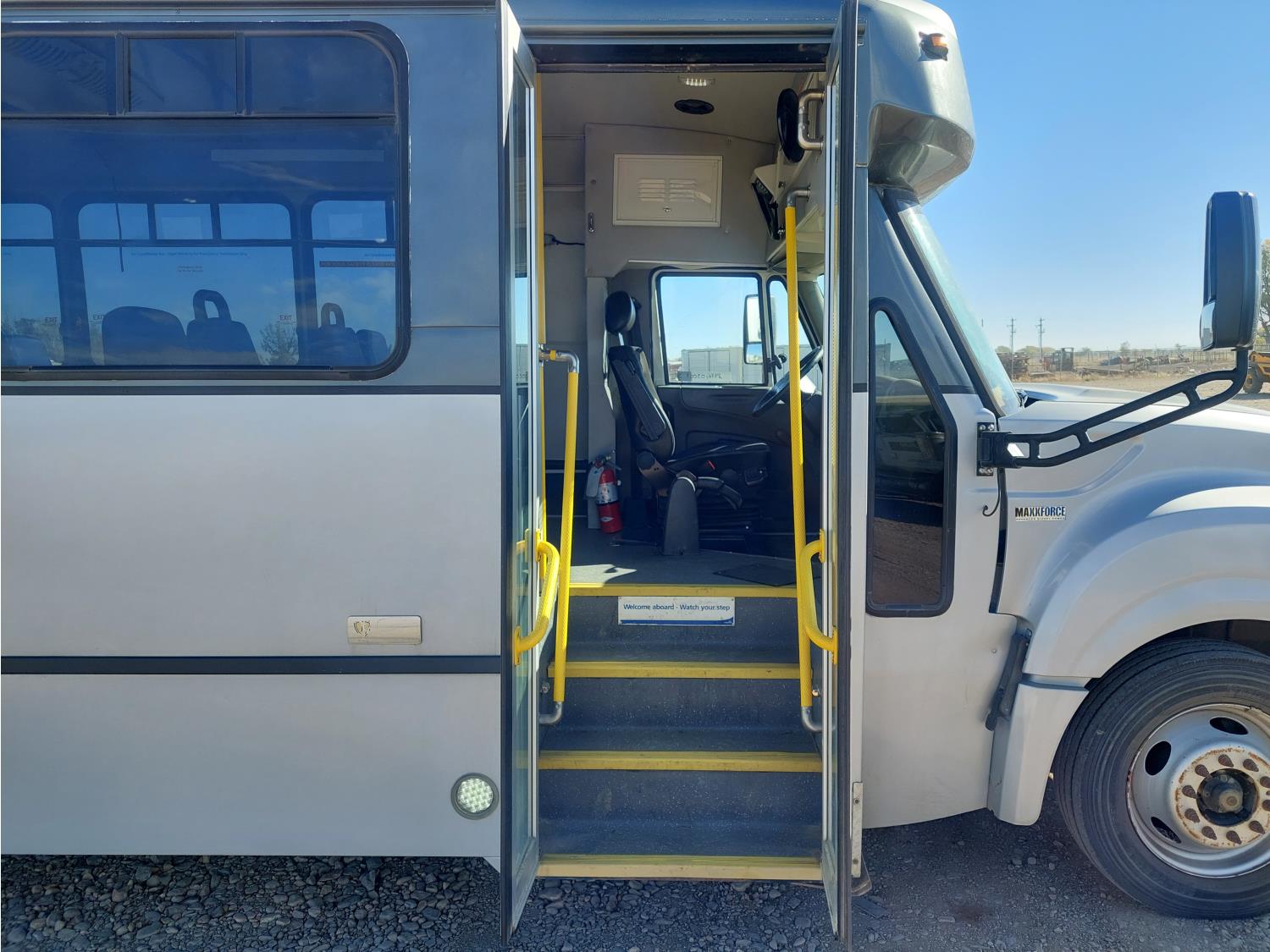 6.4 L, V8, automatic transmission, A/C, heated mirrors, air ride drivers seat, 22 seats, rear wheel chair lift, 196 inch WB, 225/70R19.5 tires