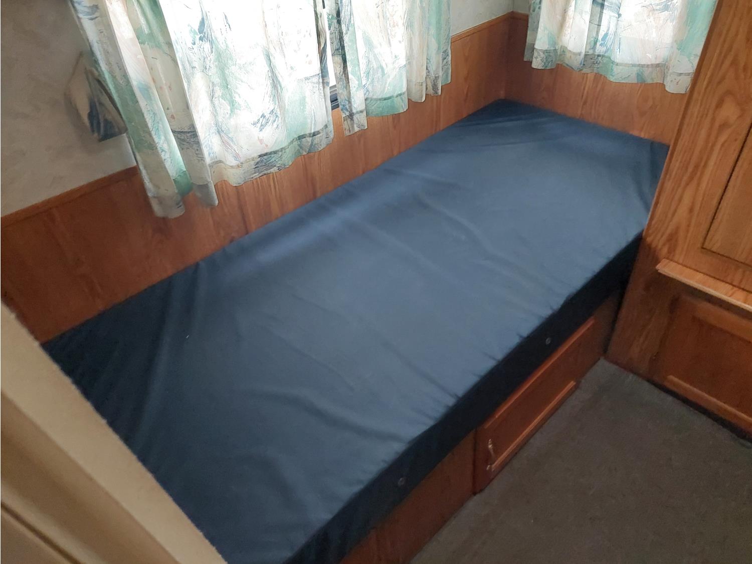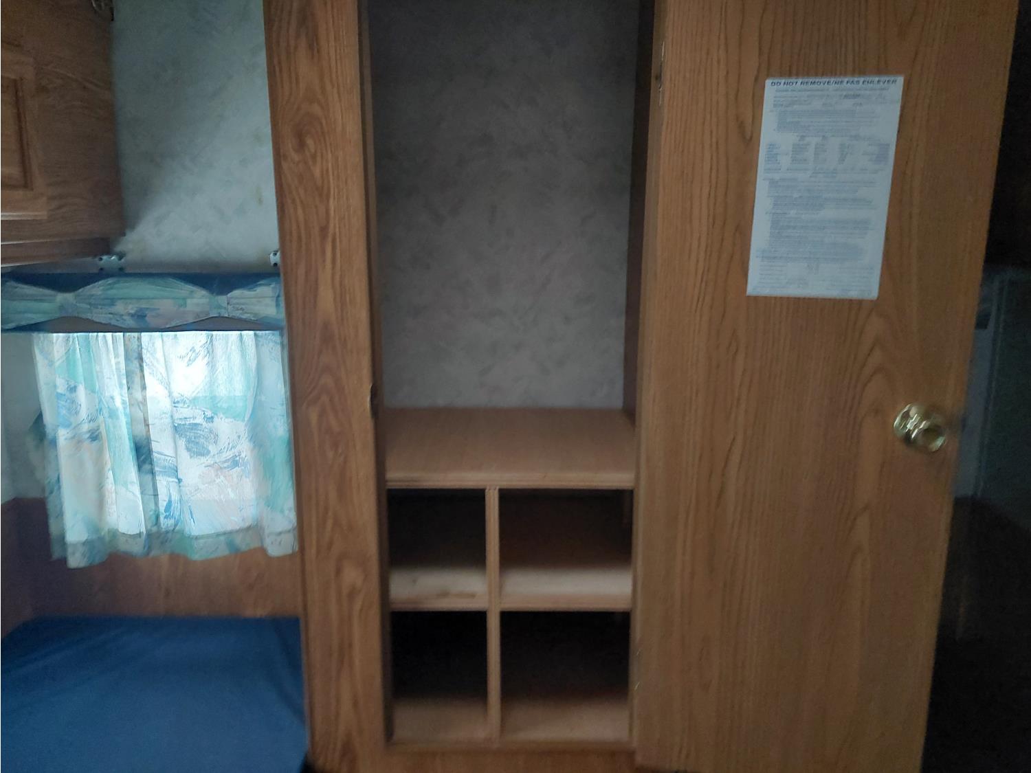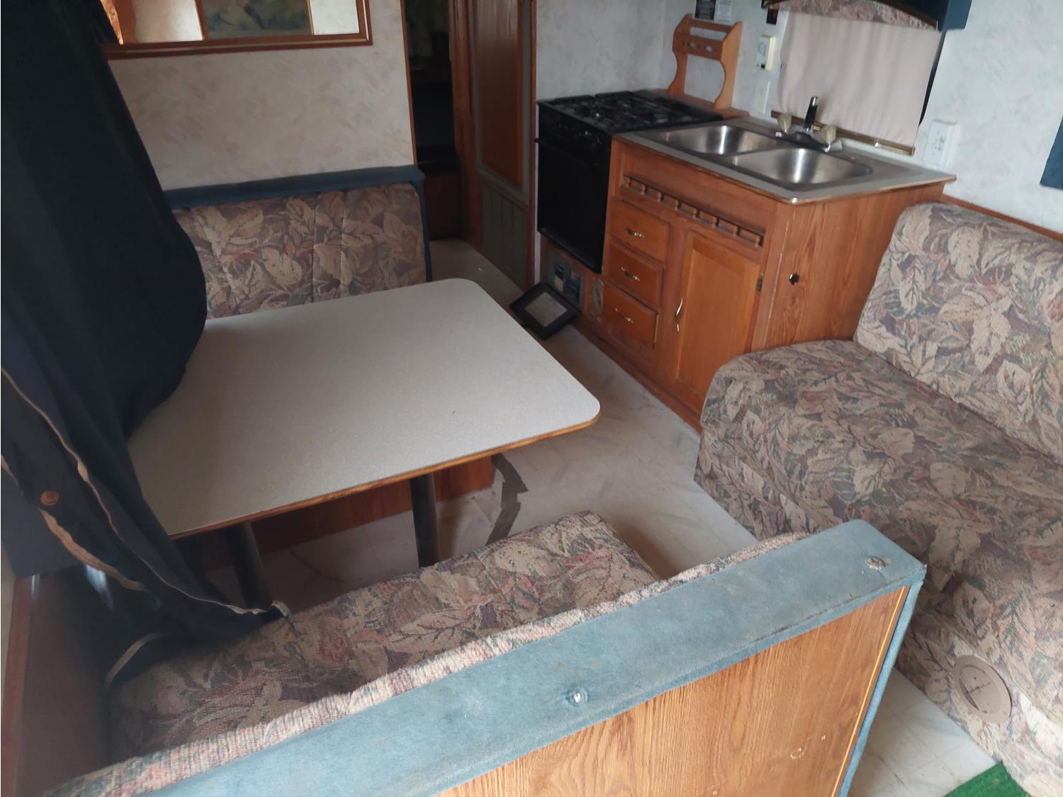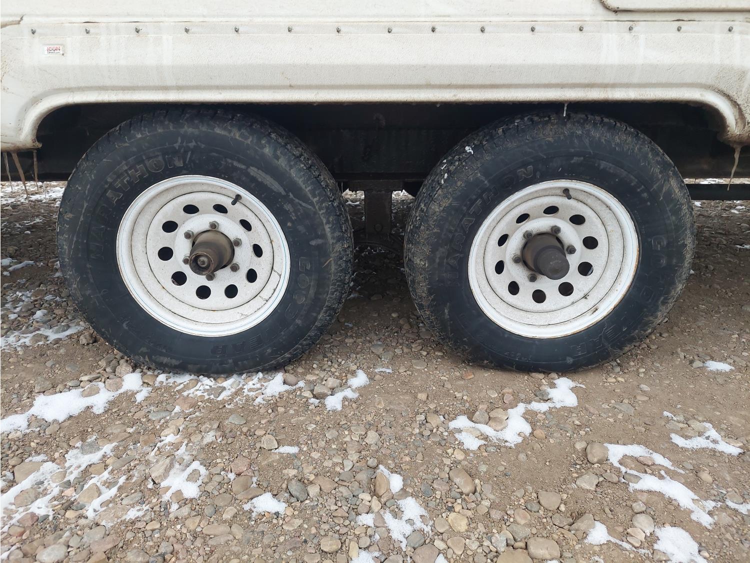 Sleeps 6, stove, fridge, microwave, full bath, master bedroom, bunk beds, A/C, manual awning, spring suspension, electric brakes, 225/75R15 tires