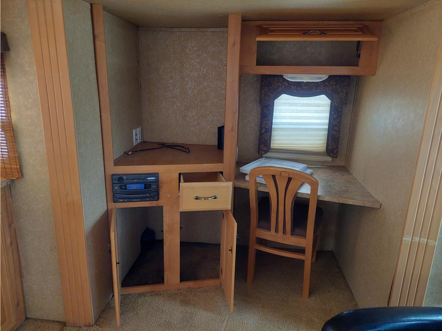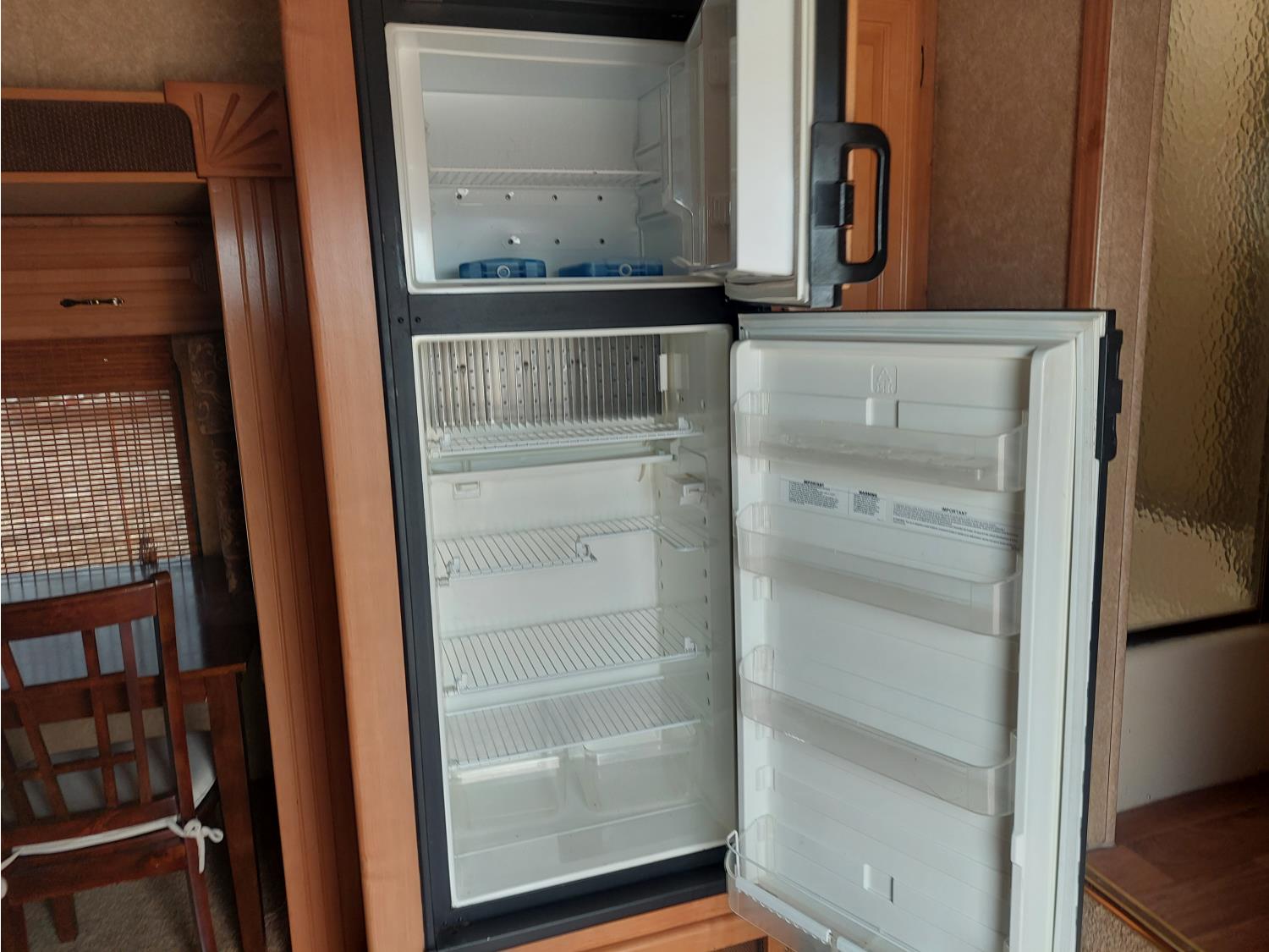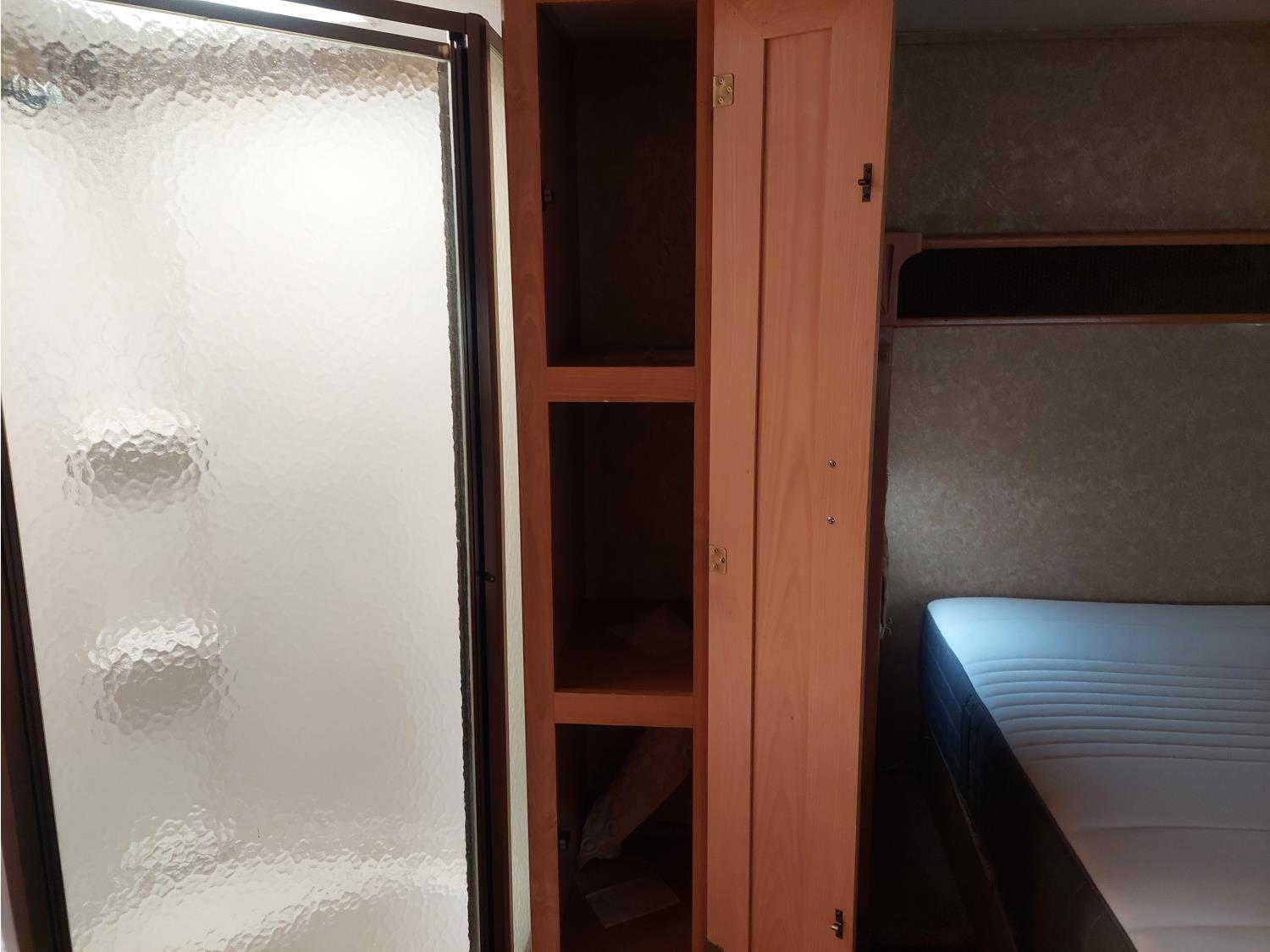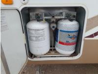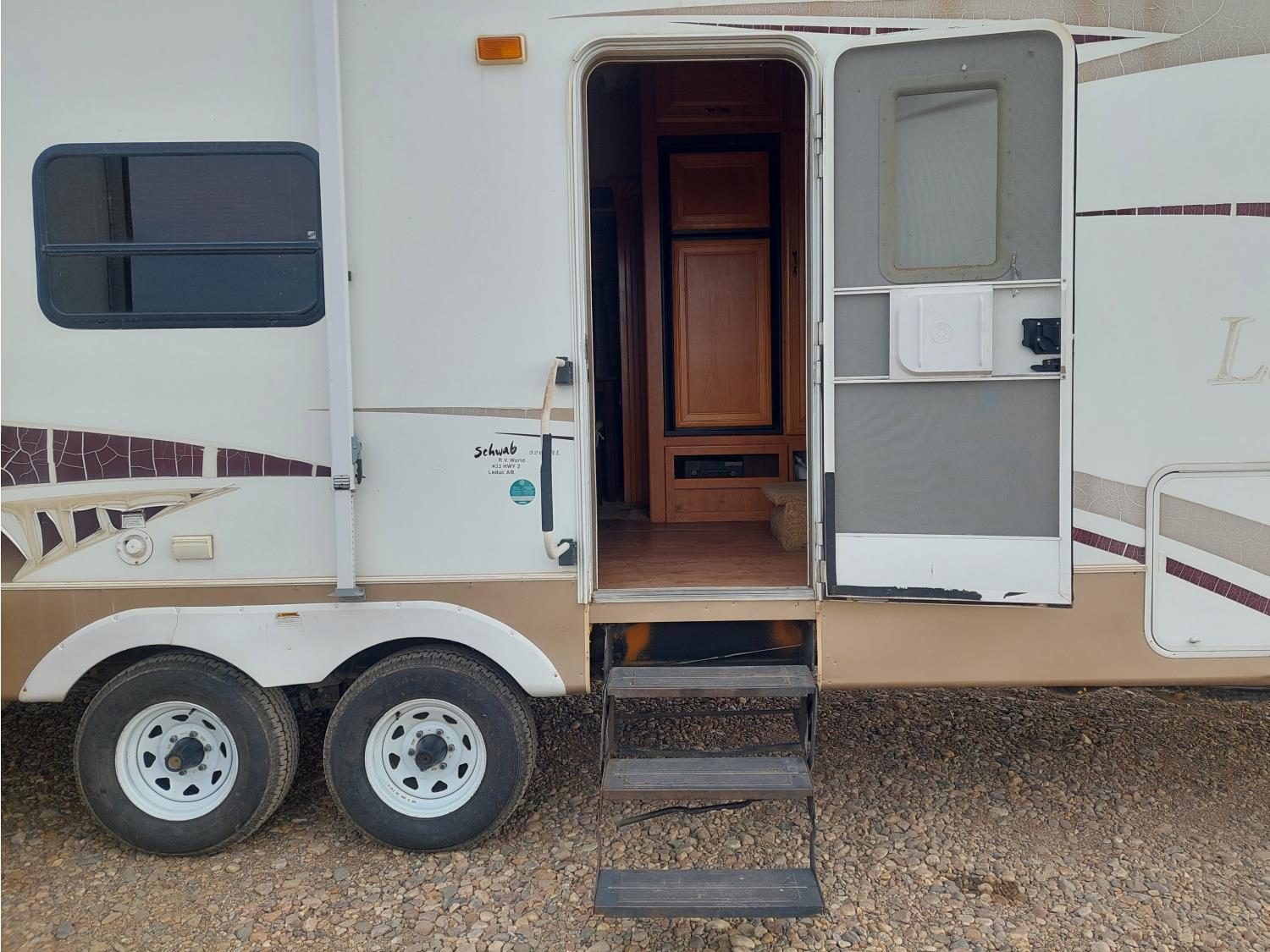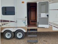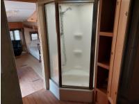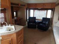 Sleeps 4, stove, fridge, microwave, master bedroom, A/C, outdoor shower, 3 slides, manual awning, roof mounted satellite receiver, spring suspension, electric brakes, 225/75R15 tires