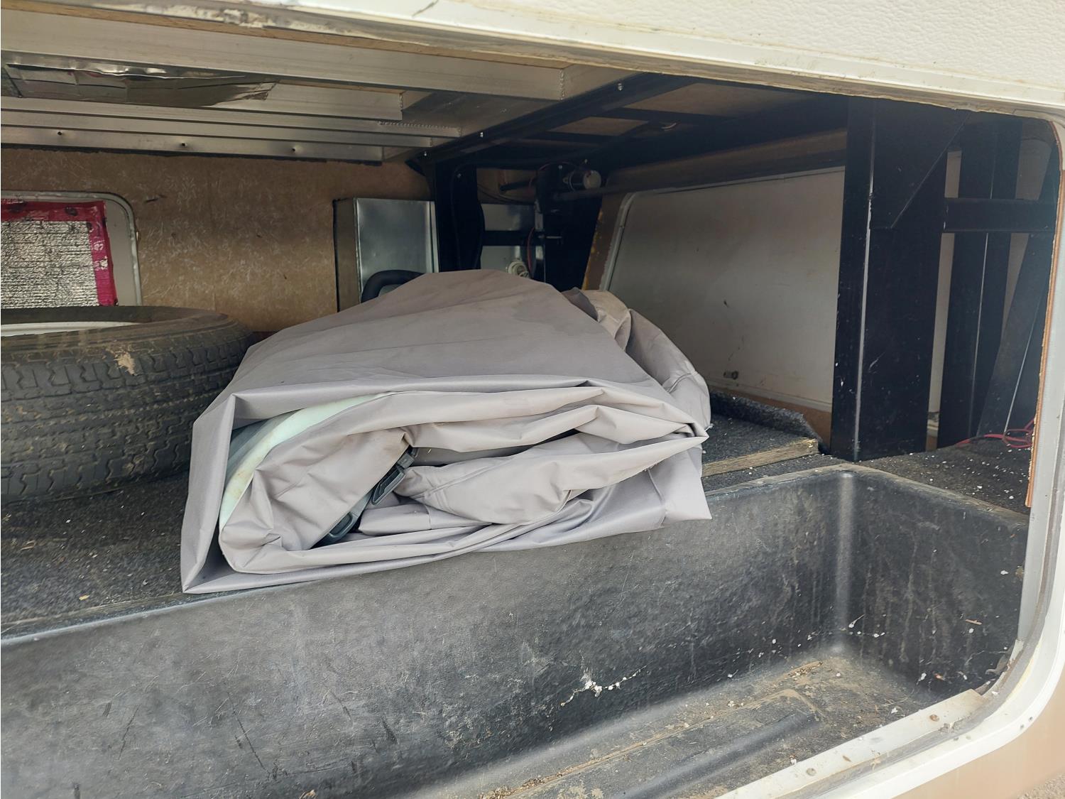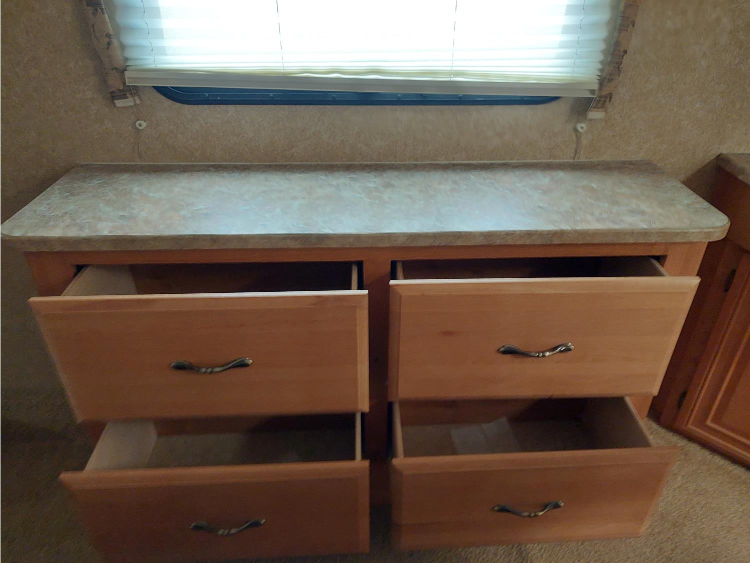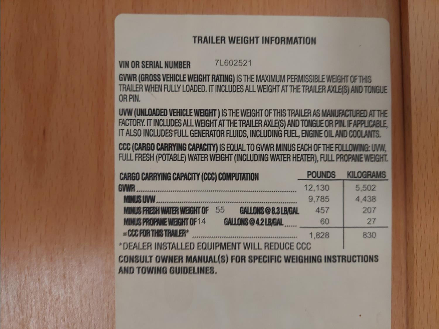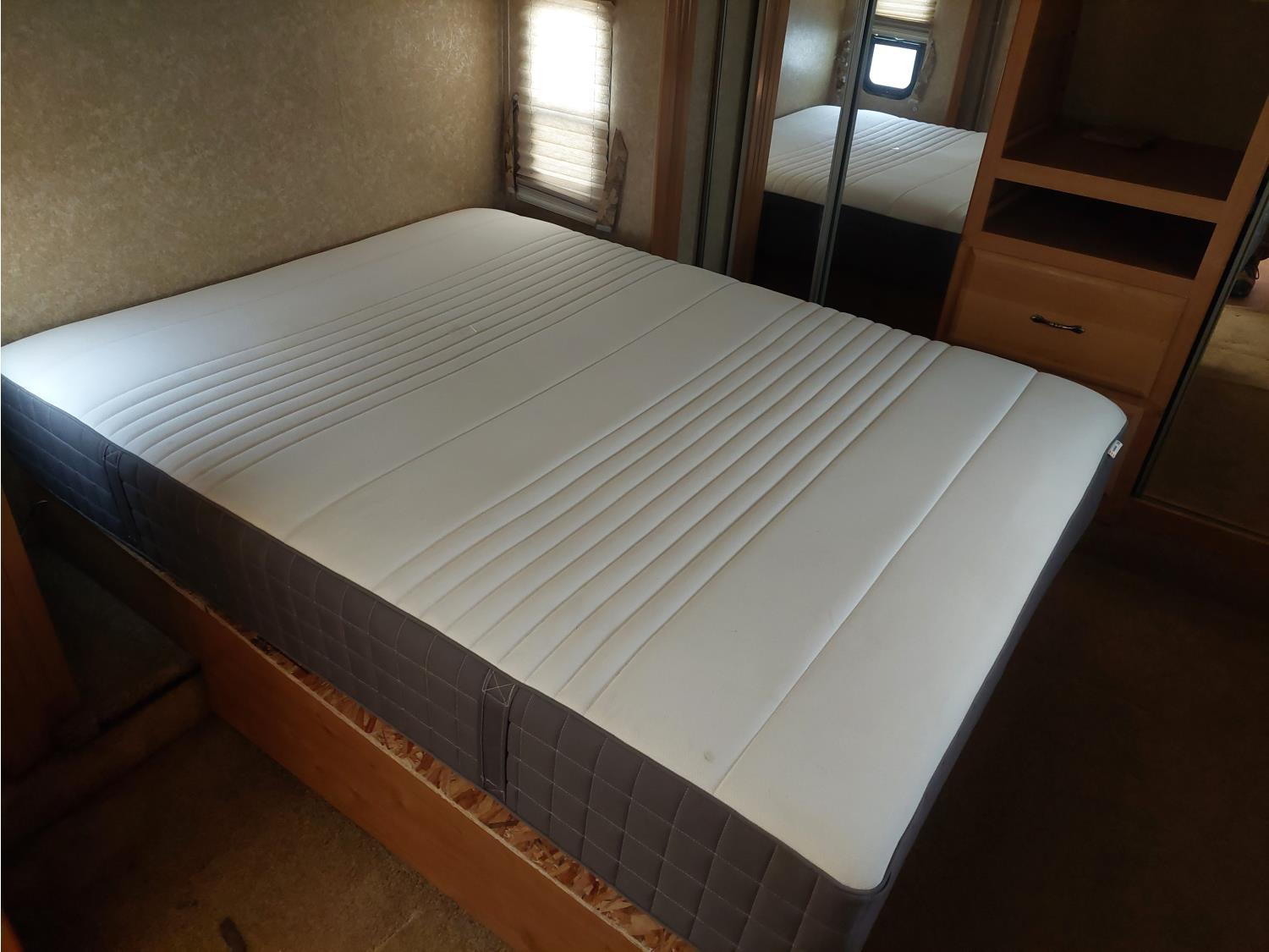 Sleeps 4, stove, fridge, microwave, master bedroom, A/C, outdoor shower, 3 slides, manual awning, roof mounted satellite receiver, spring suspension, electric brakes, 225/75R15 tires