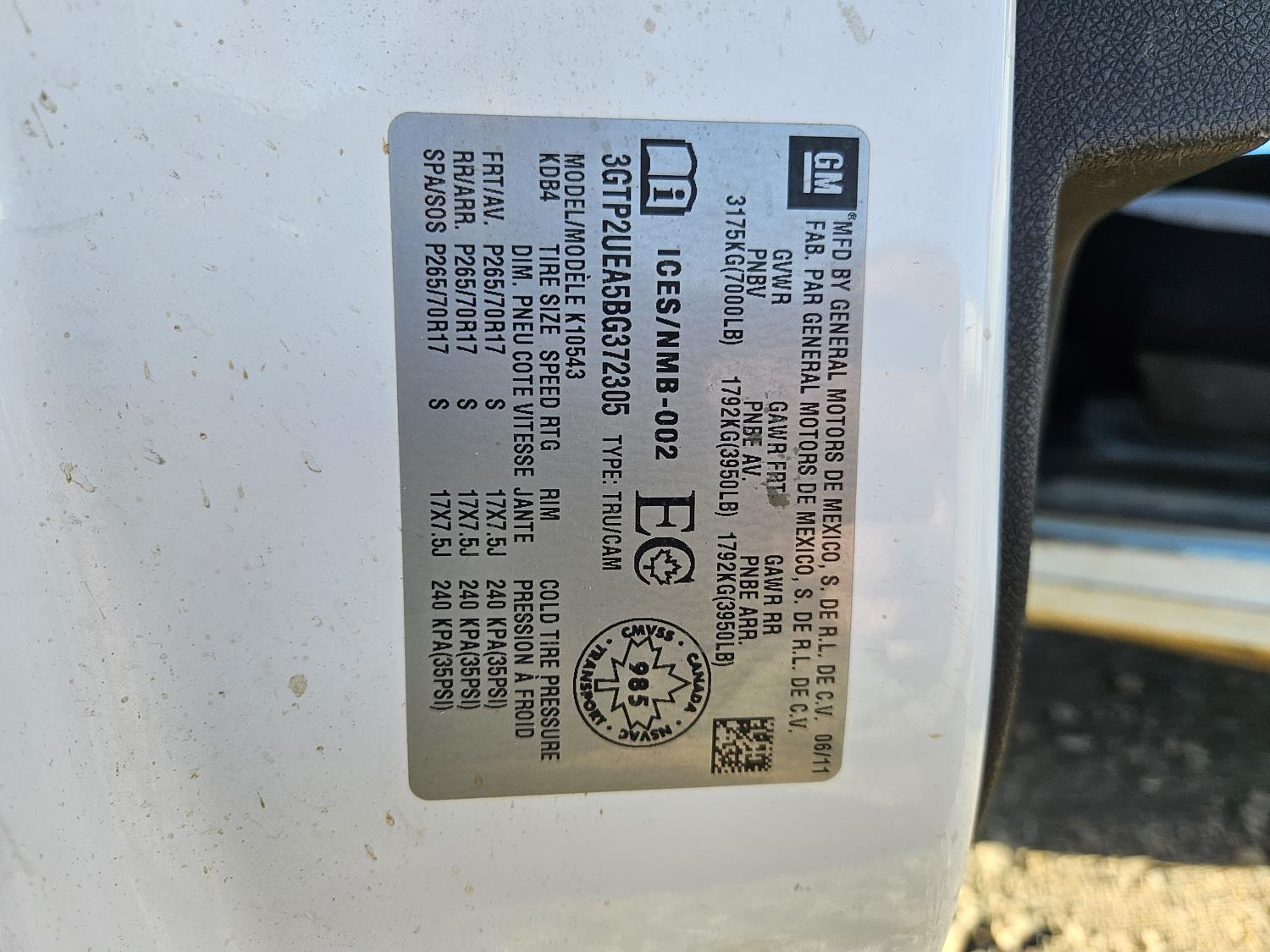 - 3GTP2UEA5BG372305