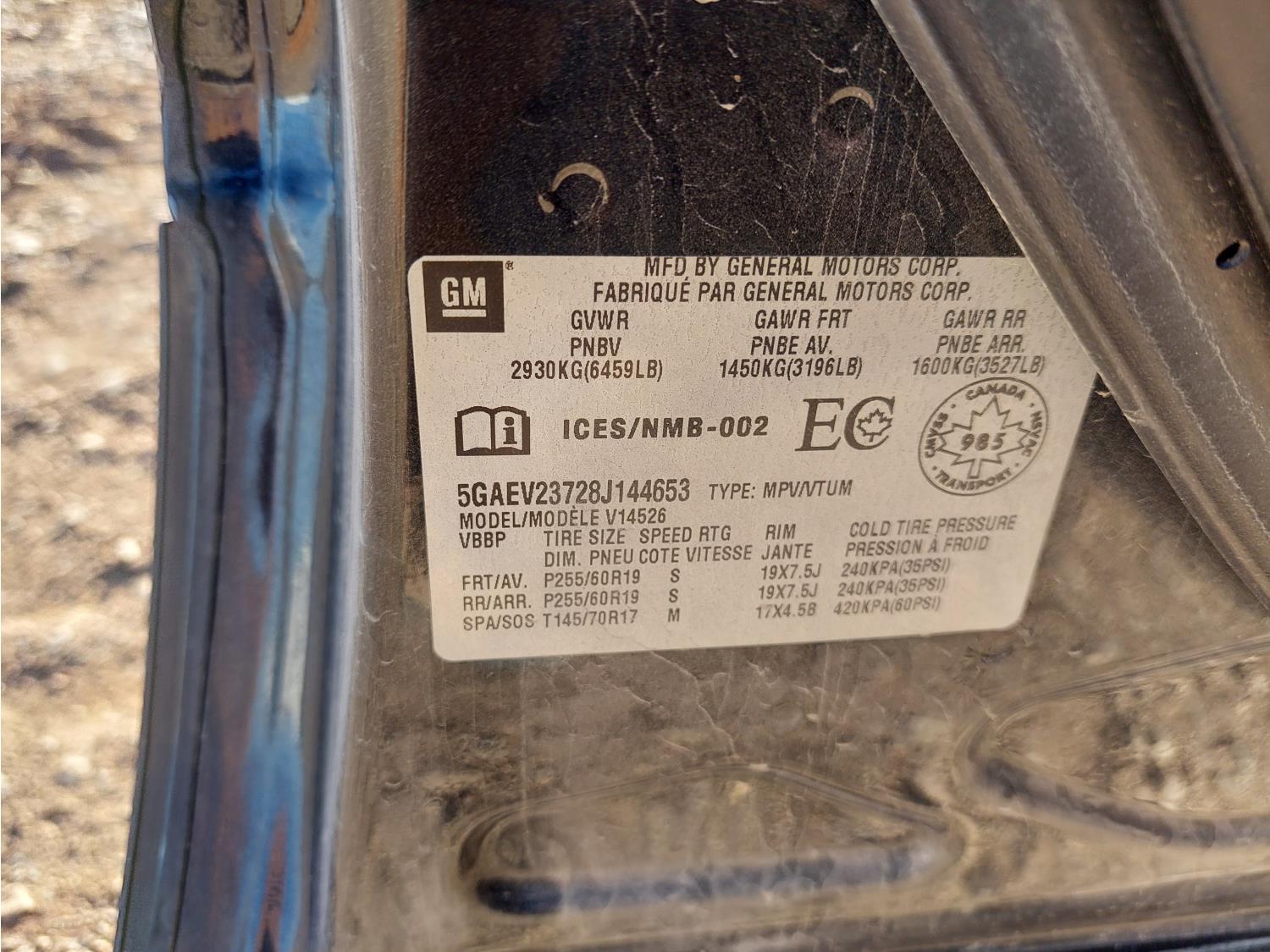 3.6 L, V6, automatic transmission, P/W, P/L, A/C, heated mirrors, 3rd row seating, DVD player, 255/60R19 tires