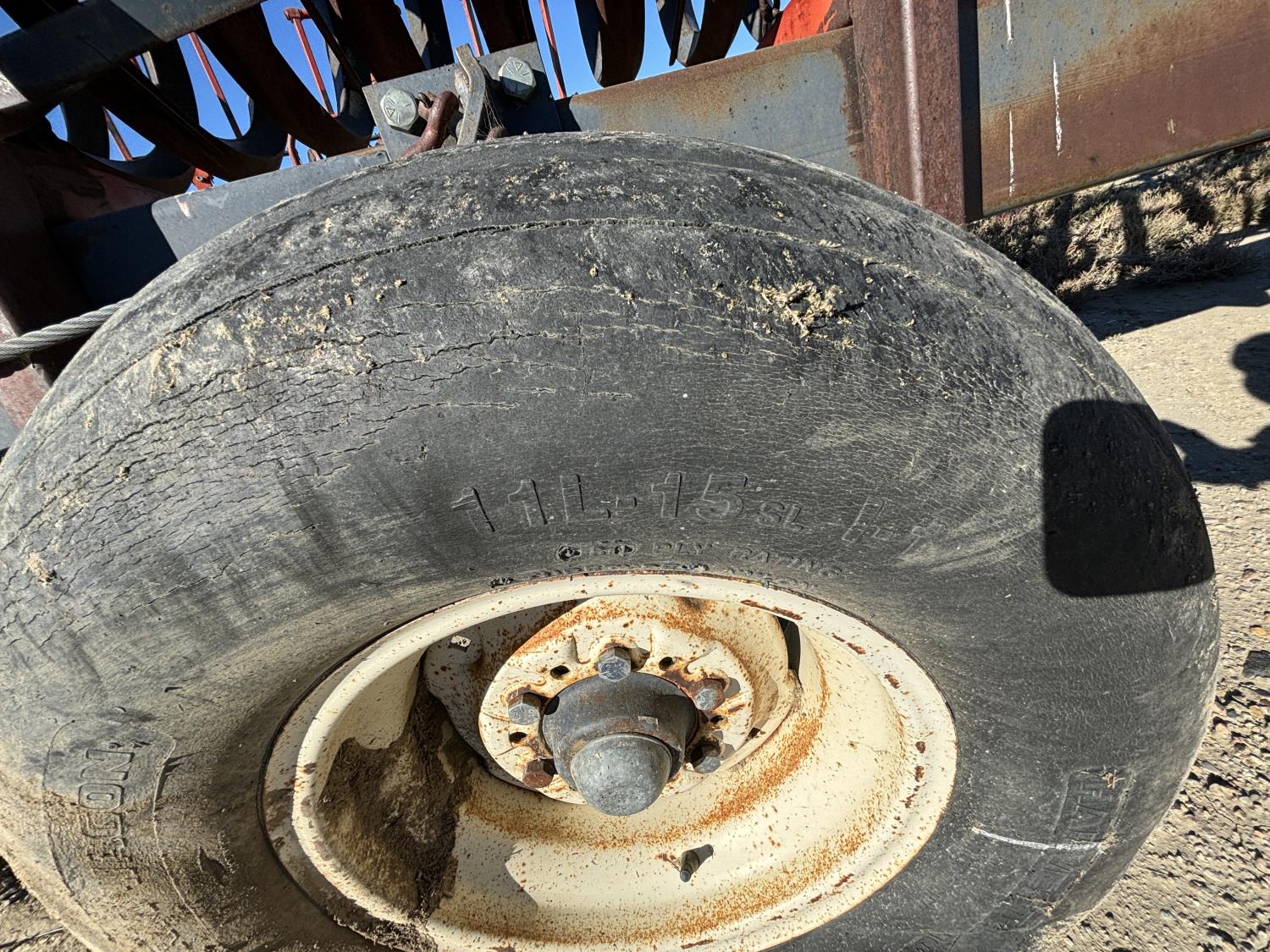 11 inch tine length, 5 bar, P30 packers, 11L-15 main frame tires, 9.5L-15 wing tires