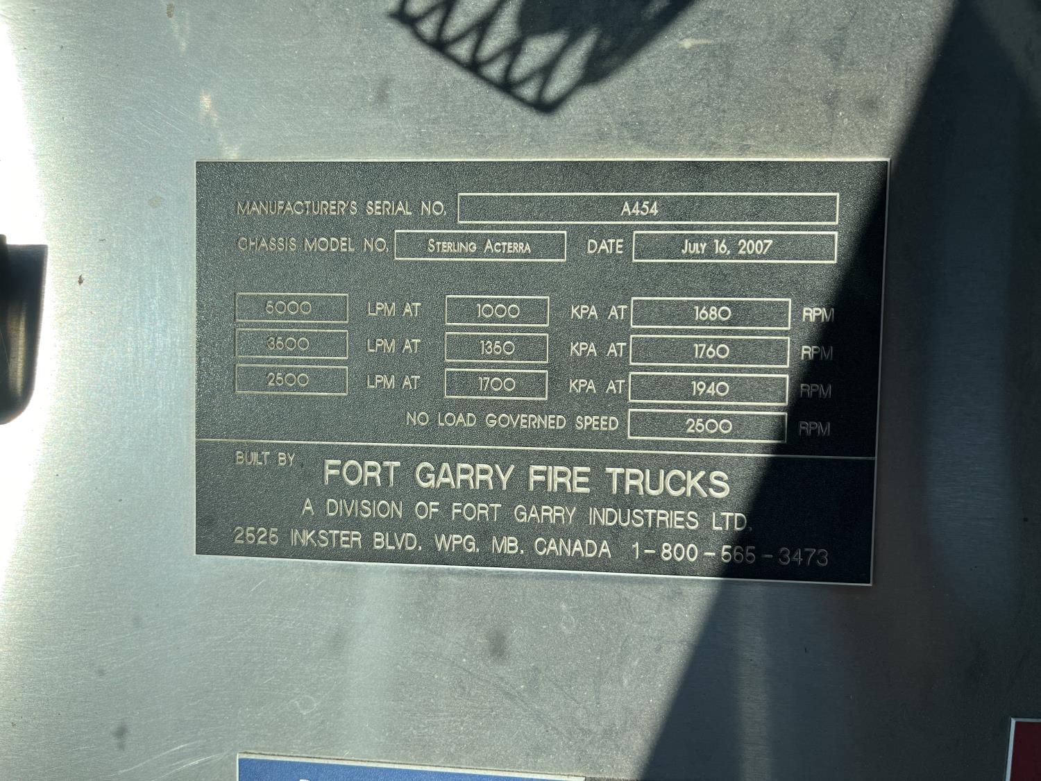 199 2006 Sterling Acterra S/A Fire Truck (Inoperable)